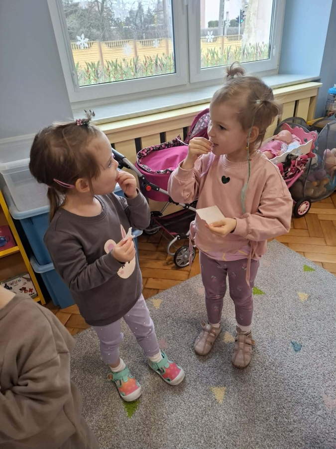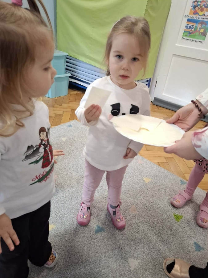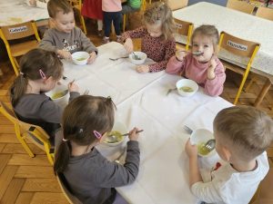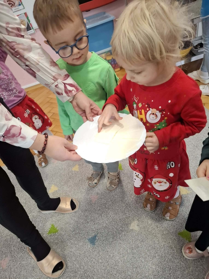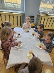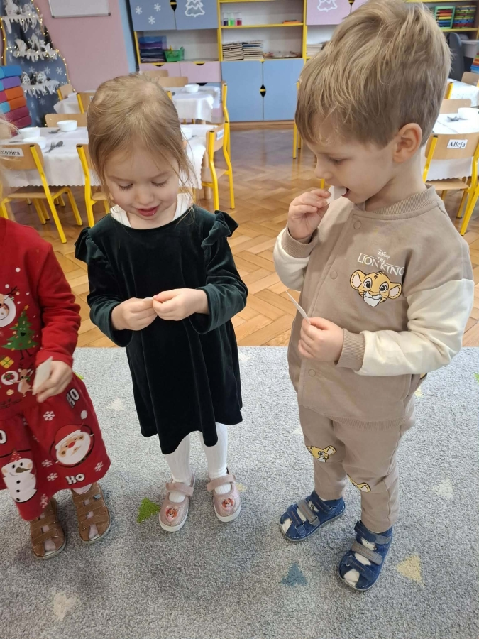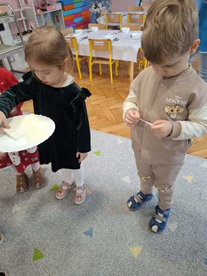 We wtorkowe przedpołudnie dzieci po raz pierwszy wspólnie łamały się opłatkiem zasiadając do obiadu przy stoliczkach nakrytych białym obrusem. Już od najmłodszych uczymy się życzliwości, tradycji i bycia razem.