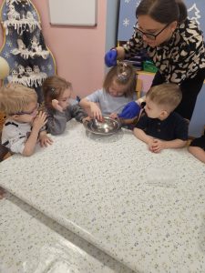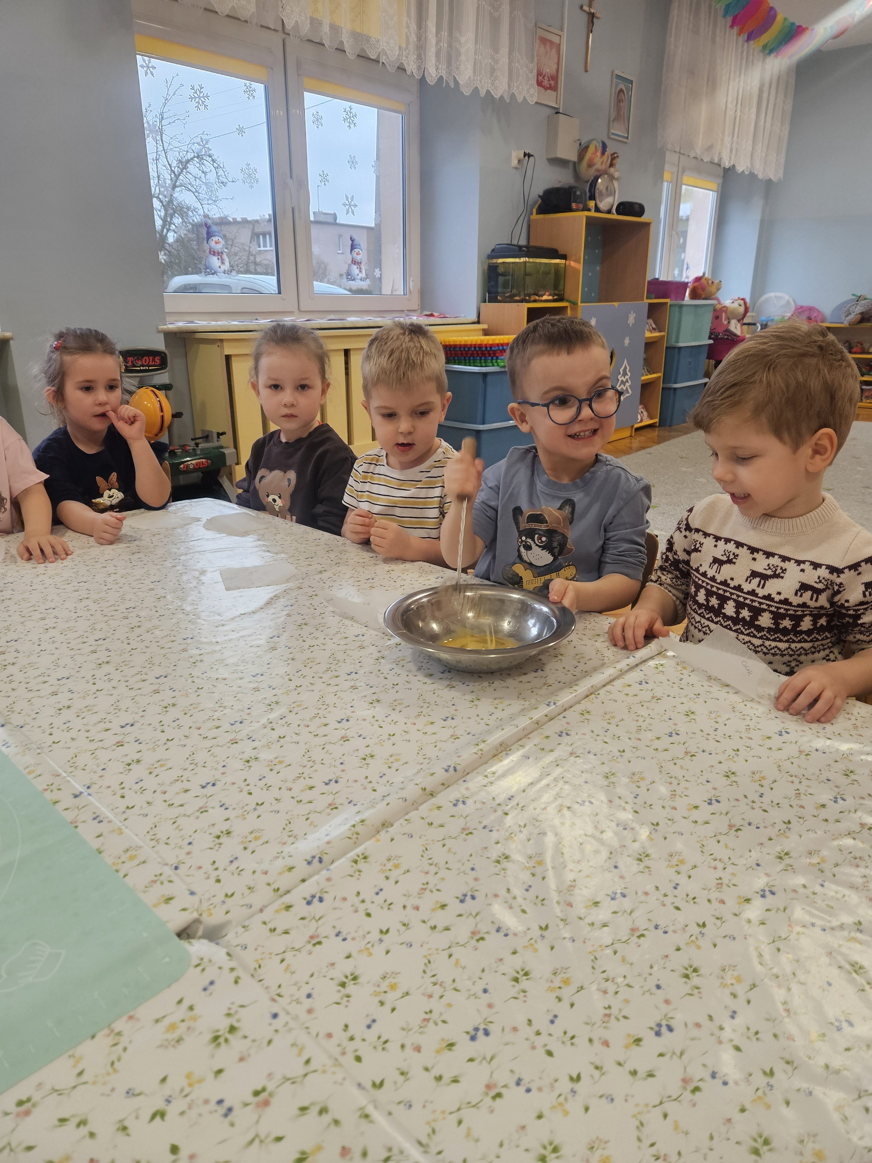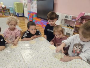 Dzieci z ogromnym zaangażowaniem przygotowywały pyszne oponki . Nie zabrakło radości, współpracy i oczywiście uśmiechów ubrudzonych cukrem pudrem! 🍩😊