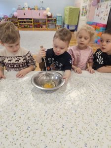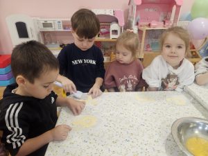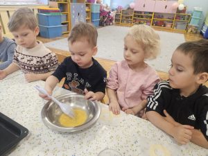 Dzieci z ogromnym zaangażowaniem przygotowywały pyszne oponki . Nie zabrakło radości, współpracy i oczywiście uśmiechów ubrudzonych cukrem pudrem! 🍩😊