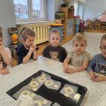 Dzieci z ogromnym zaangażowaniem przygotowywały pyszne oponki . Nie zabrakło radości, współpracy i oczywiście uśmiechów ubrudzonych cukrem pudrem! 🍩😊