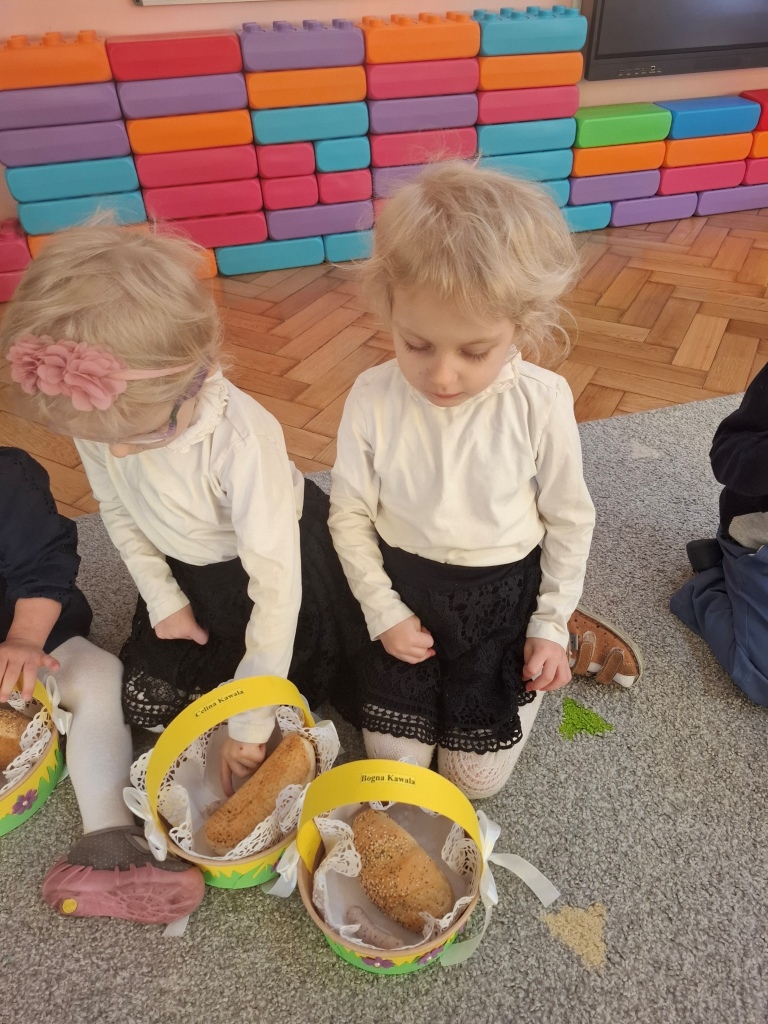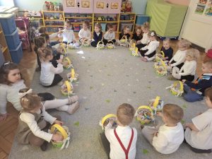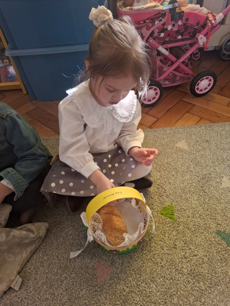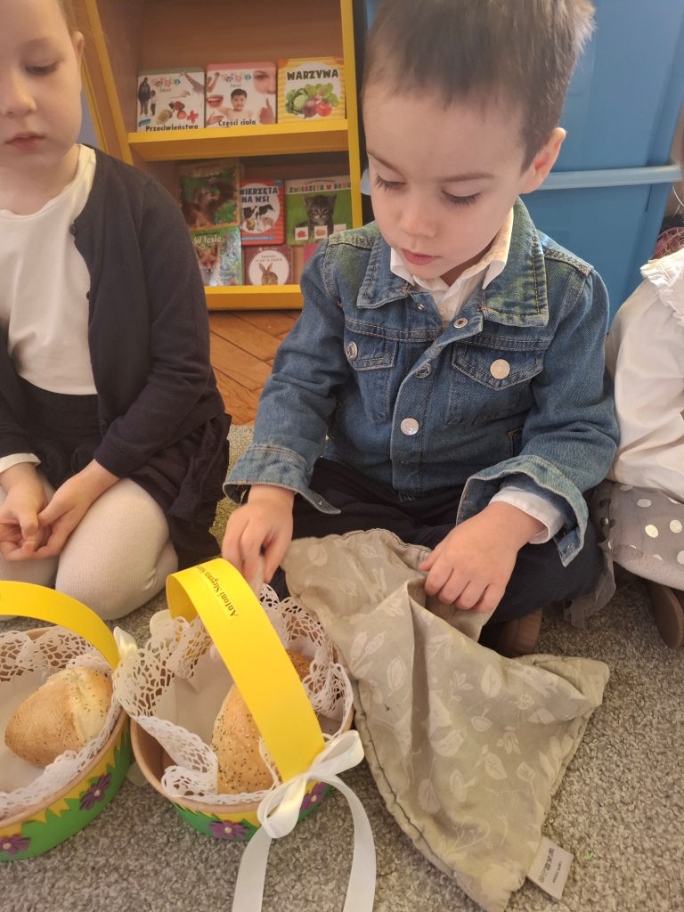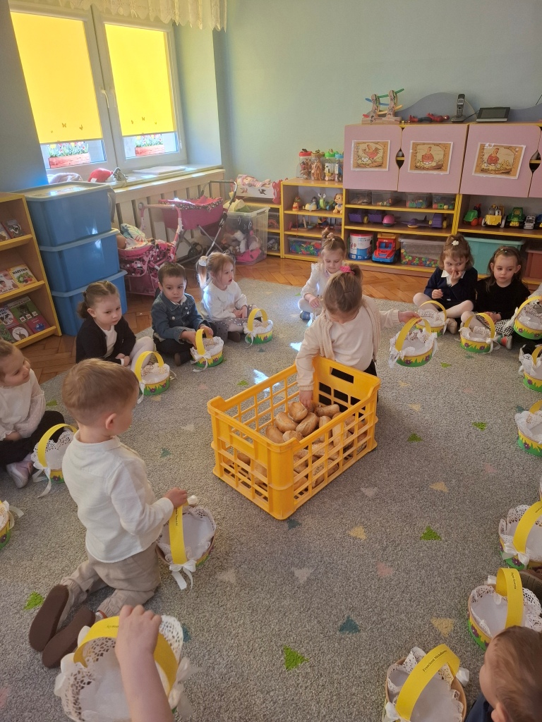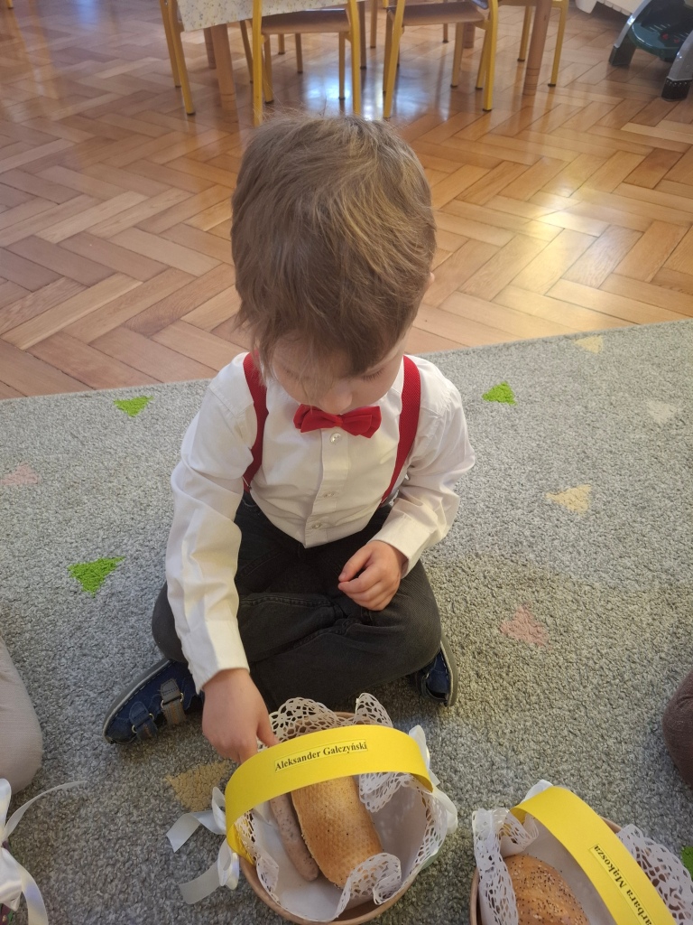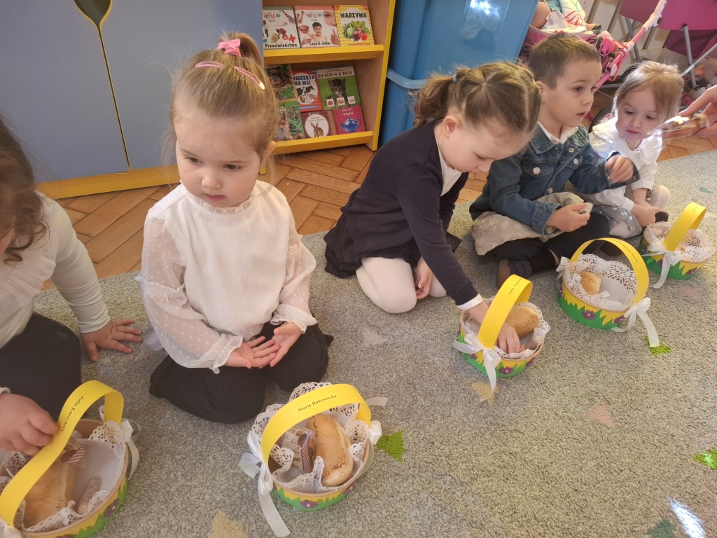 W ostatnich dniach w grupie Aniołków zagościła wiosna tworząc wielkanocną atmosferę. Dzieci z wielkim zaangażowaniem przygotowywały się do nadchodzących Świąt Wielkanocnych, poznając polskie tradycje i zwyczaje. Z niecierpliwością oczekiwały na Święconkę. Do własnoręcznie przygotowanych koszyczków dzieci włożyły: baranka – znak zwycięstwa życia nad śmiercią, chleb – symbol dostatku, babkę wielkanocną – oznakę radości, kiełbaskę – nawiązująca do zdrowia i siły, a także kolorowe jajeczka, które są symbolem nowego życia. Dzieci z ogromną starannością i dumą komponowały swoje koszyczki, poznając przy tym znaczenia poszczególnych elementów.