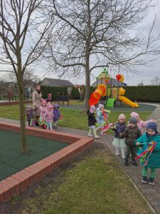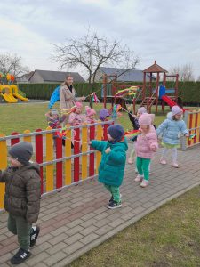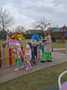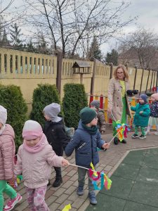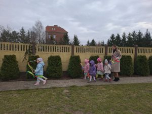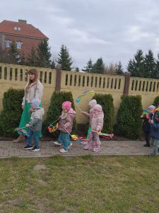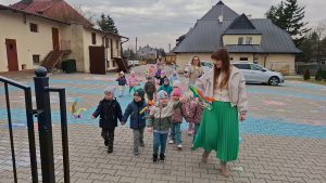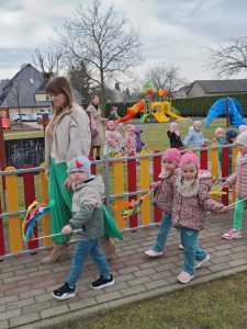 Piątek był dniem pełnym zieleni w najróżniejszych odcieniach. Tego wyjątkowego dnia wszystkie przedszkolaki wyruszły w teren na tradycyjny, coroczny pochód z okazji Pierwszgo Dnia Wiosny. Aniołki z uśmiechami na twarzach wybrały się na spacer po ogrodzie przedszkolnym. Podczas spaceru śpiewały wesołe piosenki o wiośnie i machały kolorowymi chorągiewkami, wprowadzając prawdziwie wiosenną atmosferę. Zapraszamy do obejrzenia załączonego filmiku.