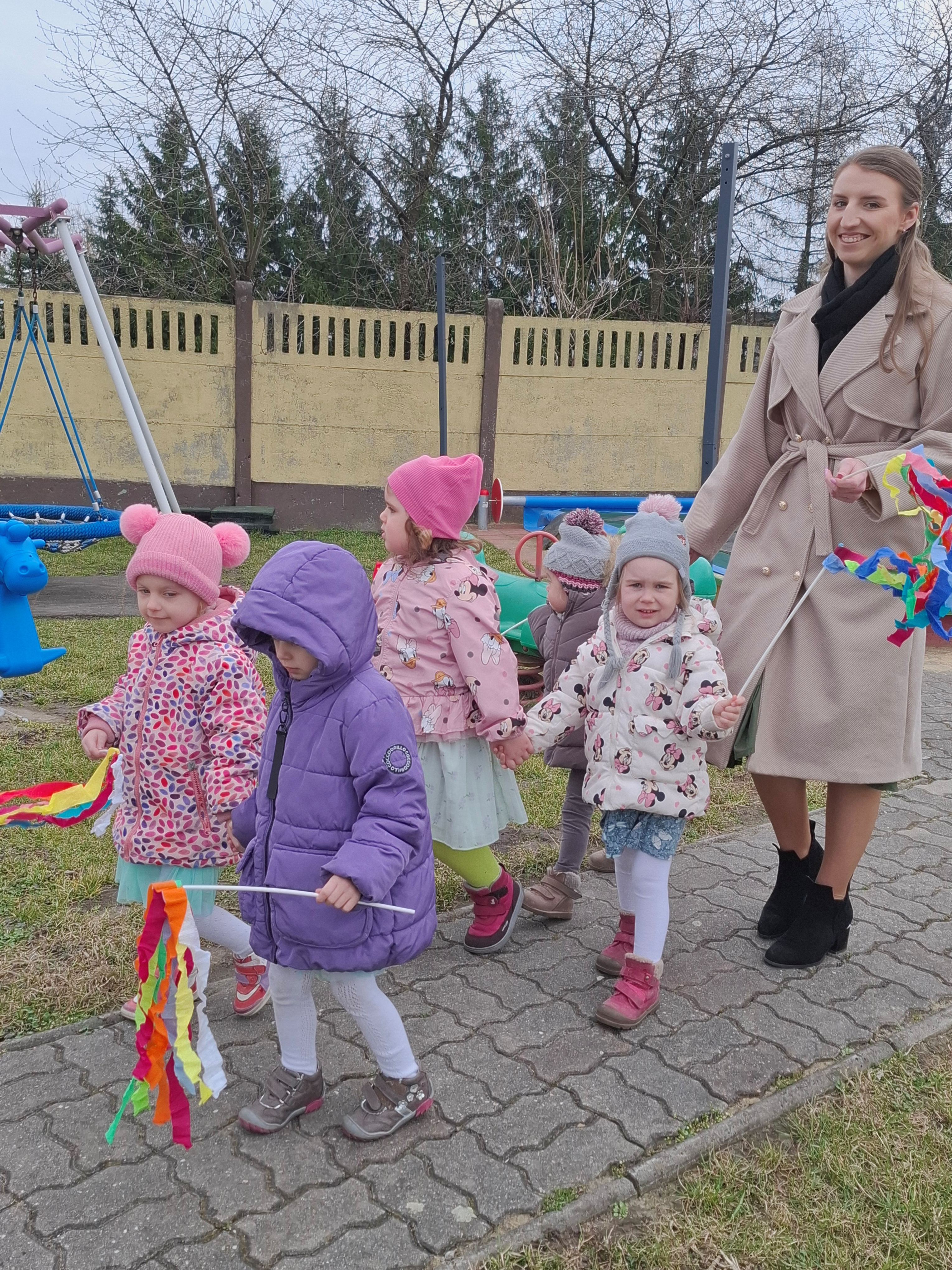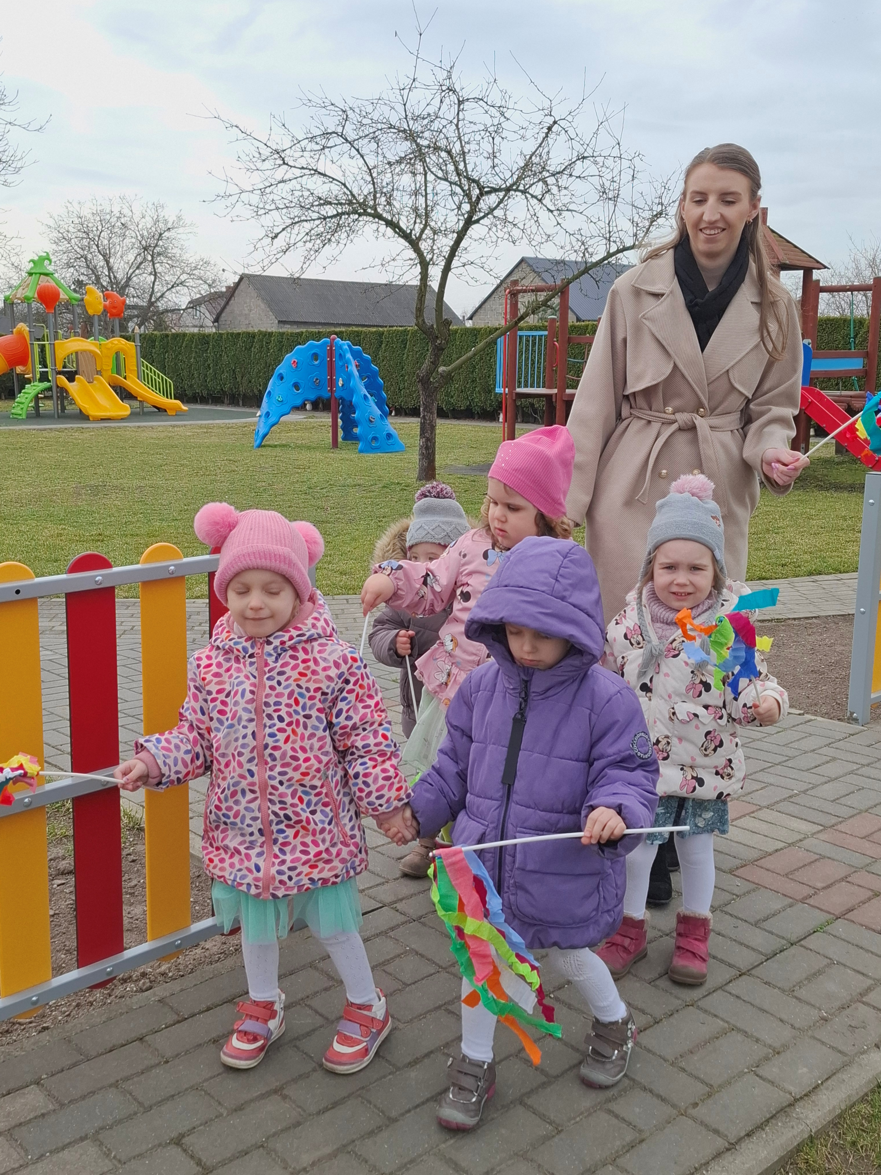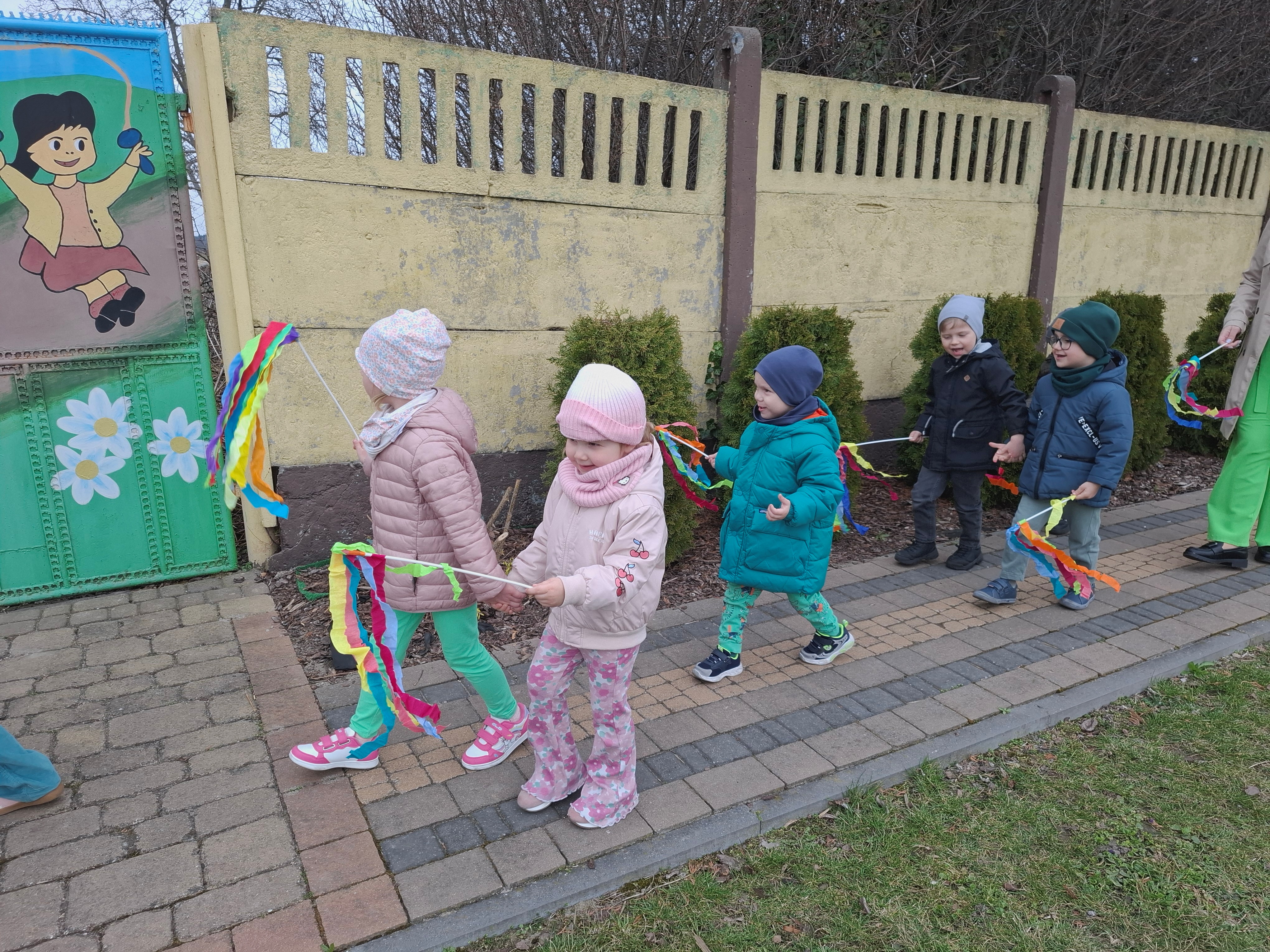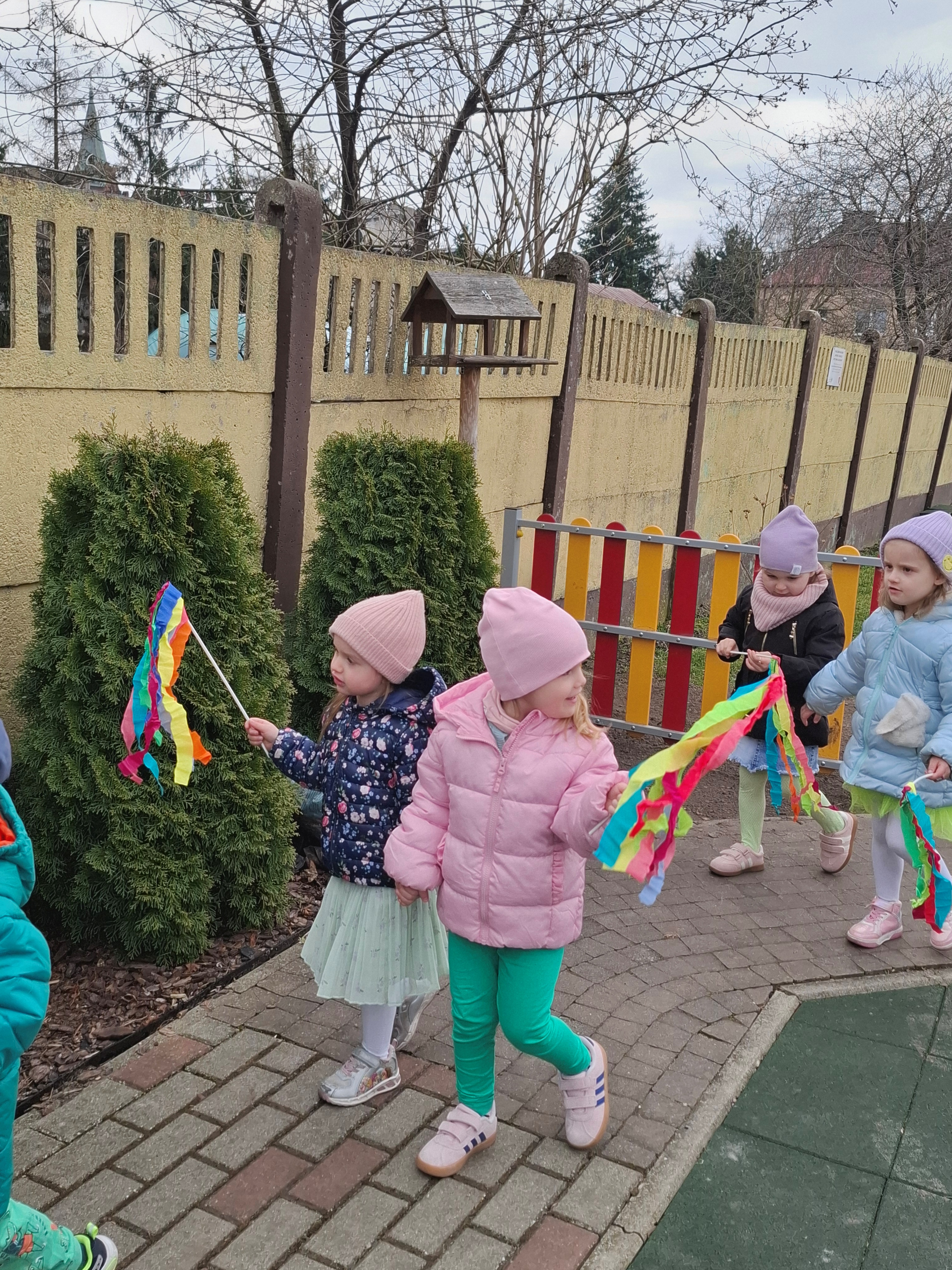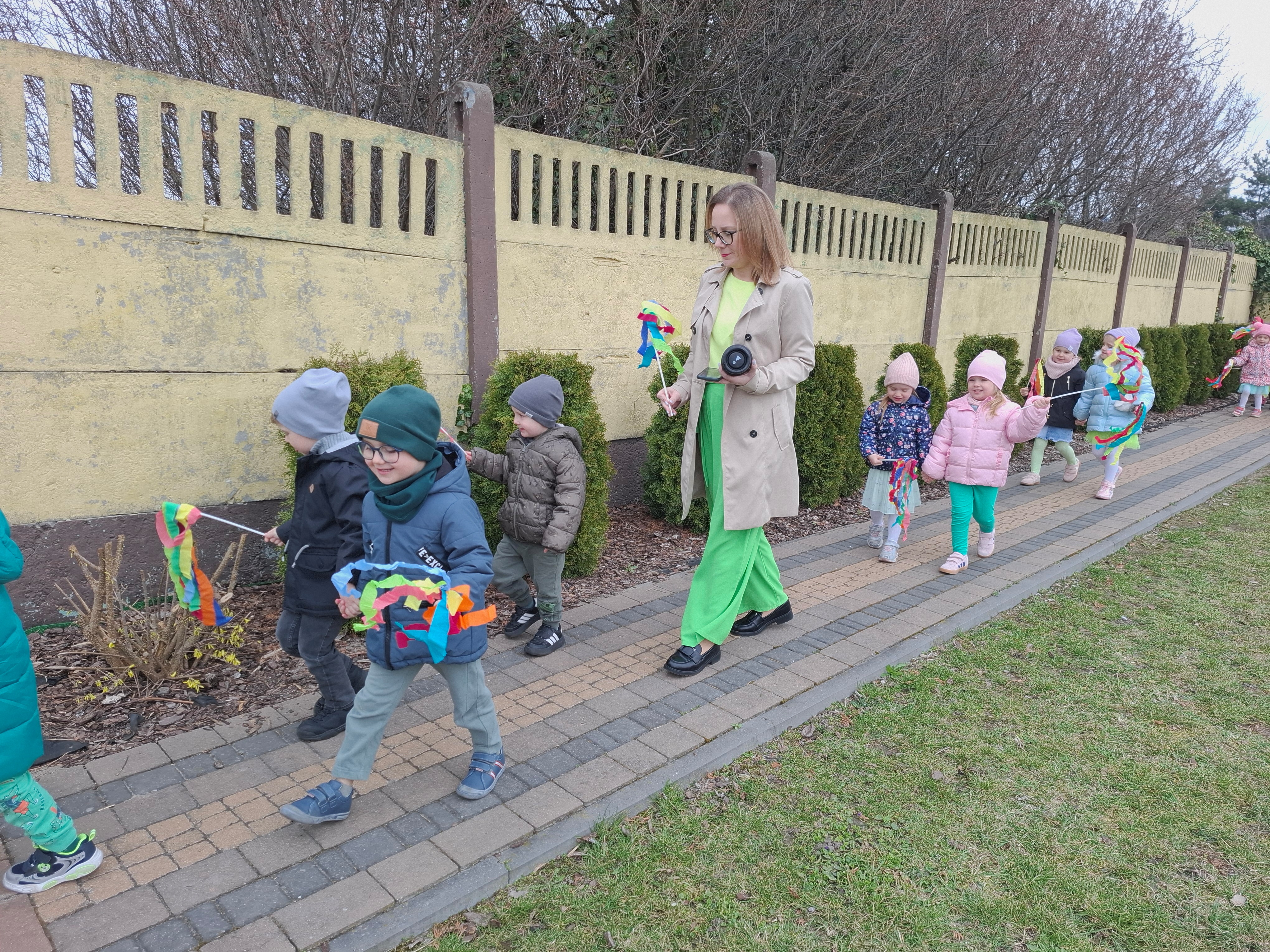 Piątek był dniem pełnym zieleni w najróżniejszych odcieniach. Tego wyjątkowego dnia wszystkie przedszkolaki wyruszły w teren na tradycyjny, coroczny pochód z okazji Pierwszgo Dnia Wiosny. Aniołki z uśmiechami na twarzach wybrały się na spacer po ogrodzie przedszkolnym. Podczas spaceru śpiewały wesołe piosenki o wiośnie i machały kolorowymi chorągiewkami, wprowadzając prawdziwie wiosenną atmosferę. Zapraszamy do obejrzenia załączonego filmiku.
