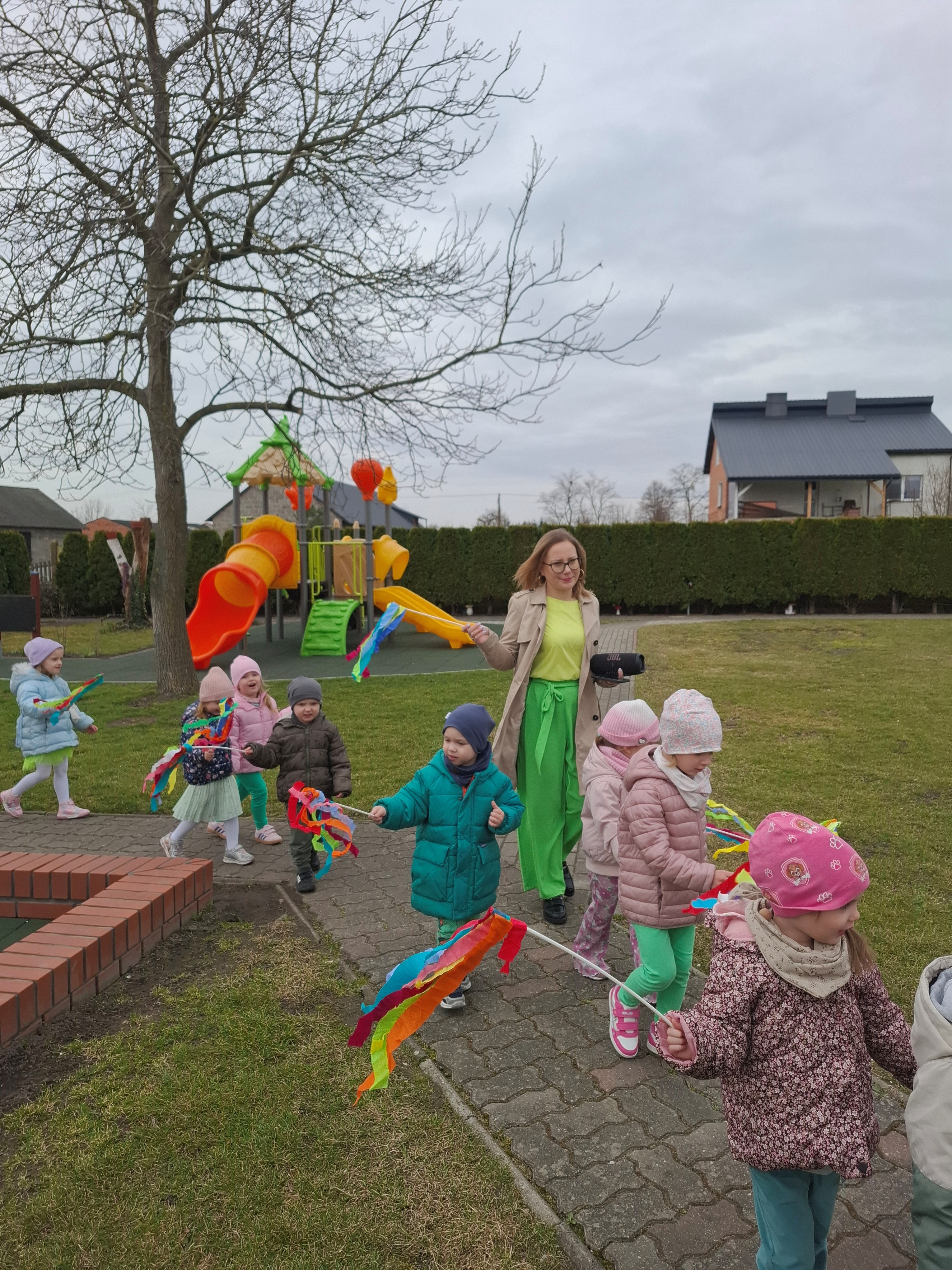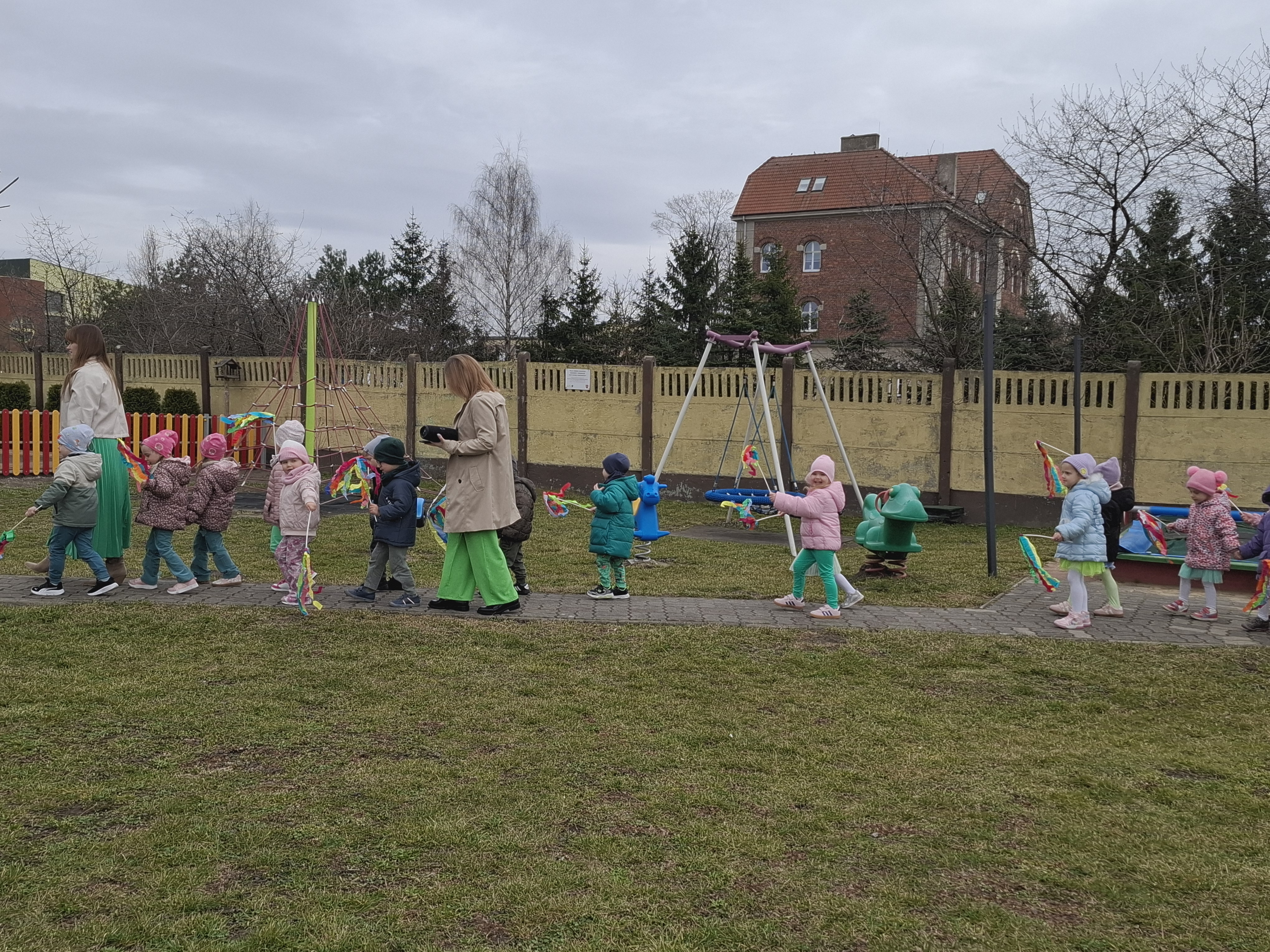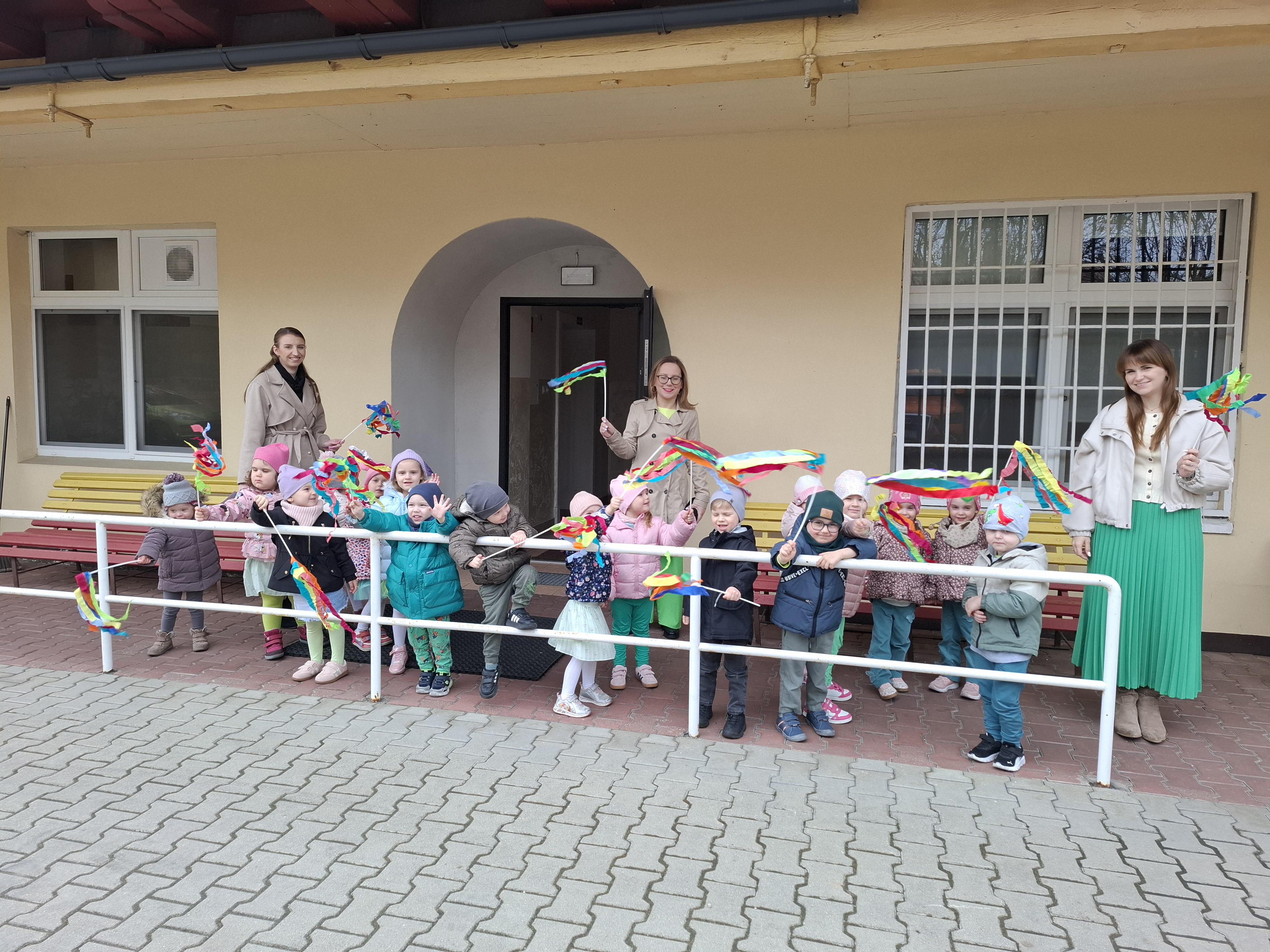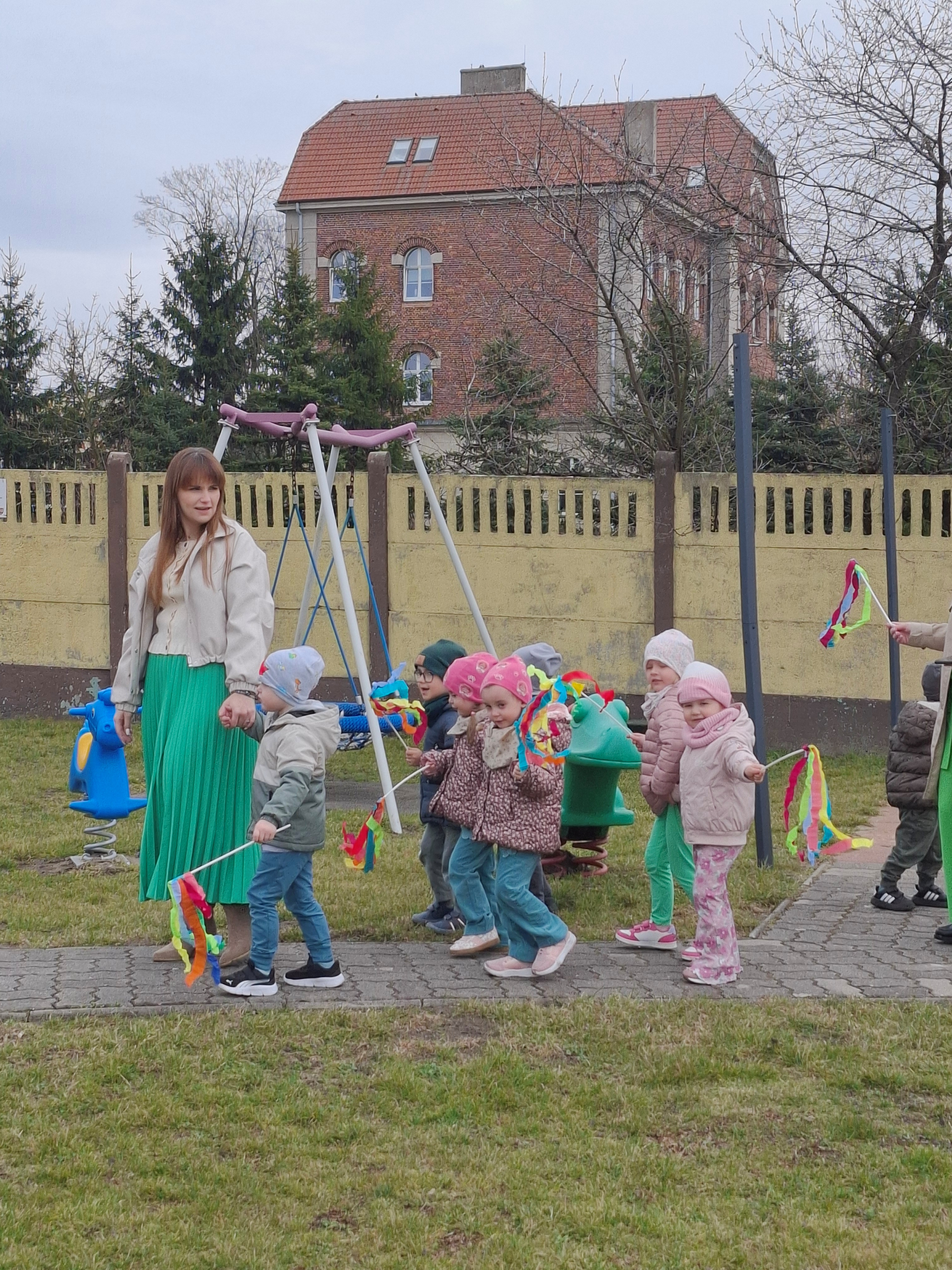 Piątek był dniem pełnym zieleni w najróżniejszych odcieniach. Tego wyjątkowego dnia wszystkie przedszkolaki wyruszły w teren na tradycyjny, coroczny pochód z okazji Pierwszgo Dnia Wiosny. Aniołki z uśmiechami na twarzach wybrały się na spacer po ogrodzie przedszkolnym. Podczas spaceru śpiewały wesołe piosenki o wiośnie i machały kolorowymi chorągiewkami, wprowadzając prawdziwie wiosenną atmosferę. Zapraszamy do obejrzenia załączonego filmiku.