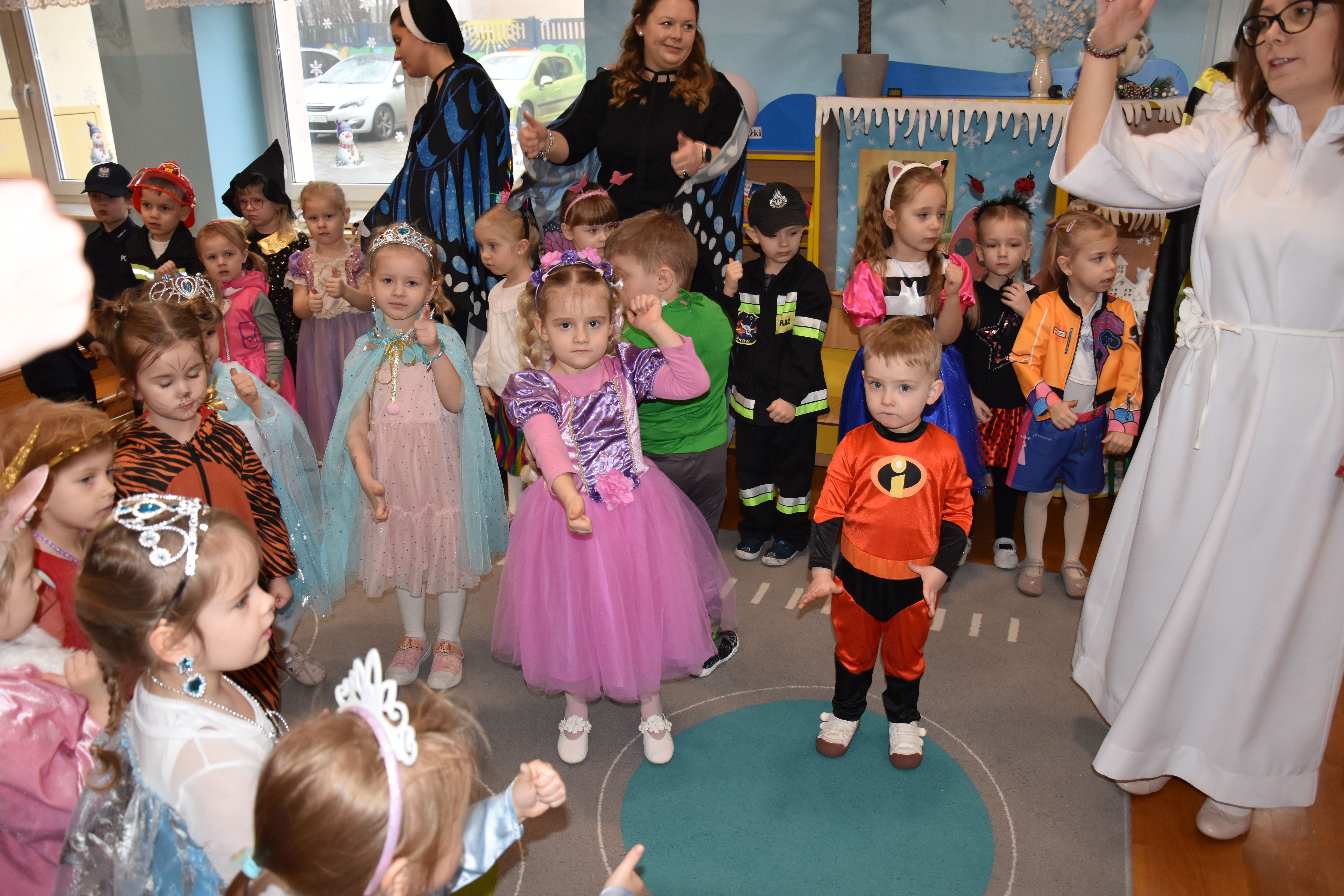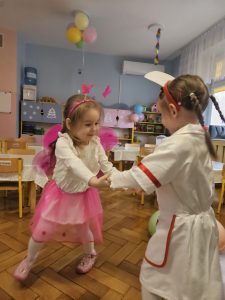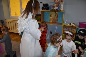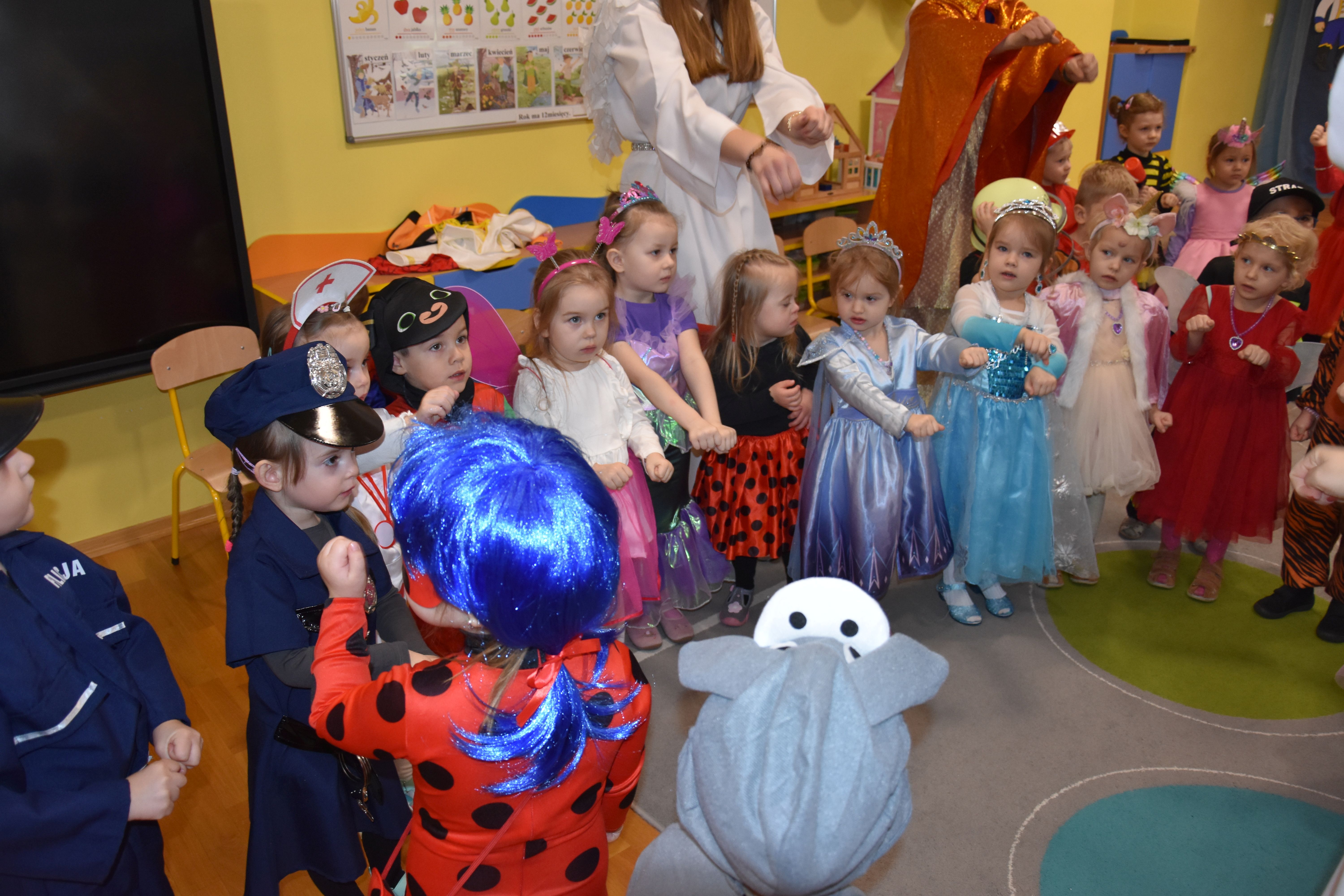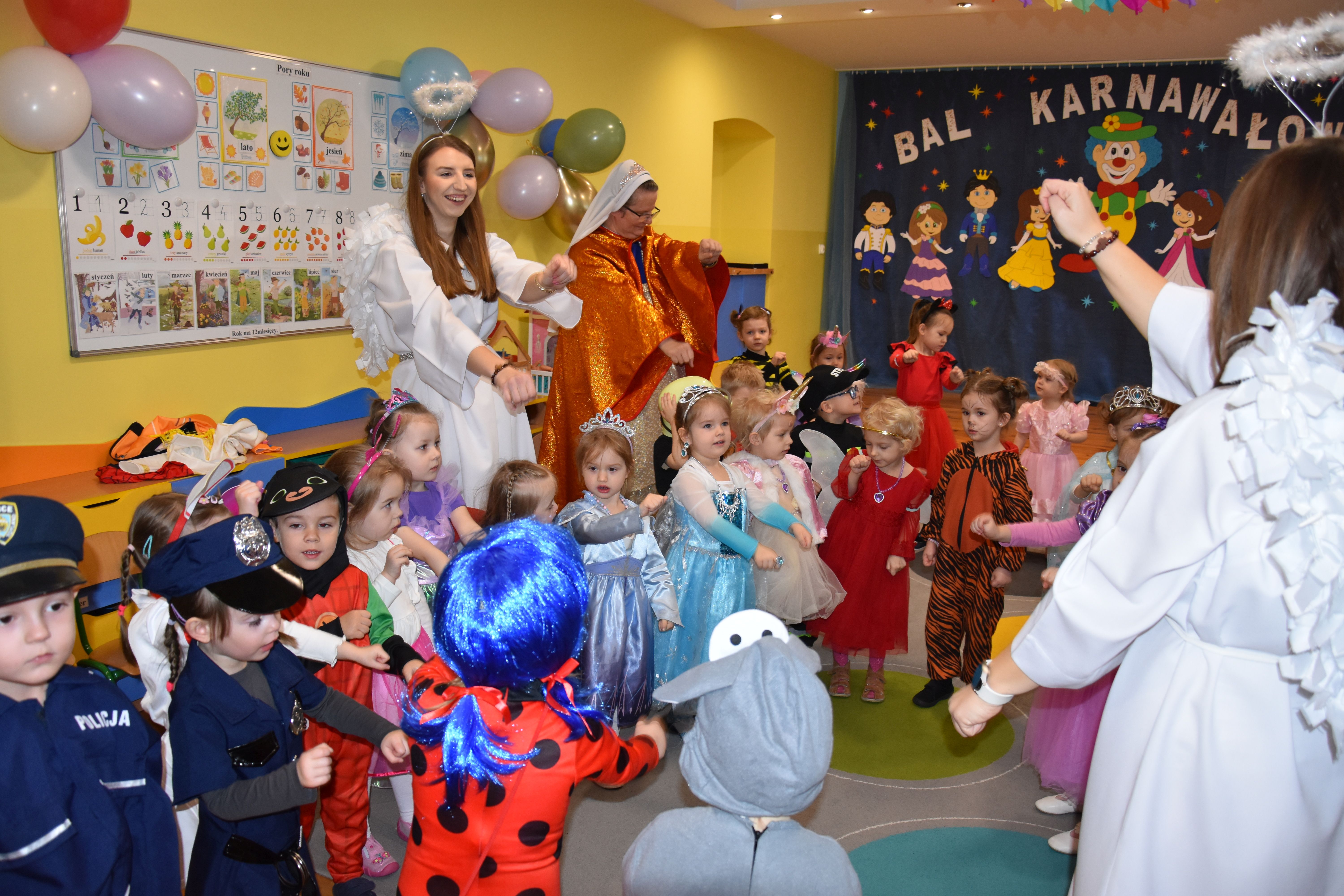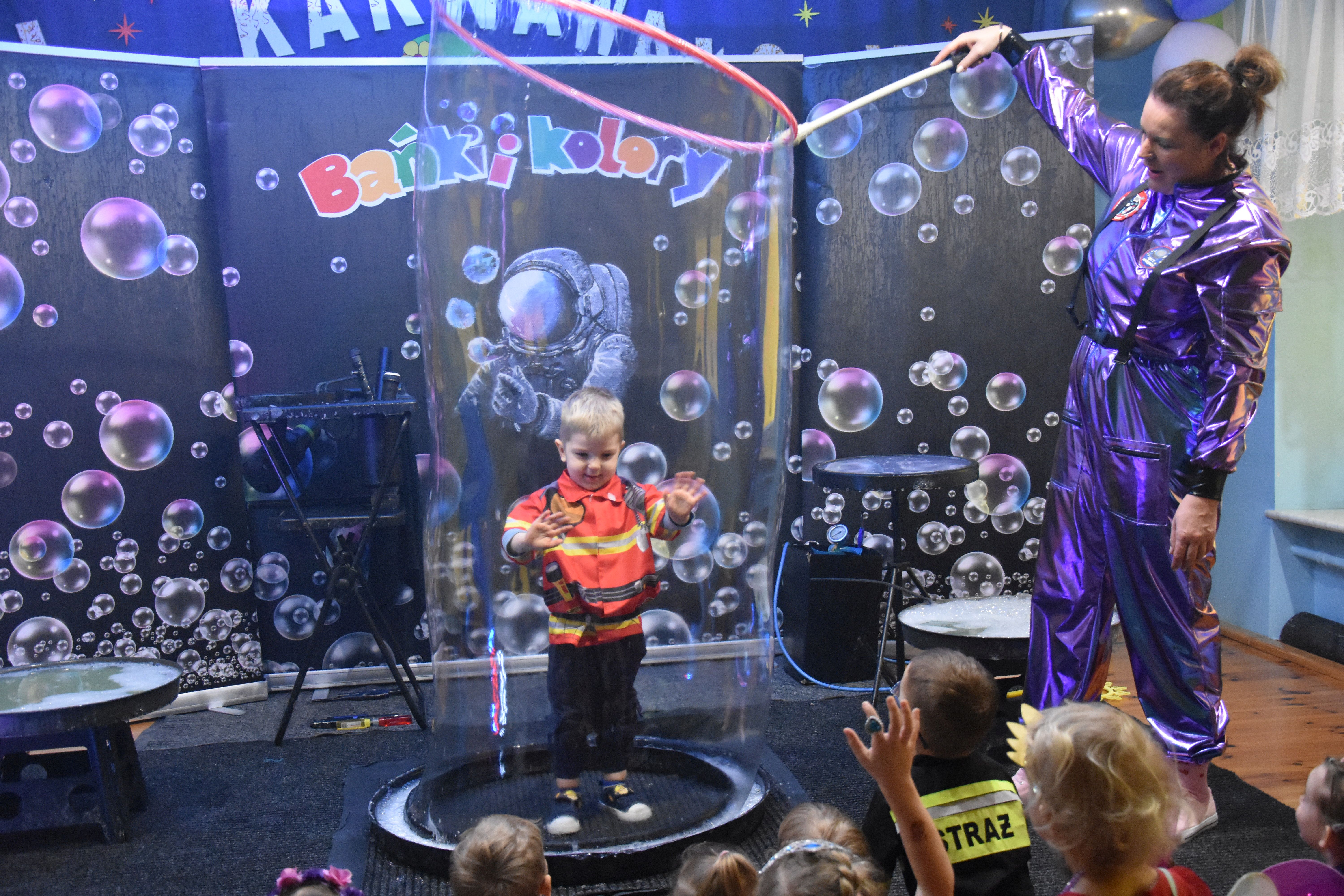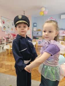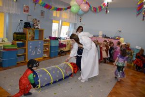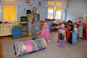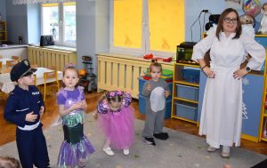 W miniony czwartek w naszym przedszkolu odbył się bal karnawałowy. Już od samego rana do przedszkola przychodziły uśmiechnięte dzieci ubrane w przepiękne, karnawałowe stroje. Wśród nich można było spotkać odważnych superbohaterów, bajkowe księżniczki, urocze syrenki, dzielnych policjantów oraz strażaków gotowych do akcji. W sali rozbrzmiewała muzyka, a dzieci z wielkim entuzjazmem tańczyły do wesołych melodii. Nie zabrakło także licznych konkursów i zabaw ruchowych, które dostarczyły wszystkim mnóstwo śmiechu i pozytywnej energii. Kulminacyjnym punktem dnia był wyjątkowy pokaz baniek mydlanych, który zachwycił każdego małego widza. Dzieci z zapartym tchem obserwowały unoszące się w powietrzu bańki o przeróżnych kształtach i kolorach. Po niezwykłym pokazie na dzieci czekała miła niespodzianka – pyszne przekąski oraz napoje, które pozwoliły nabrać sił po intensywnej zabawie. To był dzień pełen wspólnej zabawy i niezapomnianych przeżyć.