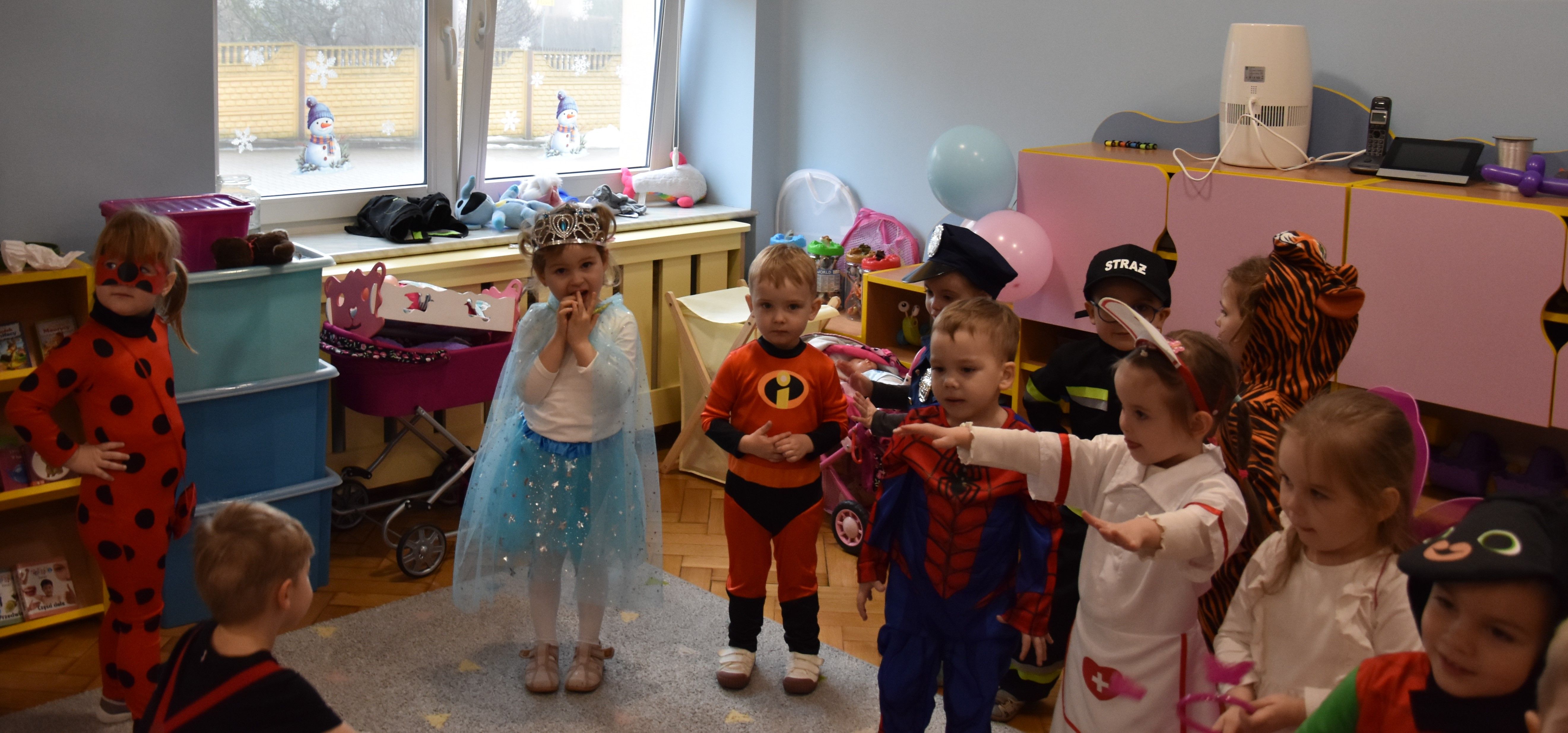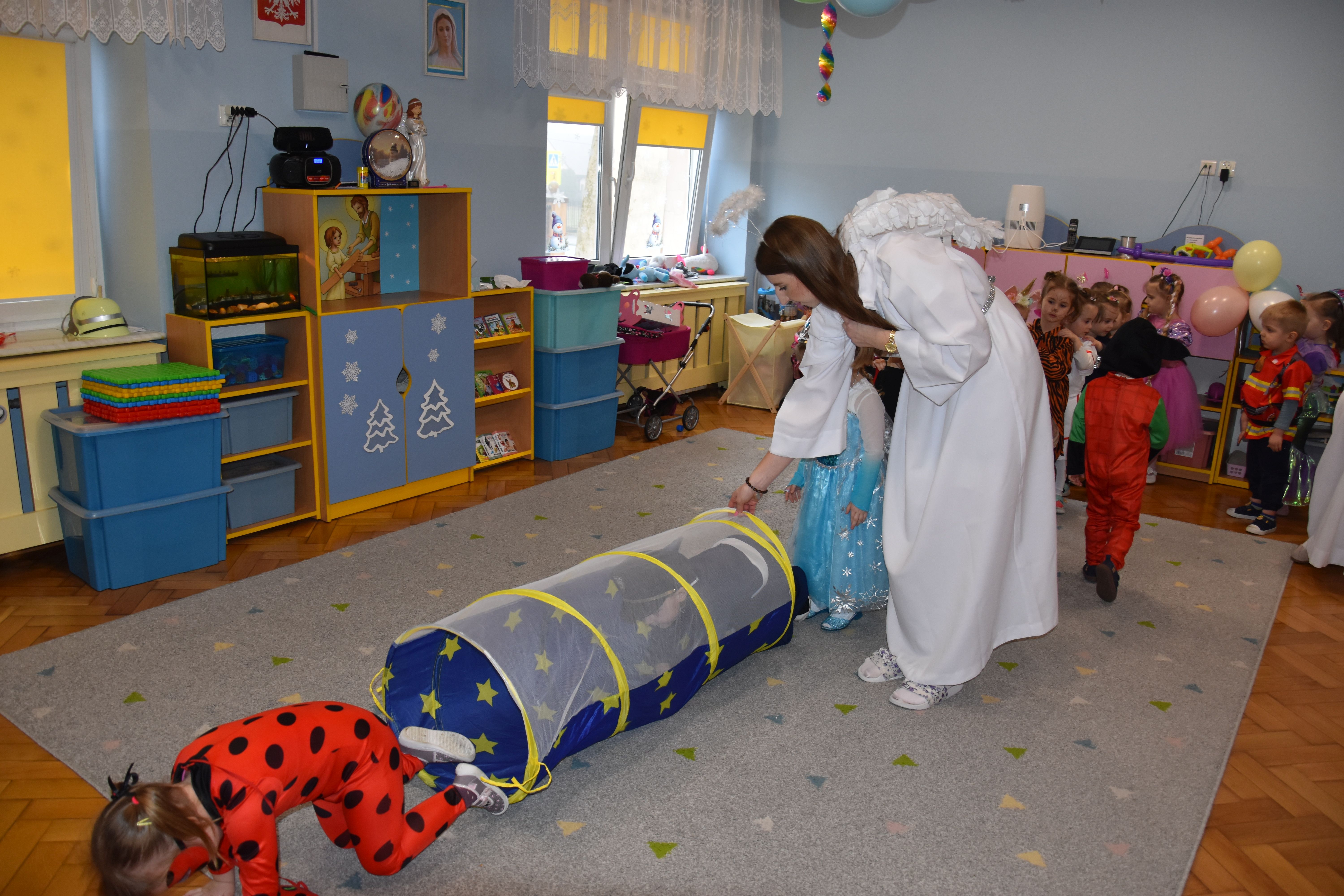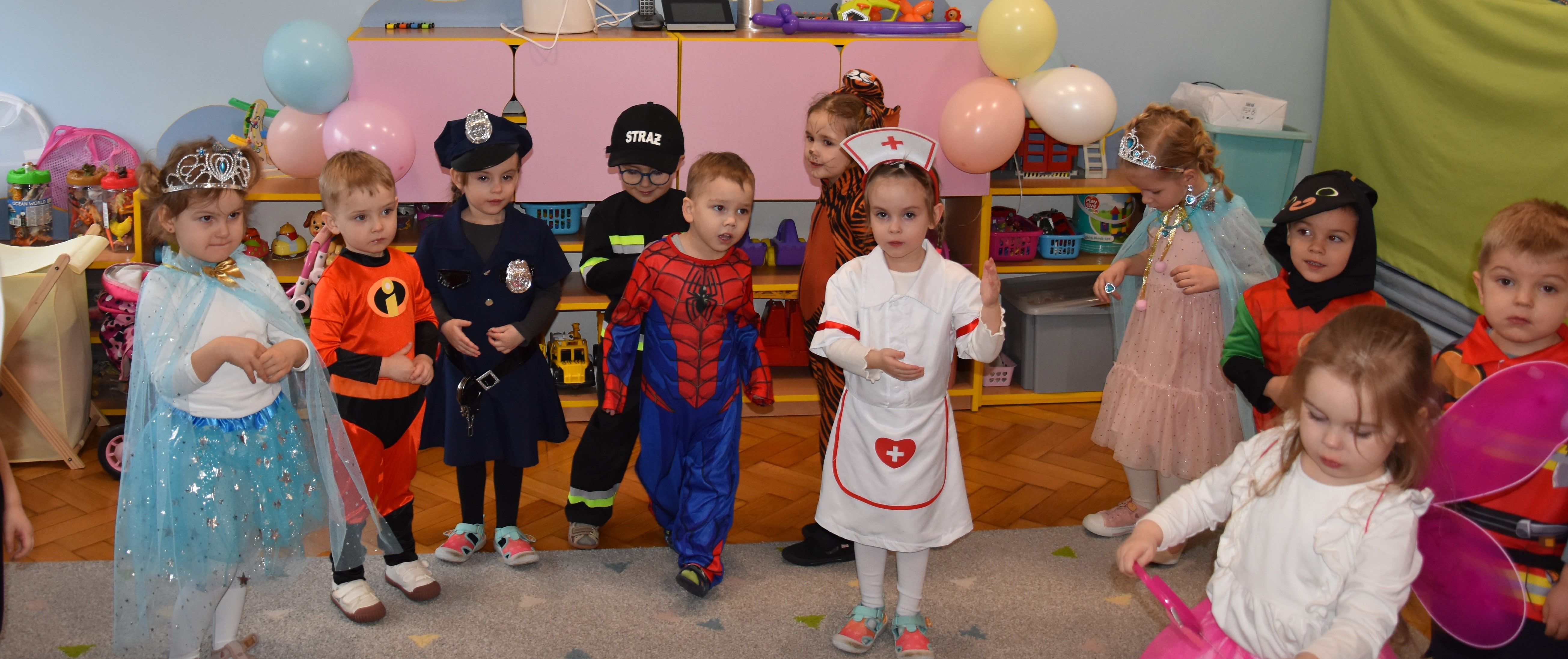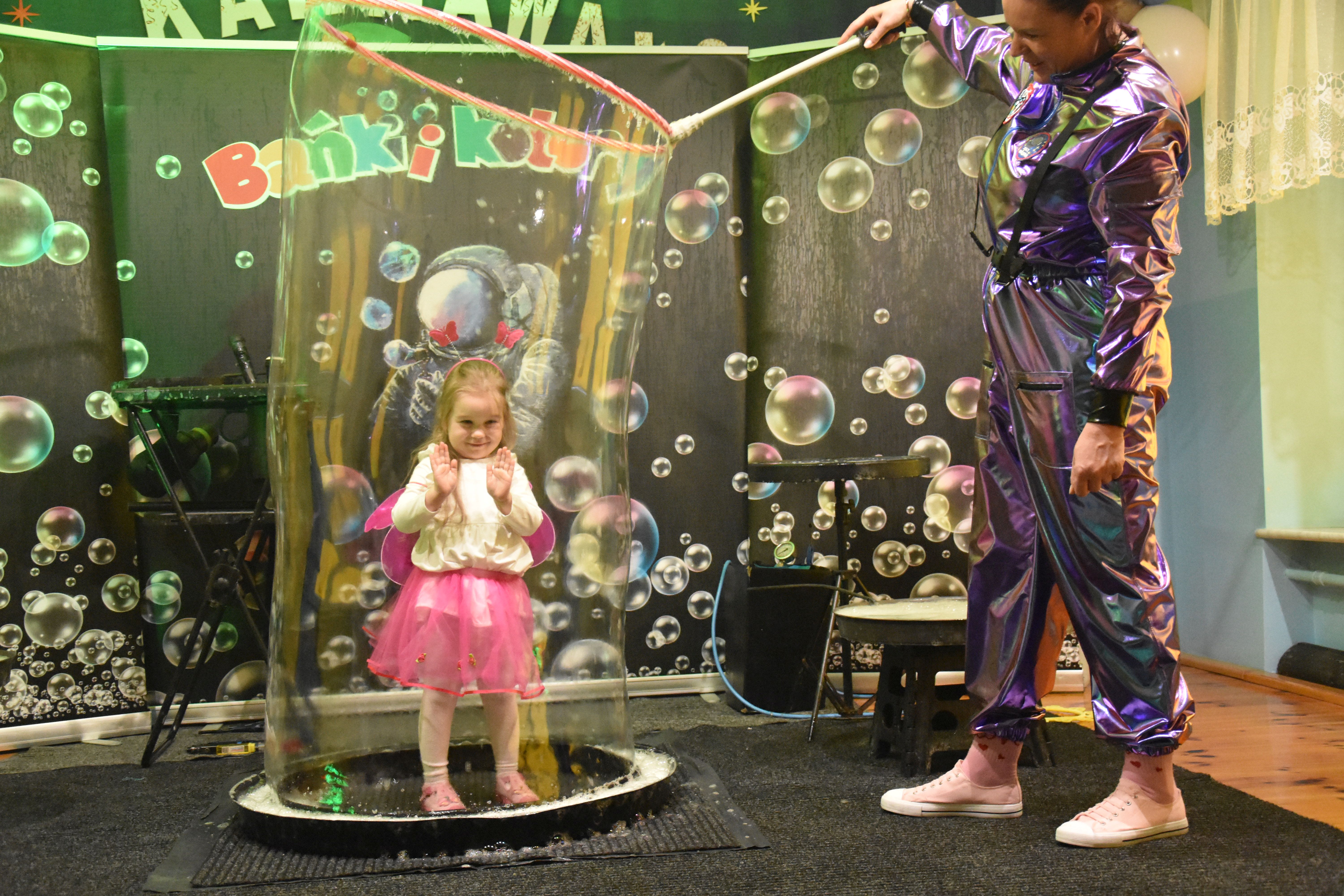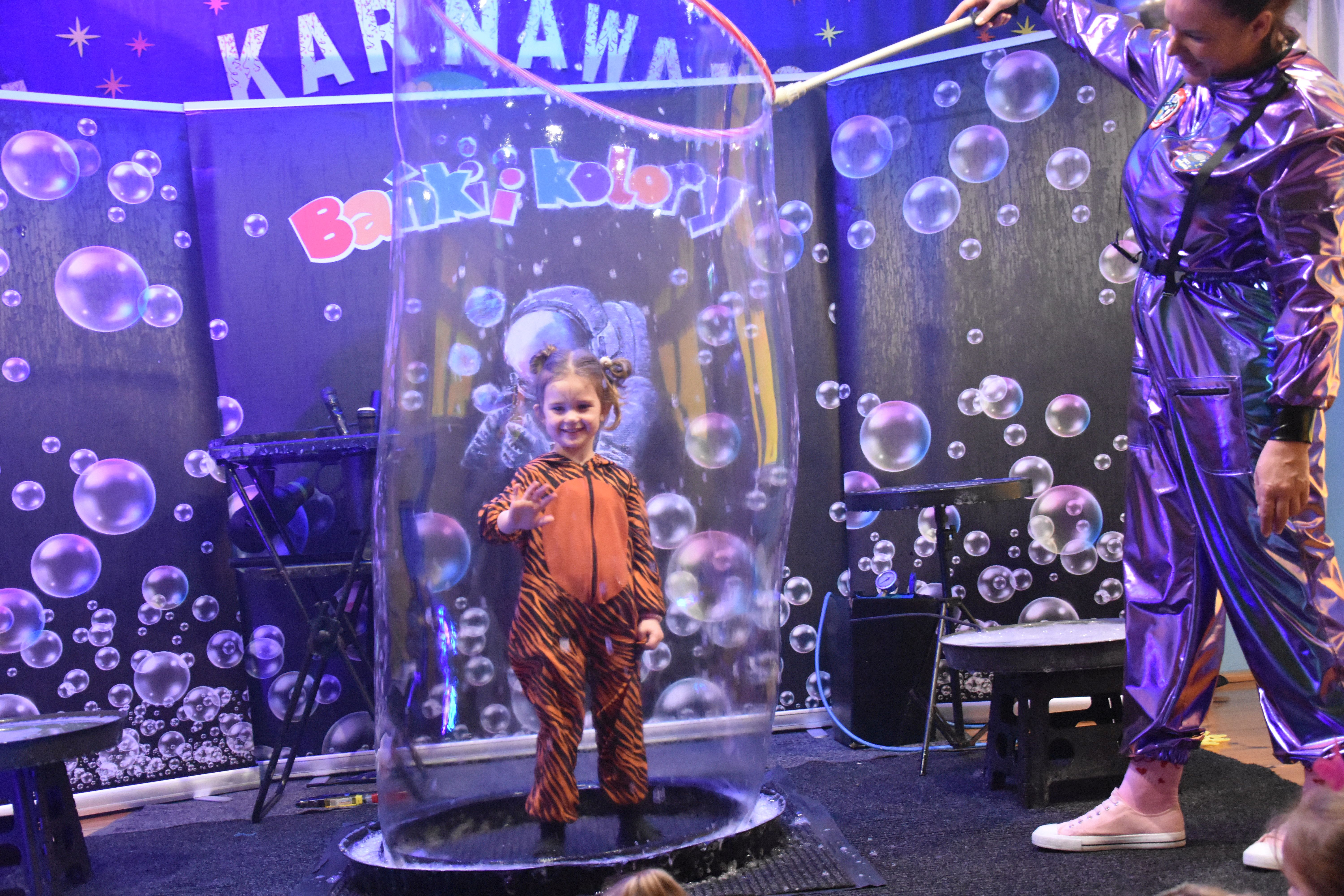 W miniony czwartek w naszym przedszkolu odbył się bal karnawałowy. Już od samego rana do przedszkola przychodziły uśmiechnięte dzieci ubrane w przepiękne, karnawałowe stroje. Wśród nich można było spotkać odważnych superbohaterów, bajkowe księżniczki, urocze syrenki, dzielnych policjantów oraz strażaków gotowych do akcji. W sali rozbrzmiewała muzyka, a dzieci z wielkim entuzjazmem tańczyły do wesołych melodii. Nie zabrakło także licznych konkursów i zabaw ruchowych, które dostarczyły wszystkim mnóstwo śmiechu i pozytywnej energii. Kulminacyjnym punktem dnia był wyjątkowy pokaz baniek mydlanych, który zachwycił każdego małego widza. Dzieci z zapartym tchem obserwowały unoszące się w powietrzu bańki o przeróżnych kształtach i kolorach. Po niezwykłym pokazie na dzieci czekała miła niespodzianka – pyszne przekąski oraz napoje, które pozwoliły nabrać sił po intensywnej zabawie. To był dzień pełen wspólnej zabawy i niezapomnianych przeżyć.