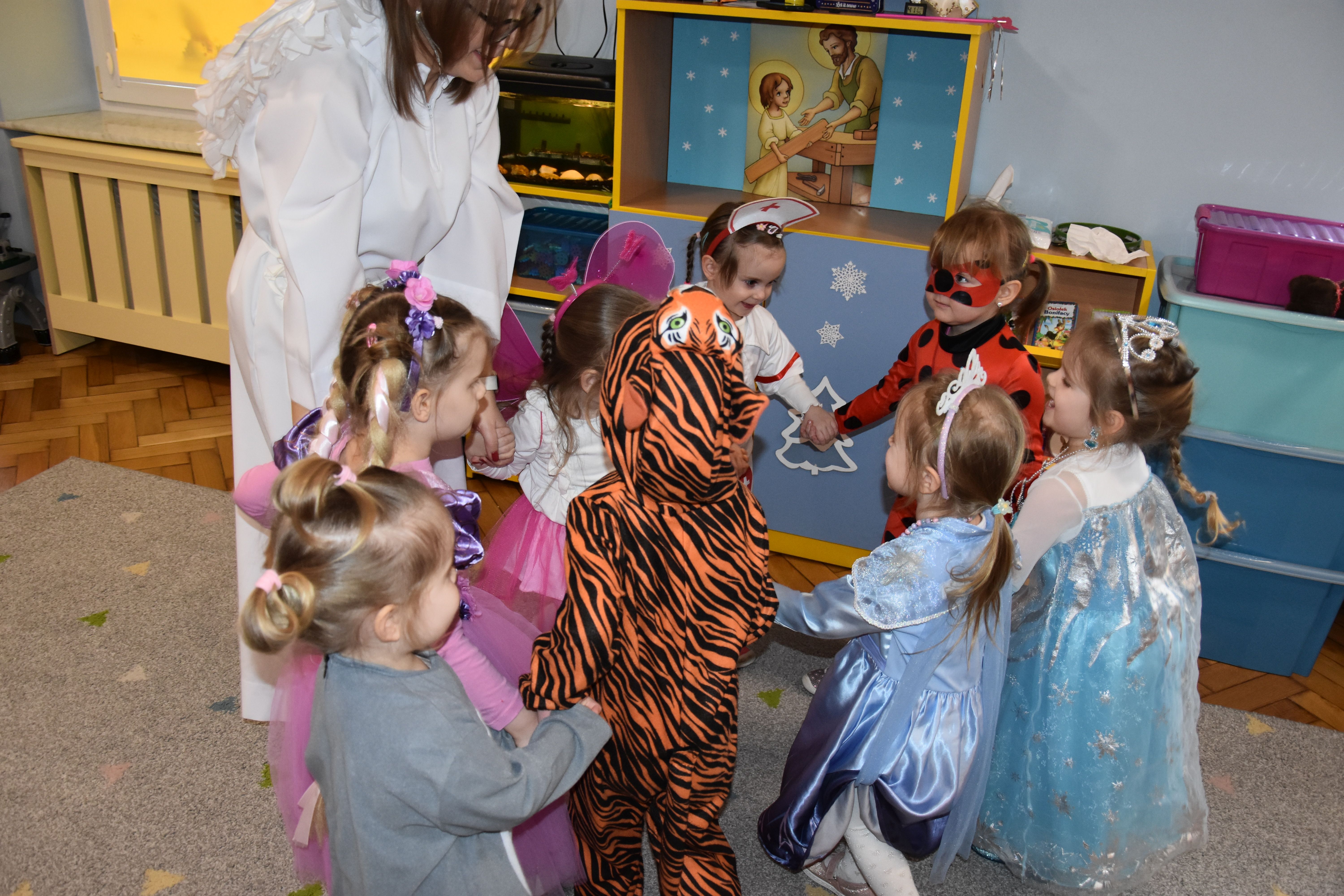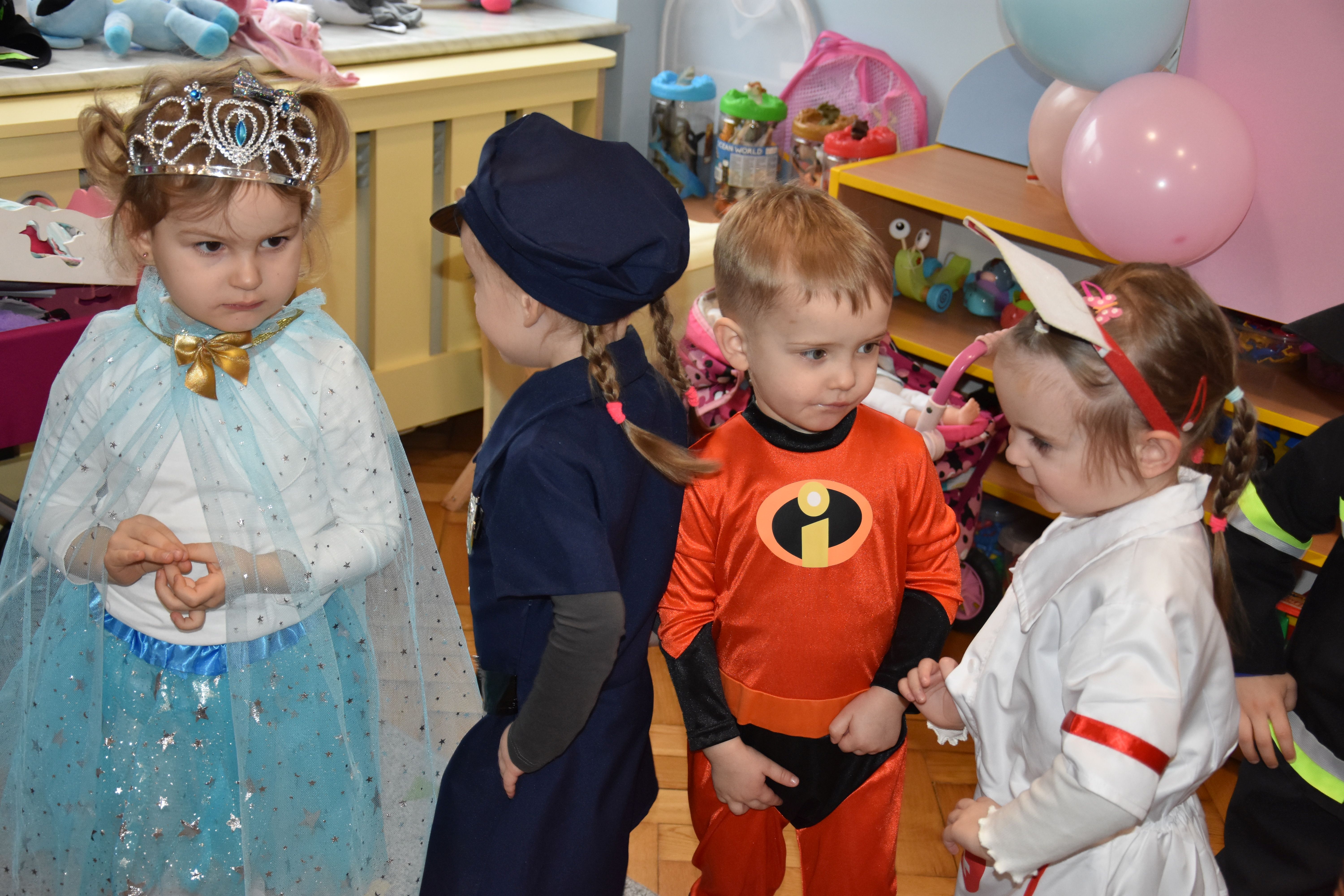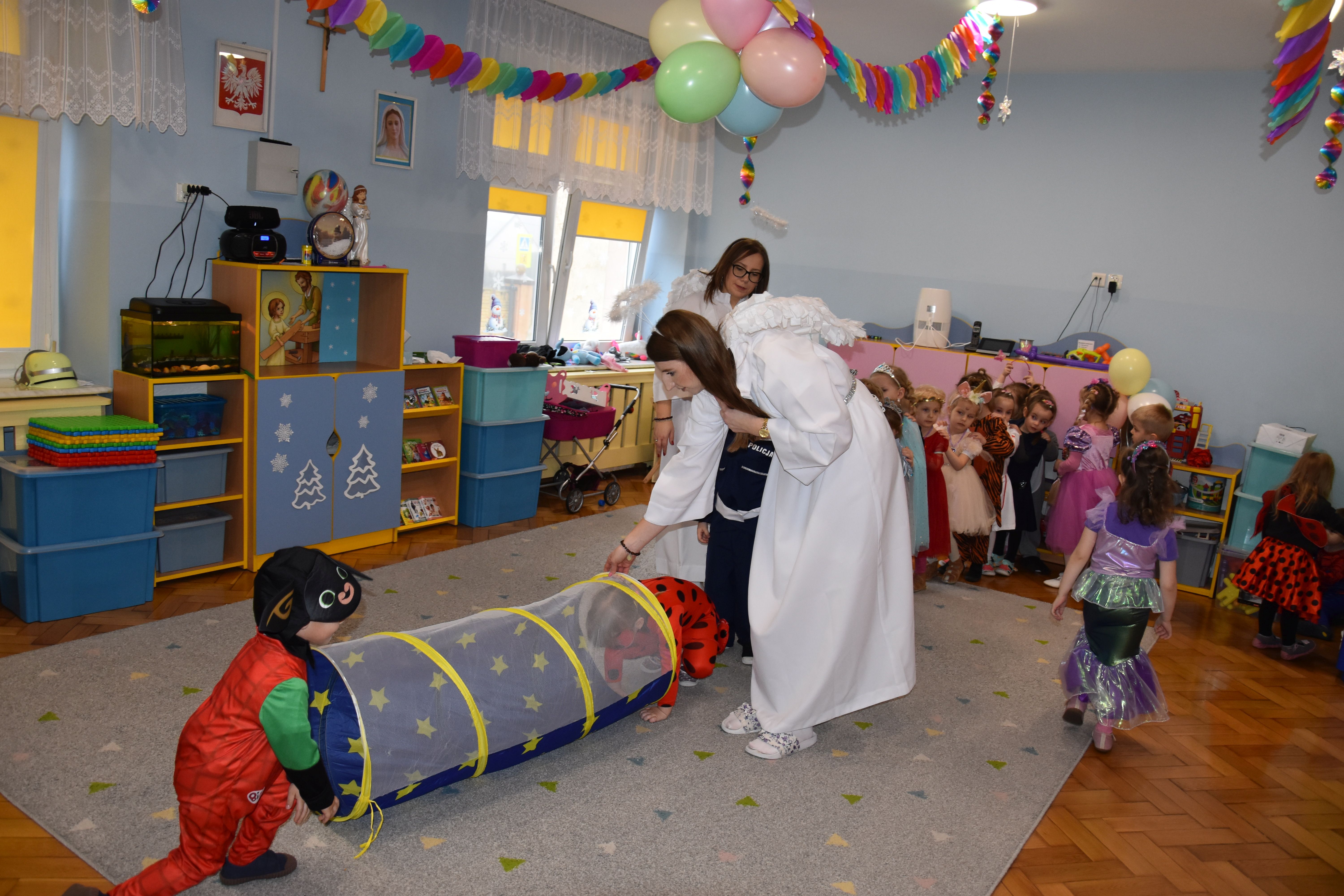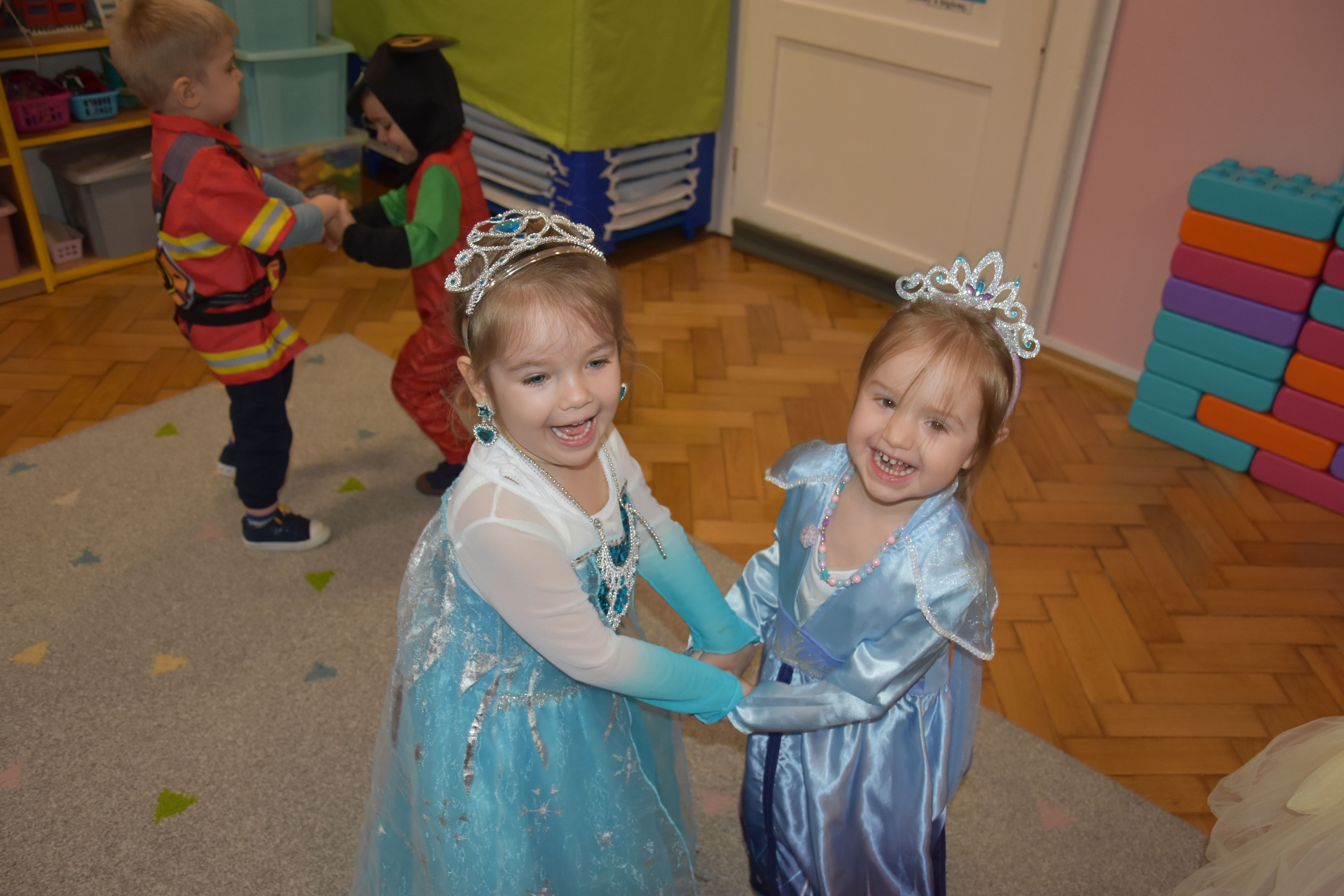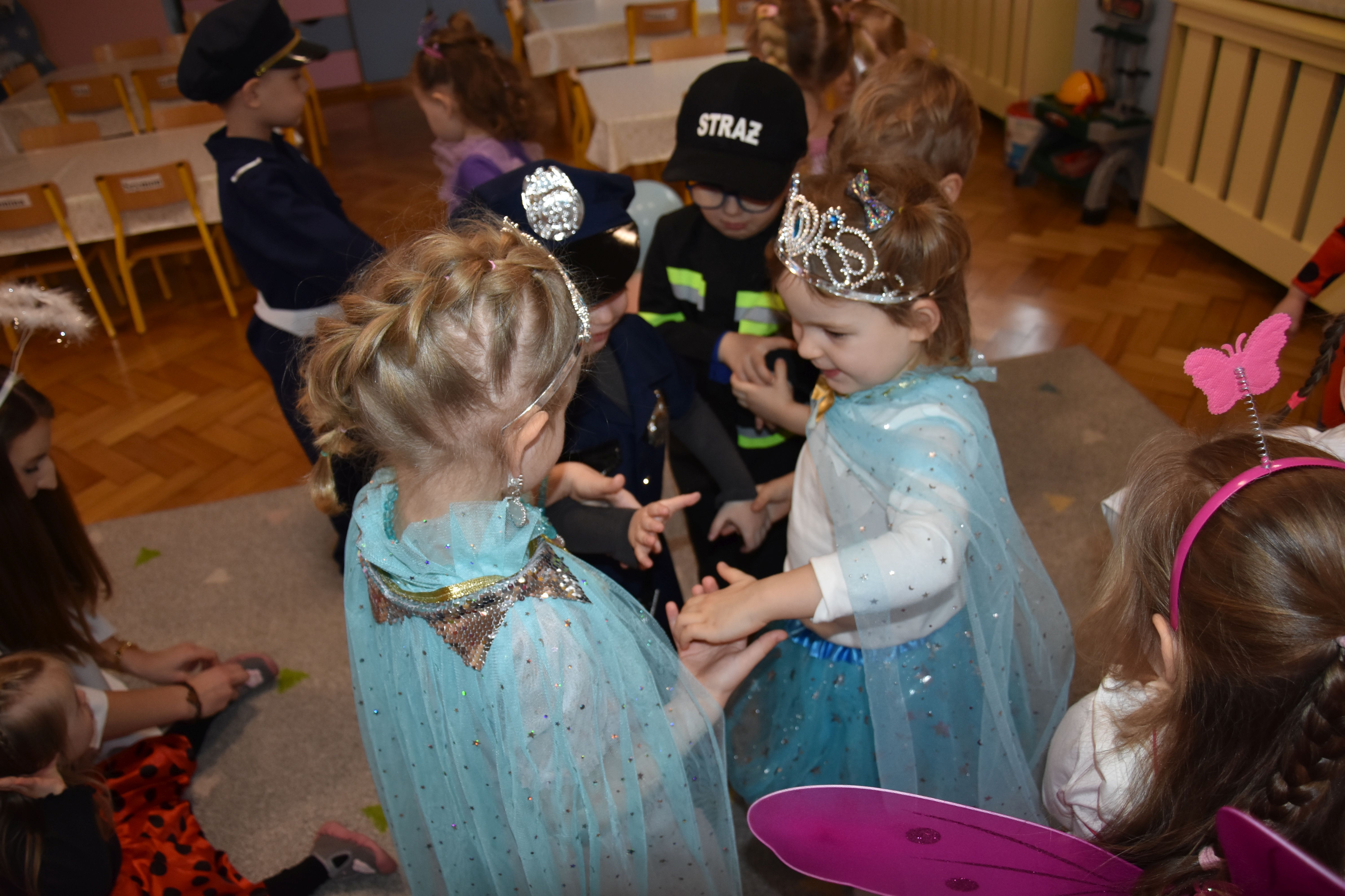 W miniony czwartek w naszym przedszkolu odbył się bal karnawałowy. Już od samego rana do przedszkola przychodziły uśmiechnięte dzieci ubrane w przepiękne, karnawałowe stroje. Wśród nich można było spotkać odważnych superbohaterów, bajkowe księżniczki, urocze syrenki, dzielnych policjantów oraz strażaków gotowych do akcji. W sali rozbrzmiewała muzyka, a dzieci z wielkim entuzjazmem tańczyły do wesołych melodii. Nie zabrakło także licznych konkursów i zabaw ruchowych, które dostarczyły wszystkim mnóstwo śmiechu i pozytywnej energii. Kulminacyjnym punktem dnia był wyjątkowy pokaz baniek mydlanych, który zachwycił każdego małego widza. Dzieci z zapartym tchem obserwowały unoszące się w powietrzu bańki o przeróżnych kształtach i kolorach. Po niezwykłym pokazie na dzieci czekała miła niespodzianka – pyszne przekąski oraz napoje, które pozwoliły nabrać sił po intensywnej zabawie. To był dzień pełen wspólnej zabawy i niezapomnianych przeżyć.