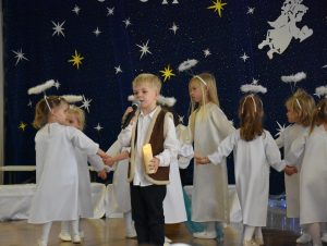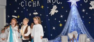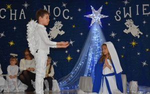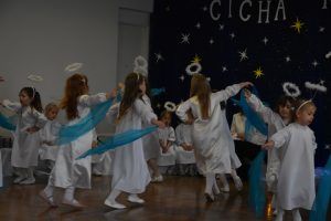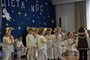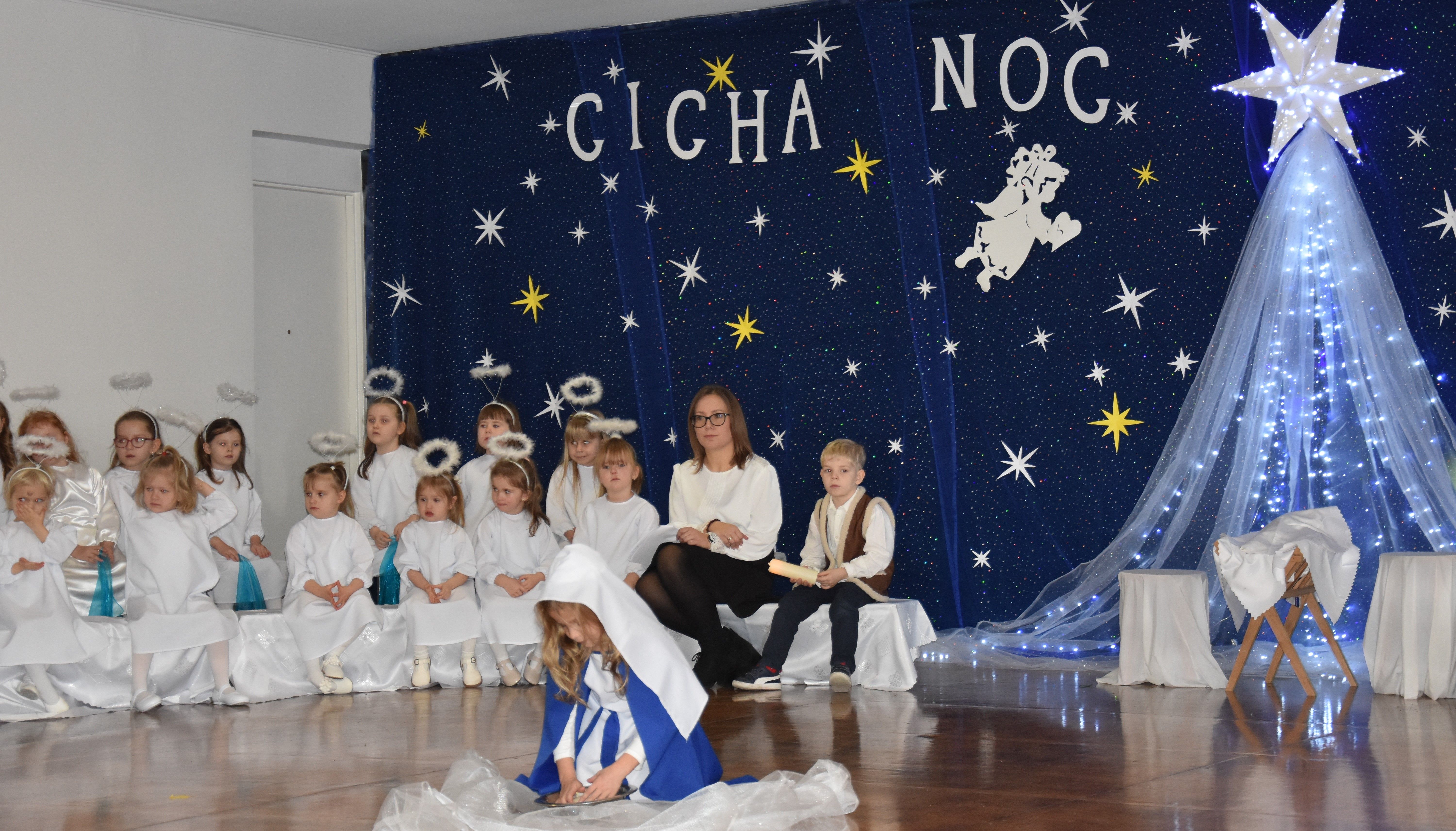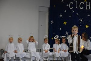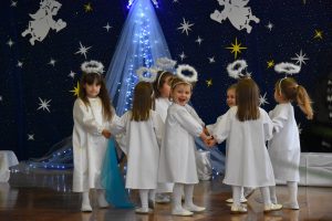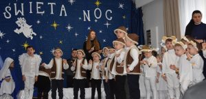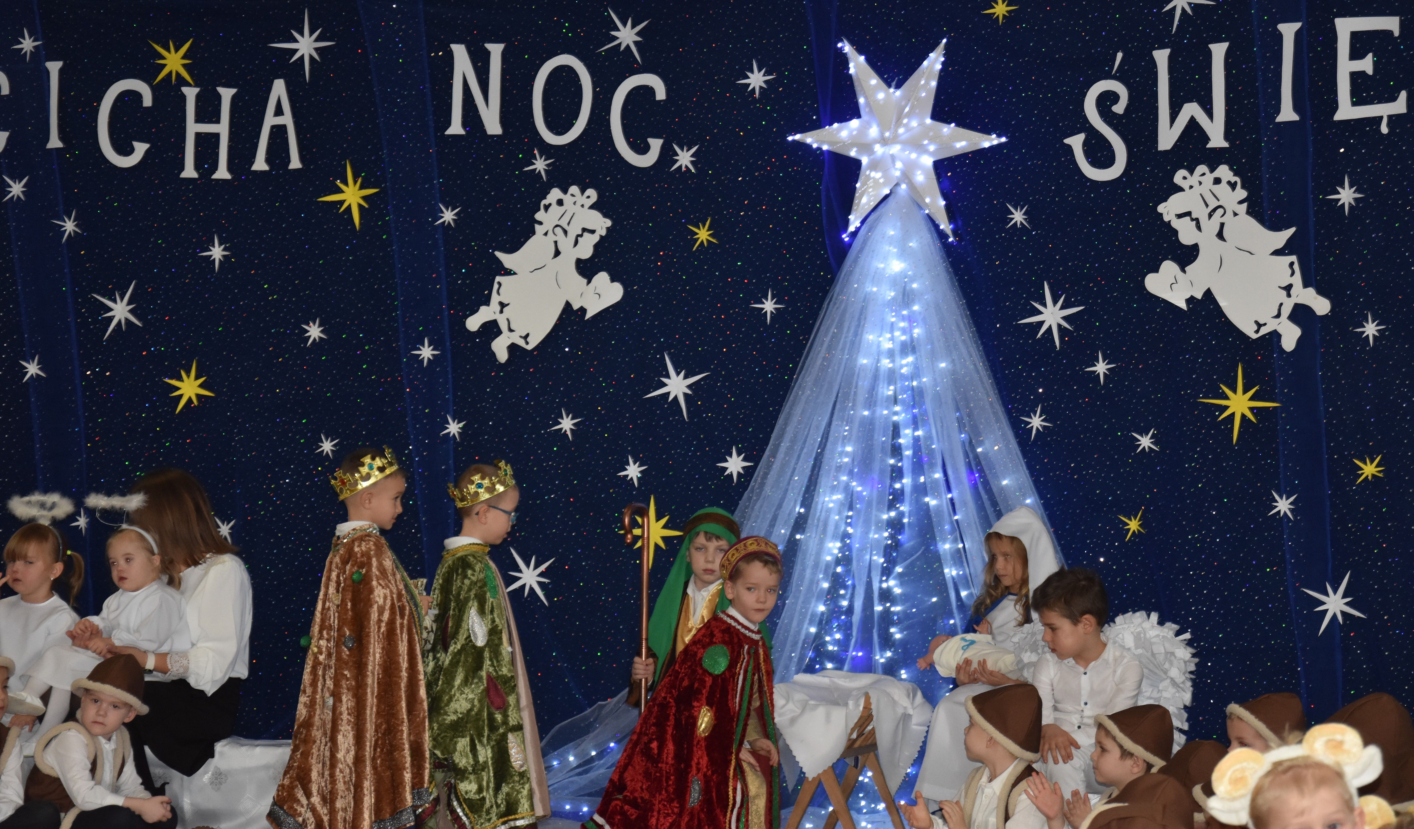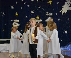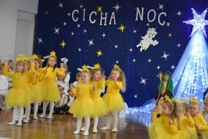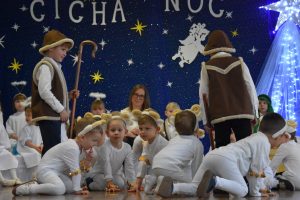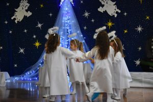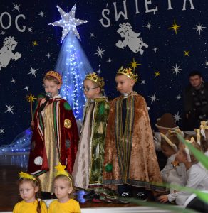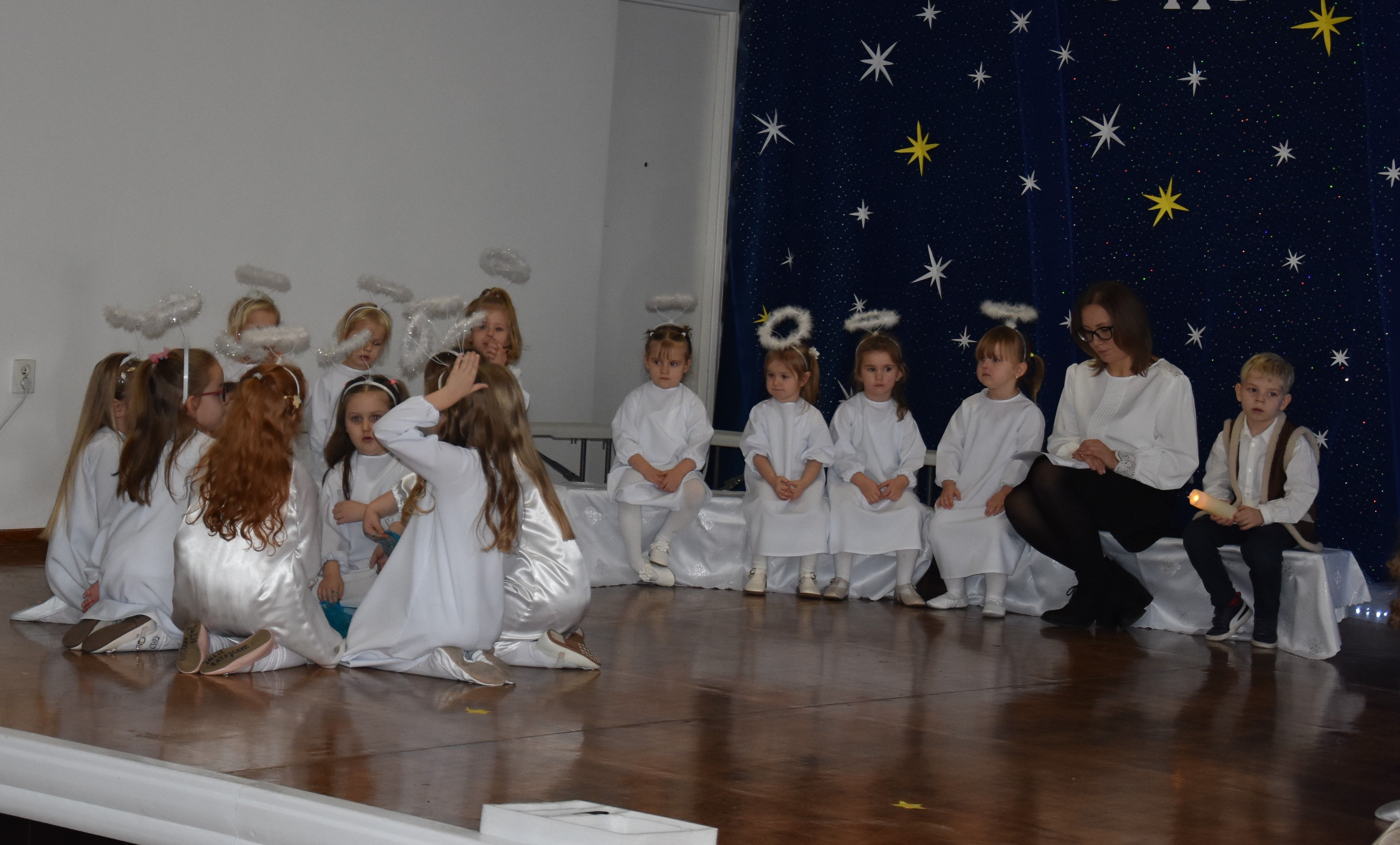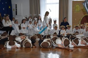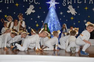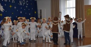 18 grudnia w sali GOK – u odbyły się wyjątkowe Jasełka w wykonaniu dzieci z naszego przedszkola. W obecności władz gminy, ks. proboszcza, Sióstr Służebniczek oraz rodziców mali artyści z ogromnym przejęciem przypomnieli nam istotę Świąt Bożego Narodzenia. Każda scena, gest i słowo niosły za sobą przesłanie dobra, jedności i pokoju poruszając serca wszystkich zgromadzonych.