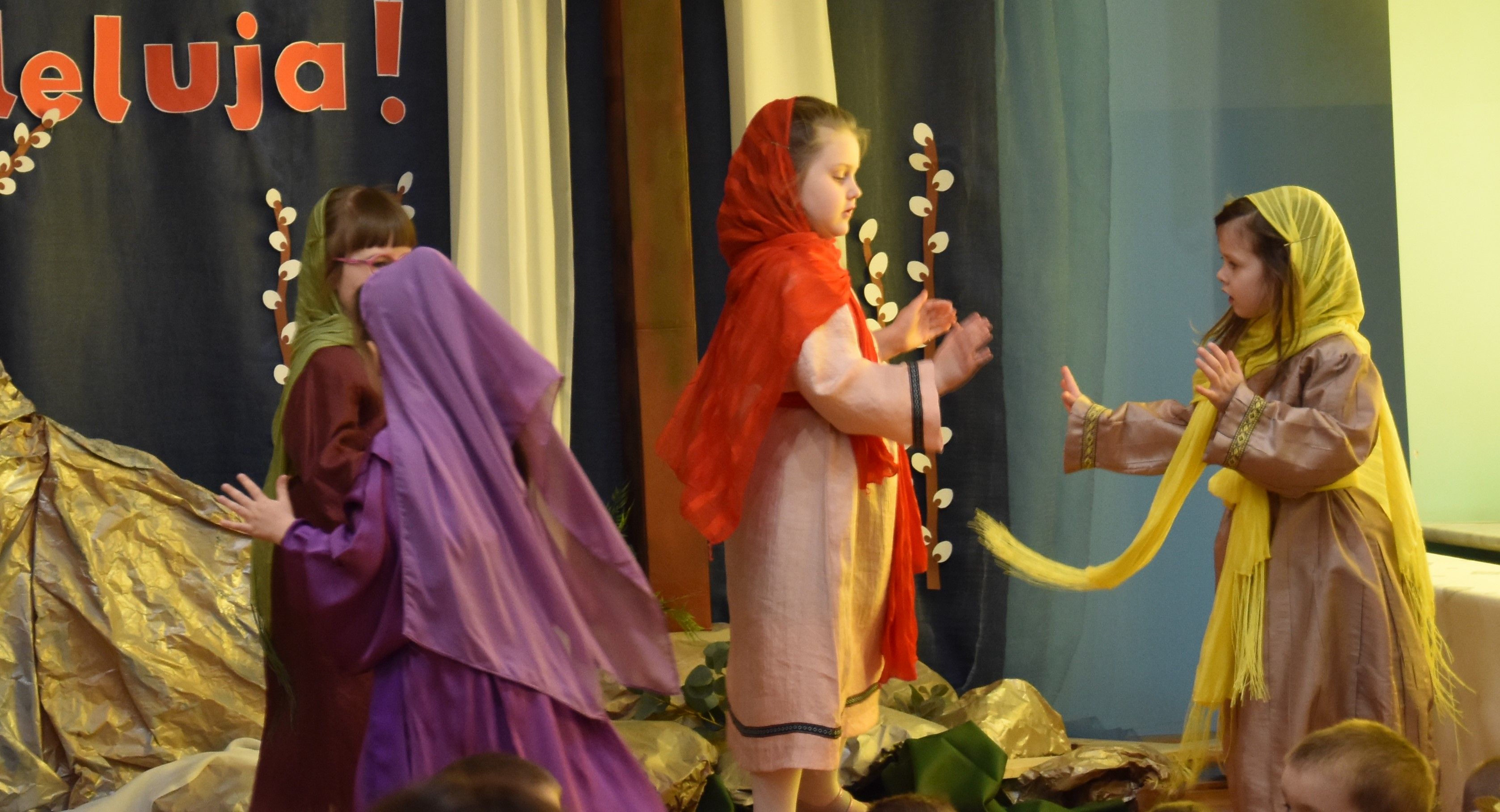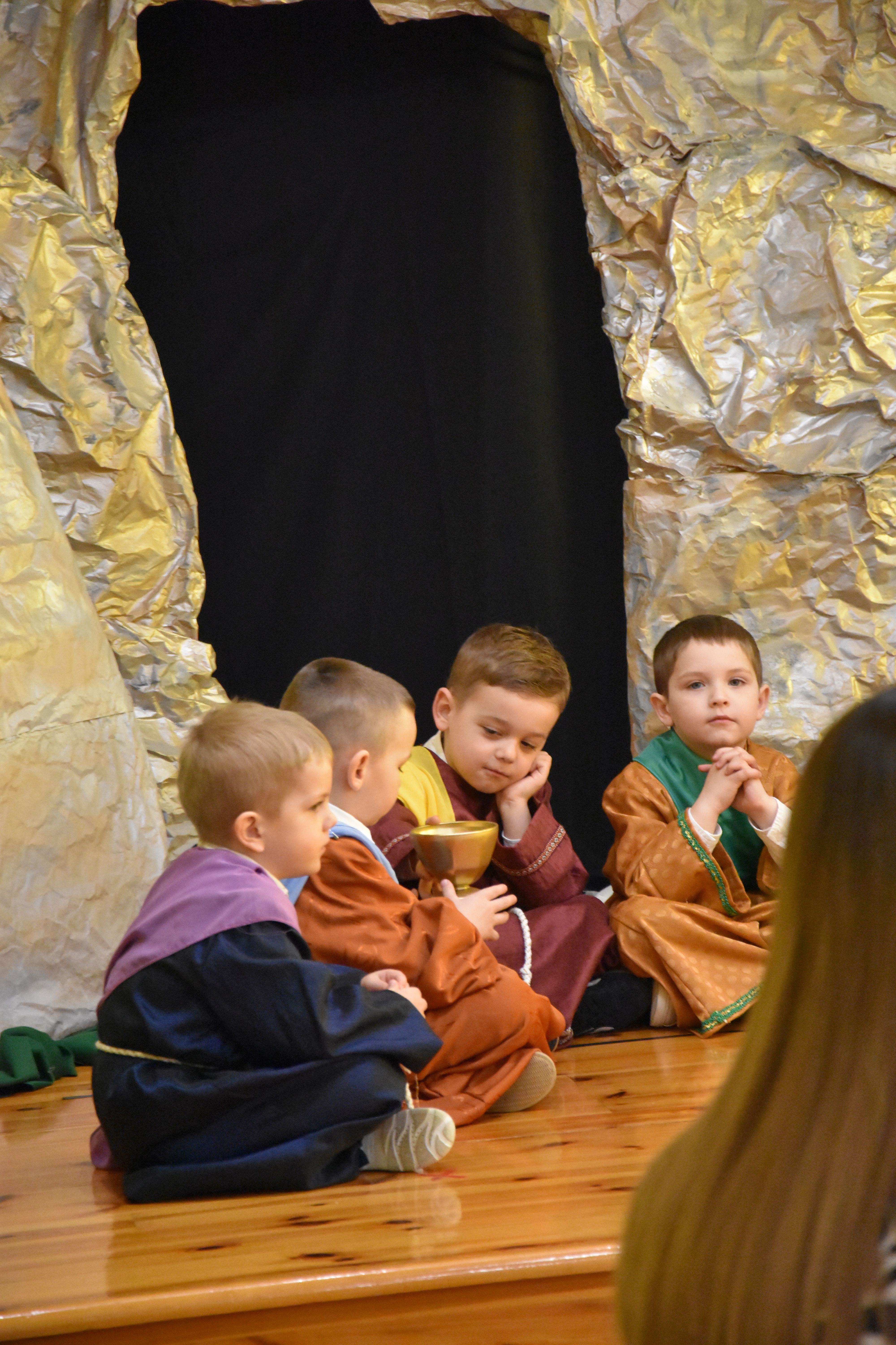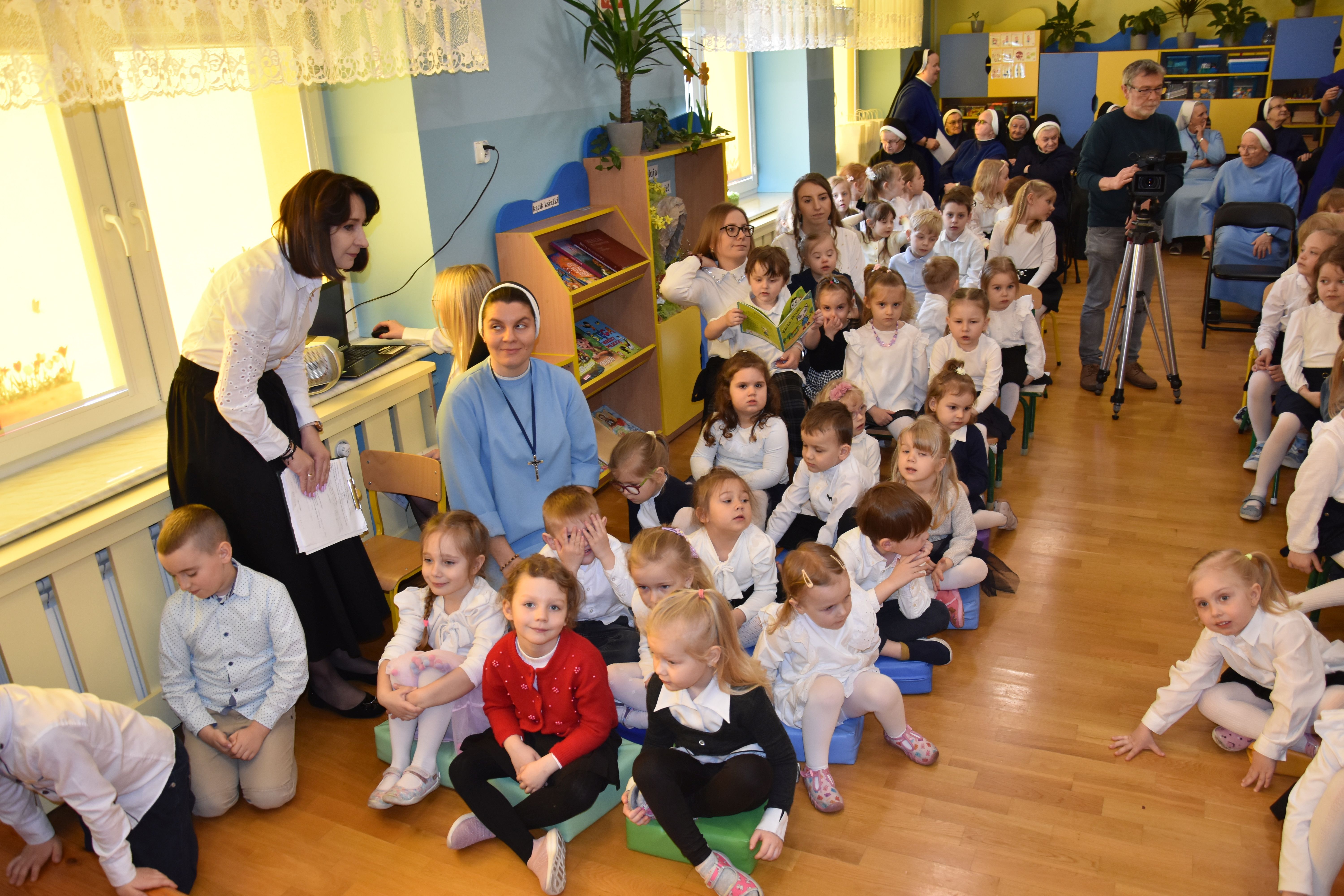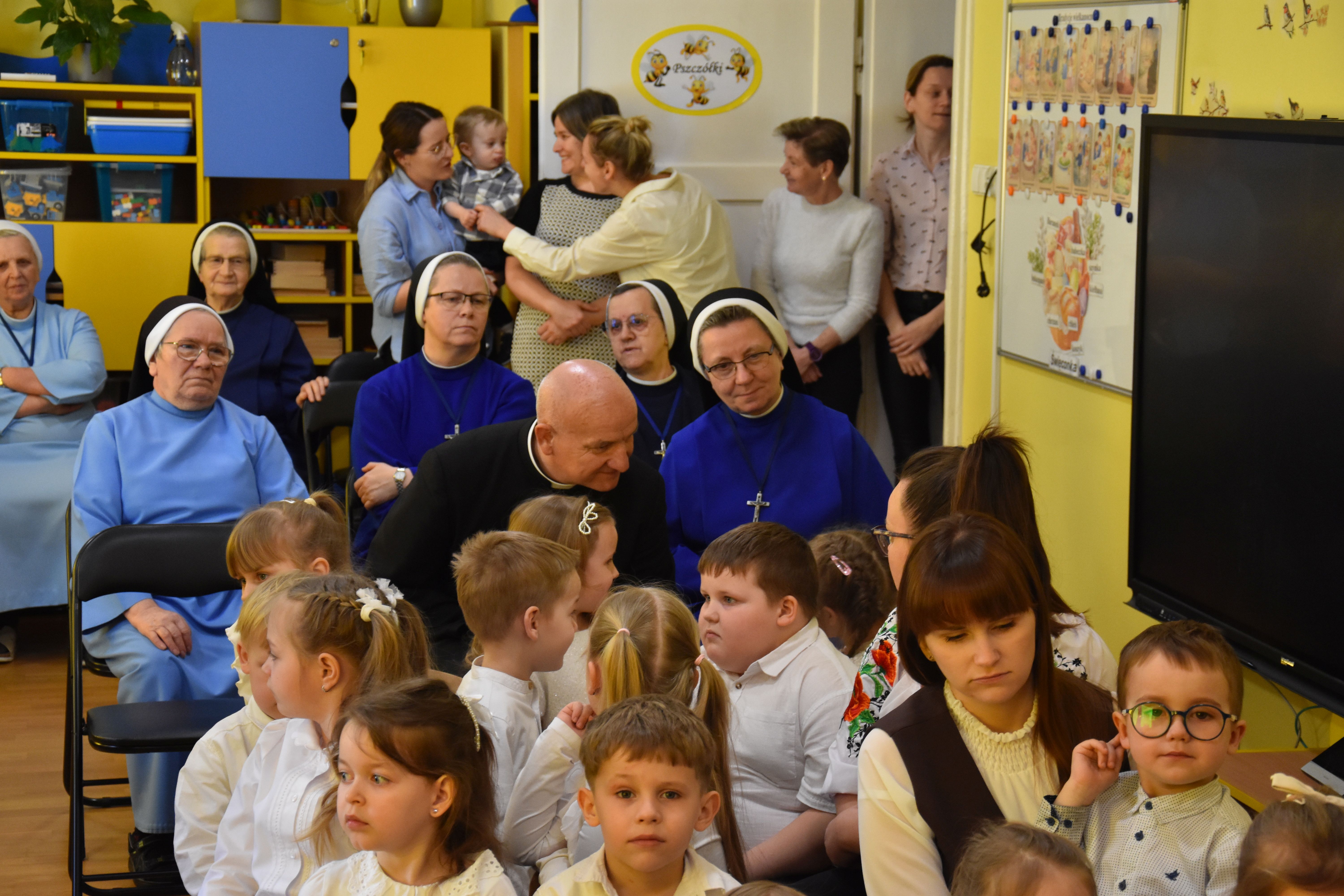 W naszym przedszkolu tradycyjnie w Wielką Środę celebrujemy już obchody świąt wielkanocnych. Z tej okazji dzieci z grupy Pszczółki przygotowały piękne Misterium Wielkanocne nawiązujące do całego Wielkiego Tygodnia począwszy od Niedzieli Palmowej, poprzez Triduum Paschalne, a skończywszy na Zmartwychwstaniu Pana Jezusa. Społeczność przedszkolna zaprosiła na tą uroczystosć ks. Proboszcza, s.Przełożoną wraz z siostrami emerytkami i całą wspólnotę zakonną. Po inscenizacji ks. Proboszcz przeszedł po salach poświęcić przygotowane przez dzieci koszyczki.