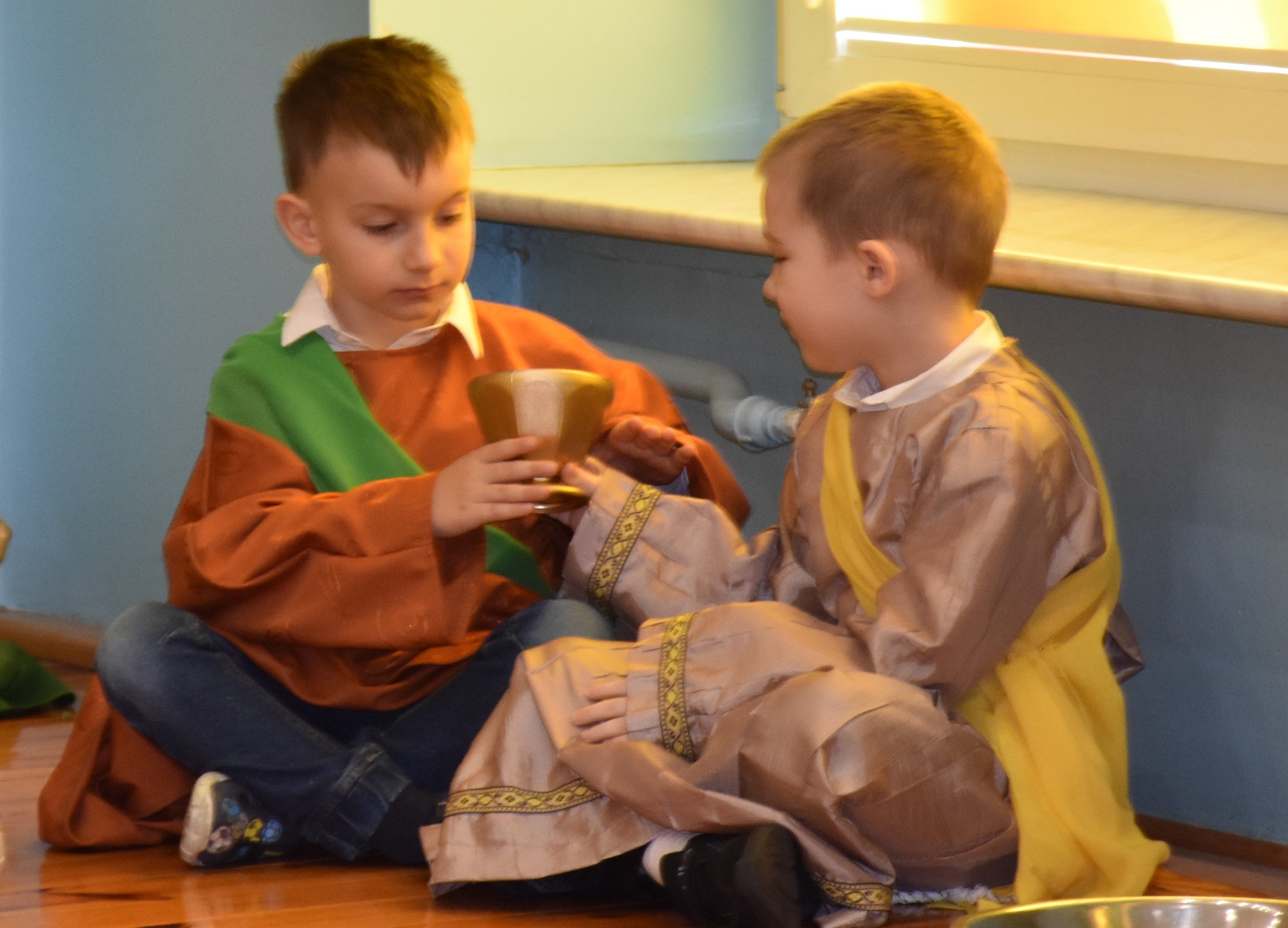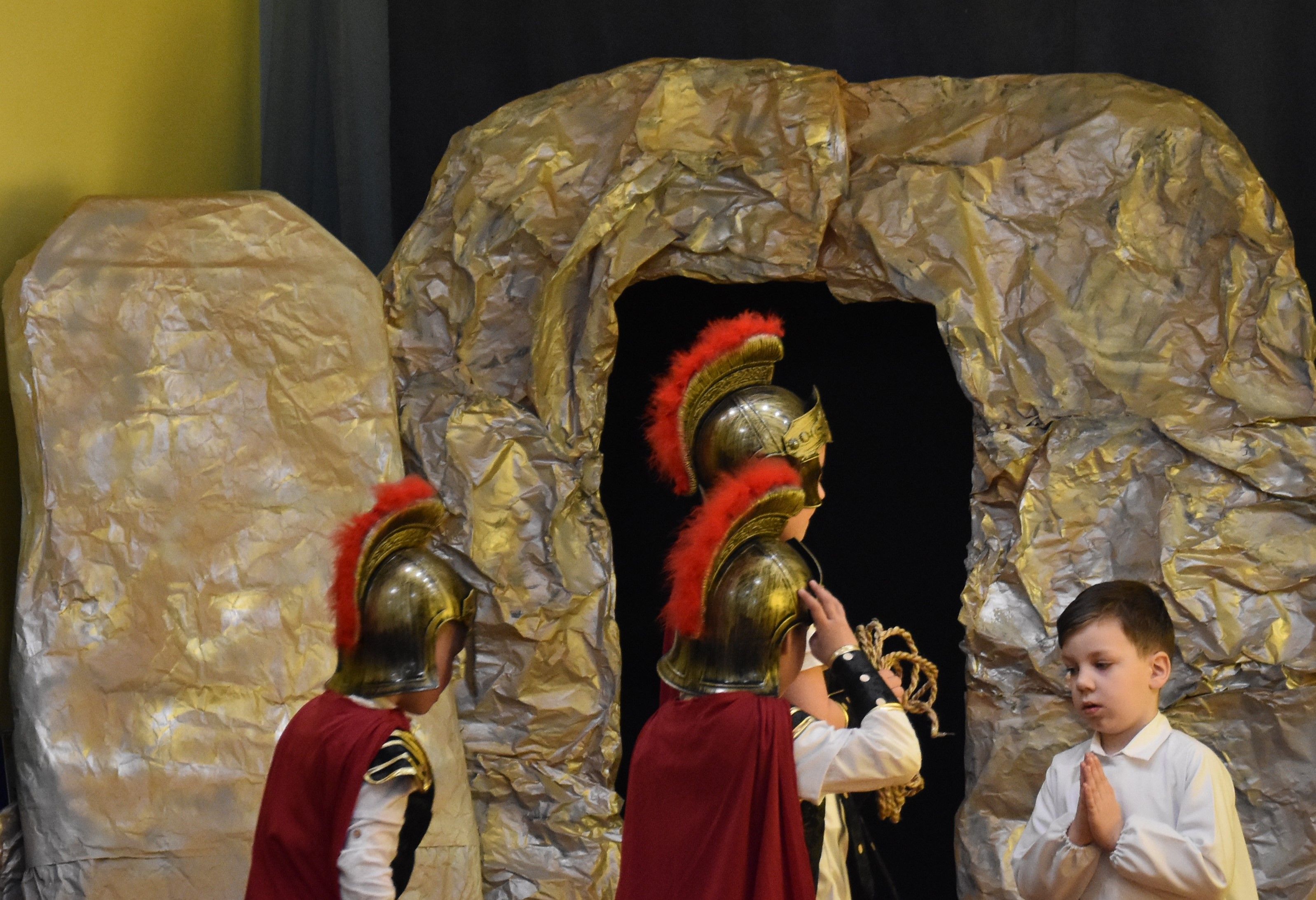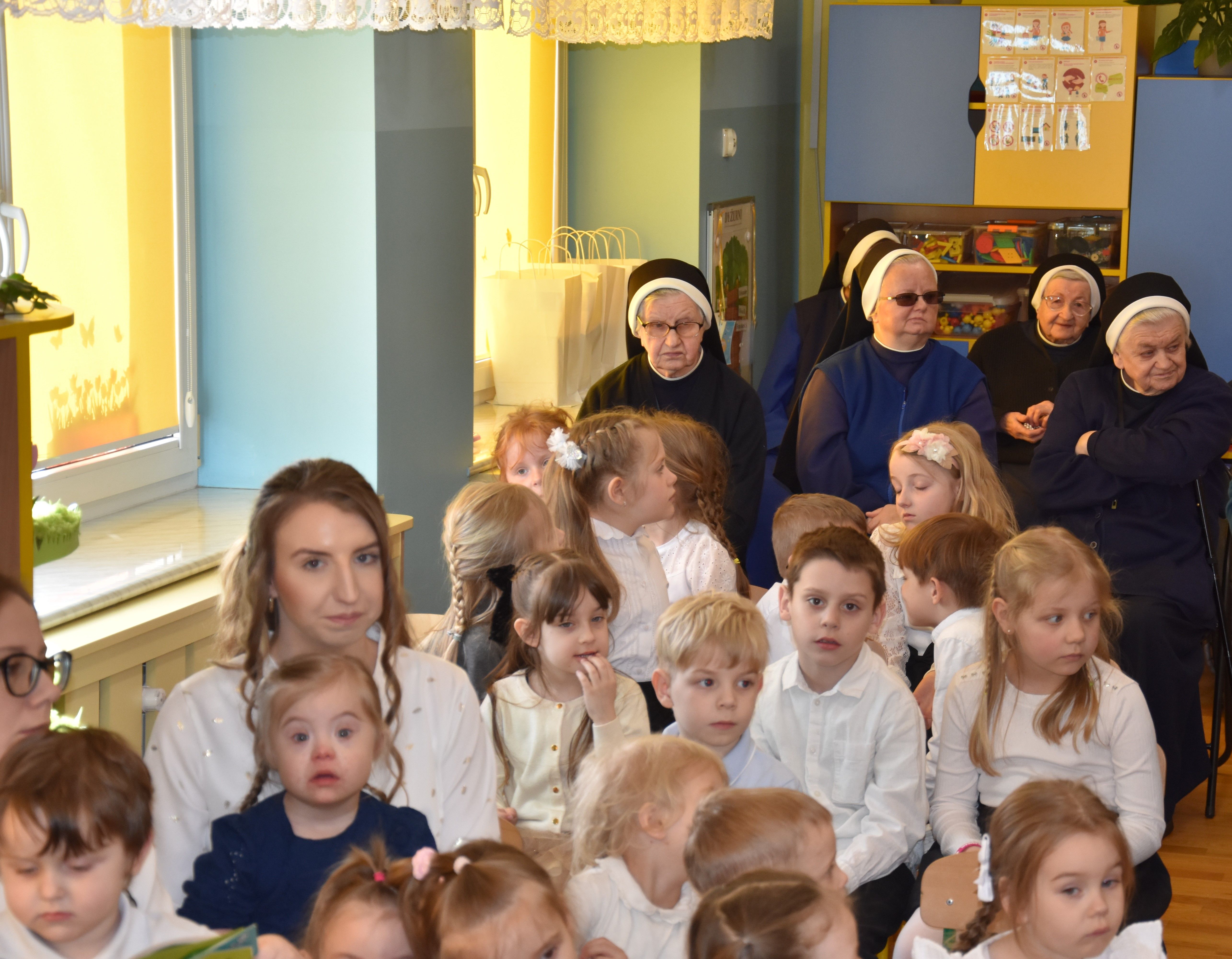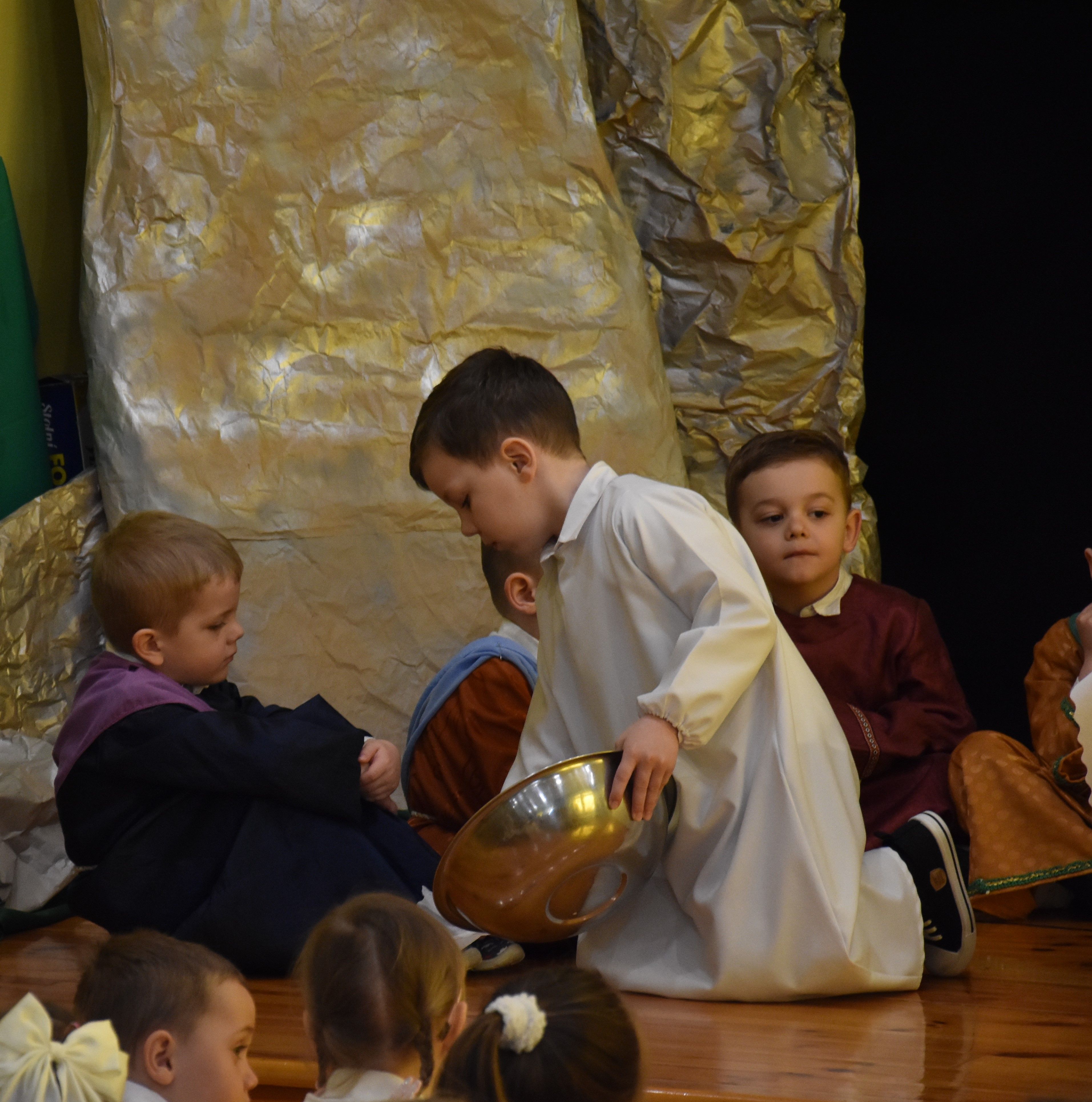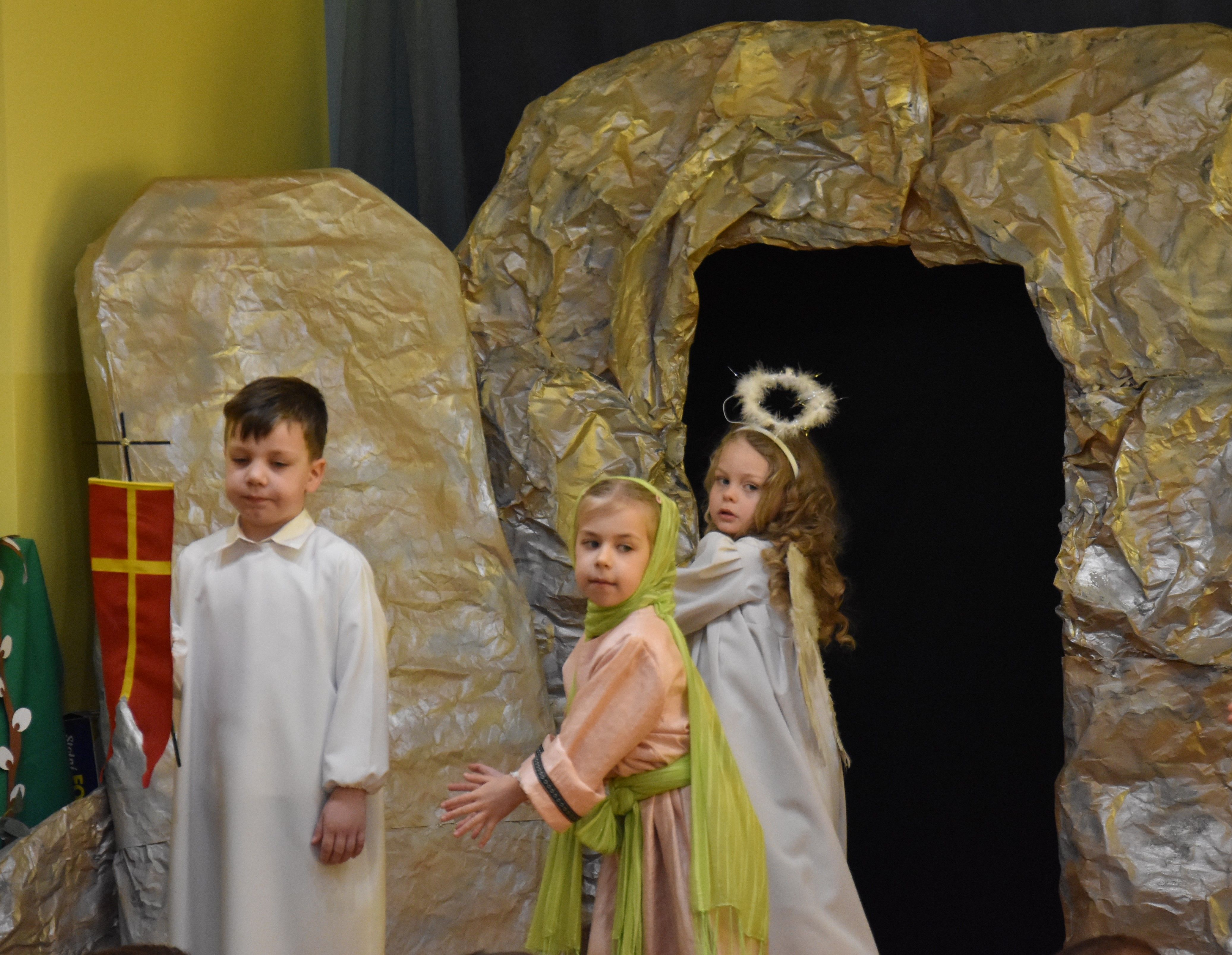 W naszym przedszkolu tradycyjnie w Wielką Środę celebrujemy już obchody świąt wielkanocnych. Z tej okazji dzieci z grupy Pszczółki przygotowały piękne Misterium Wielkanocne nawiązujące do całego Wielkiego Tygodnia począwszy od Niedzieli Palmowej, poprzez Triduum Paschalne, a skończywszy na Zmartwychwstaniu Pana Jezusa. Społeczność przedszkolna zaprosiła na tą uroczystosć ks. Proboszcza, s.Przełożoną wraz z siostrami emerytkami i całą wspólnotę zakonną. Po inscenizacji ks. Proboszcz przeszedł po salach poświęcić przygotowane przez dzieci koszyczki.