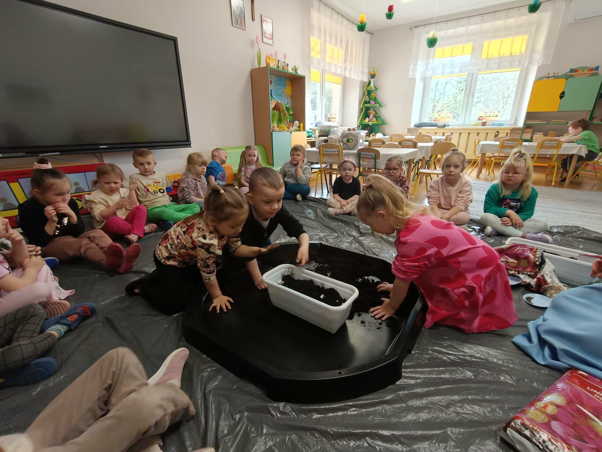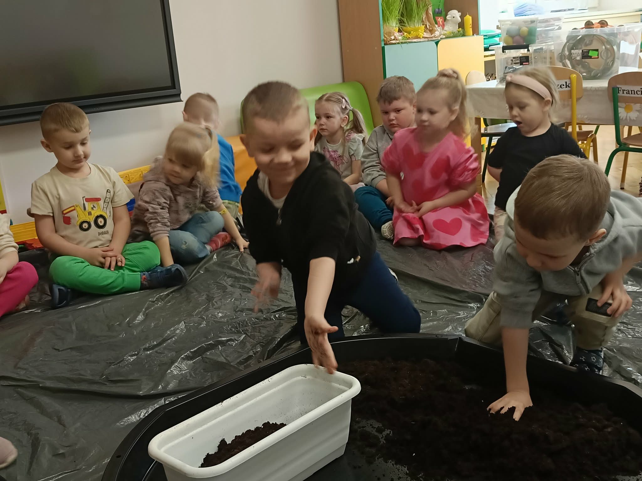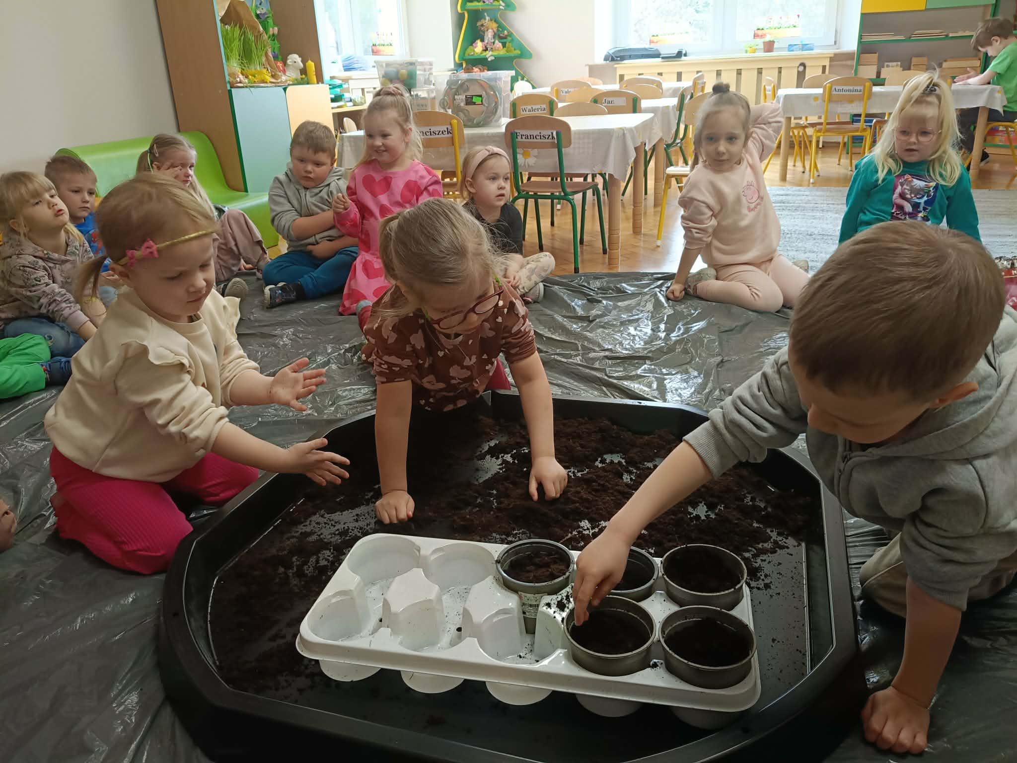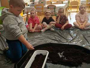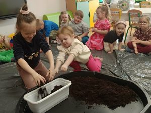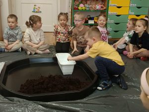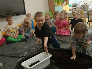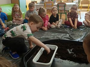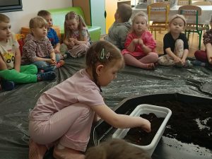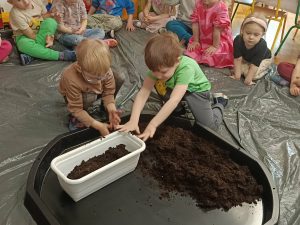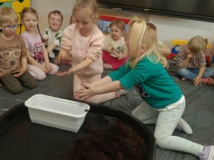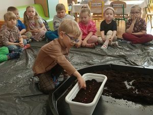 W tym tygodniu, w ramach naszego tematu tygodniowego, dzieci z grupy „Motylków” poznają świat roślin. W środę wspólnie zasialiśmy nasiona, zasadziliśmy cebulki. Dzieci codziennie pielęgnują je i obserwują, czy coś juz urosło. To doskonała okazja do nauki przez zabawę oraz rozwijania odpowiedzialności i troski o przyrodę.