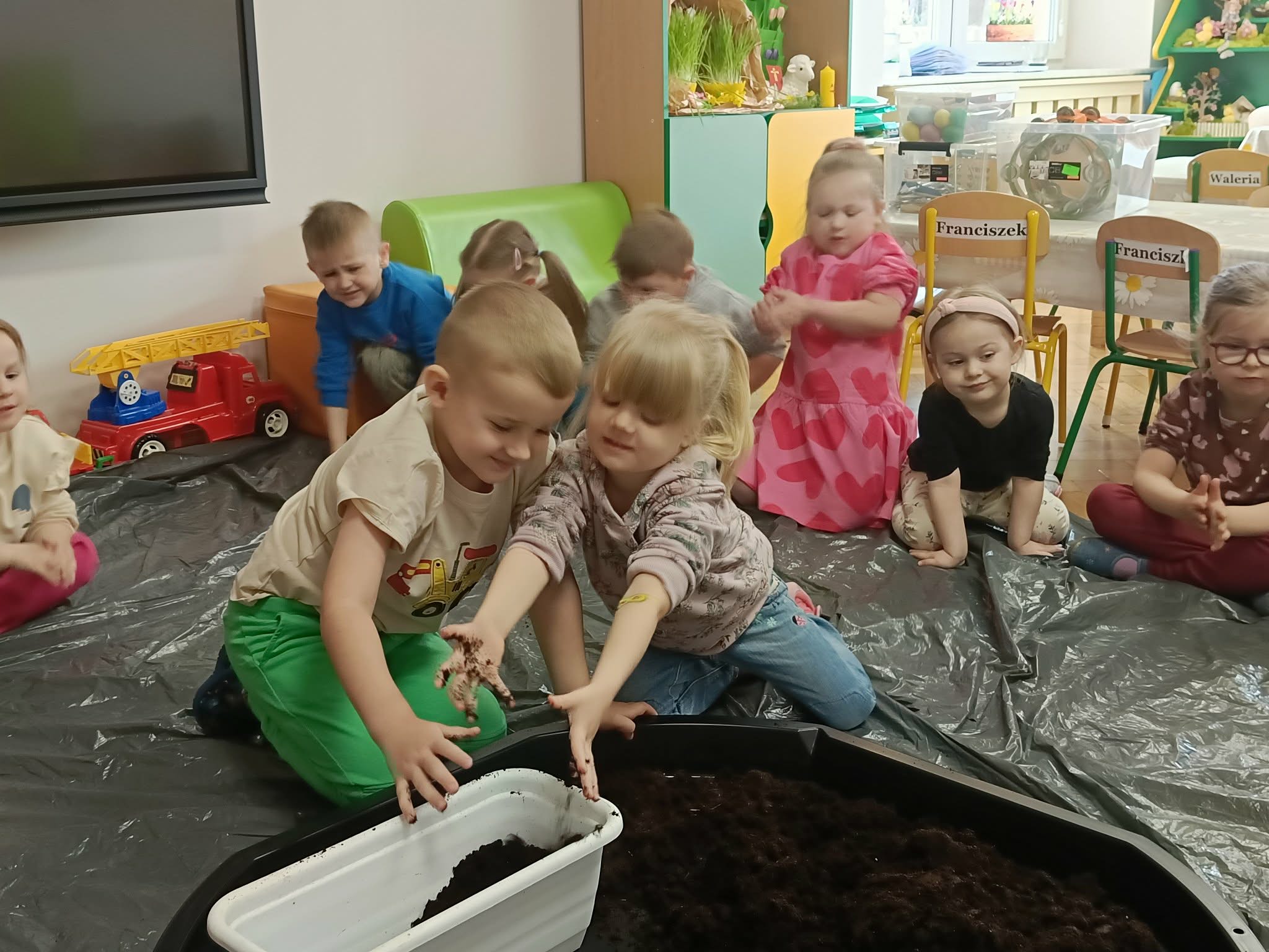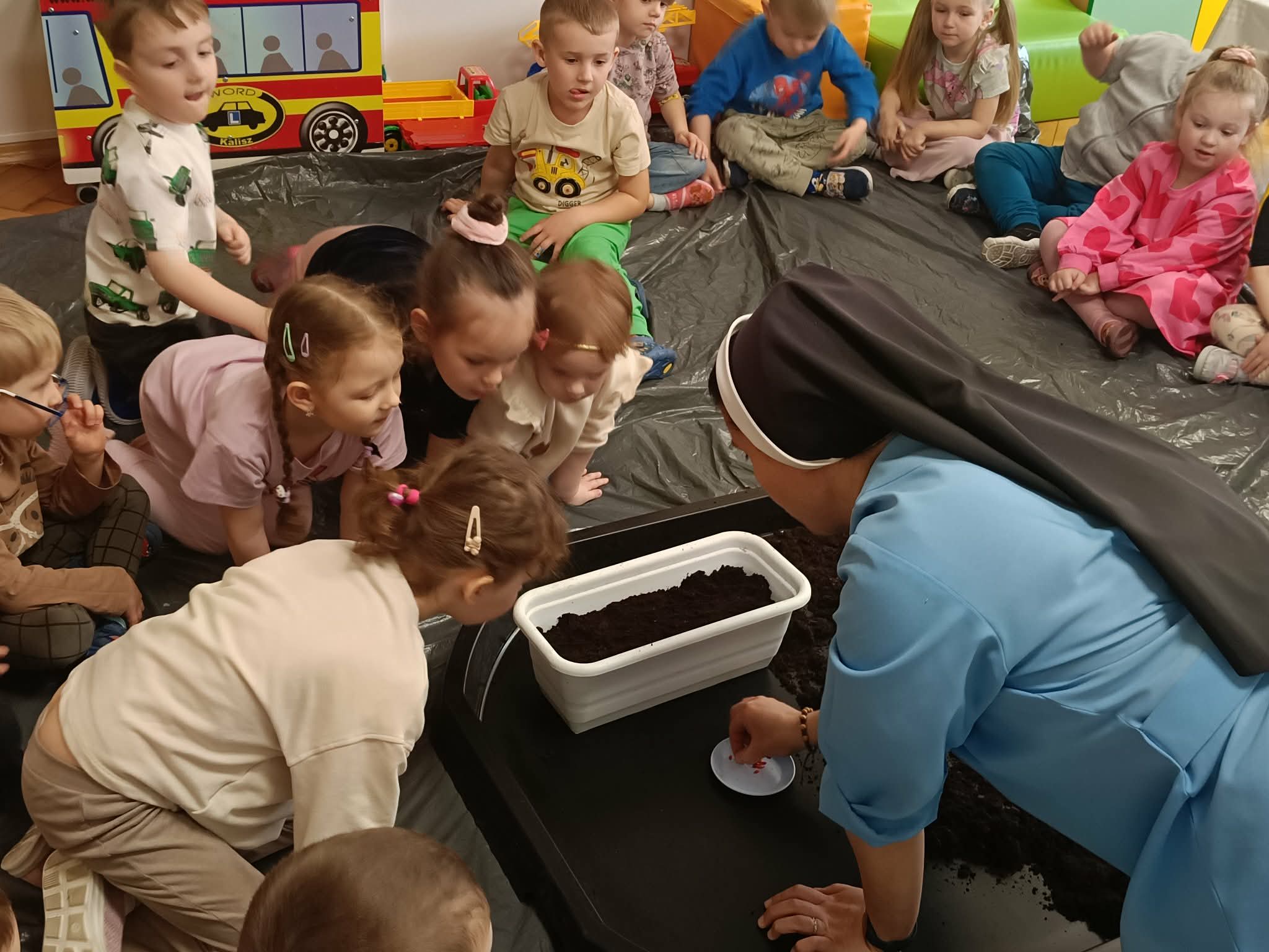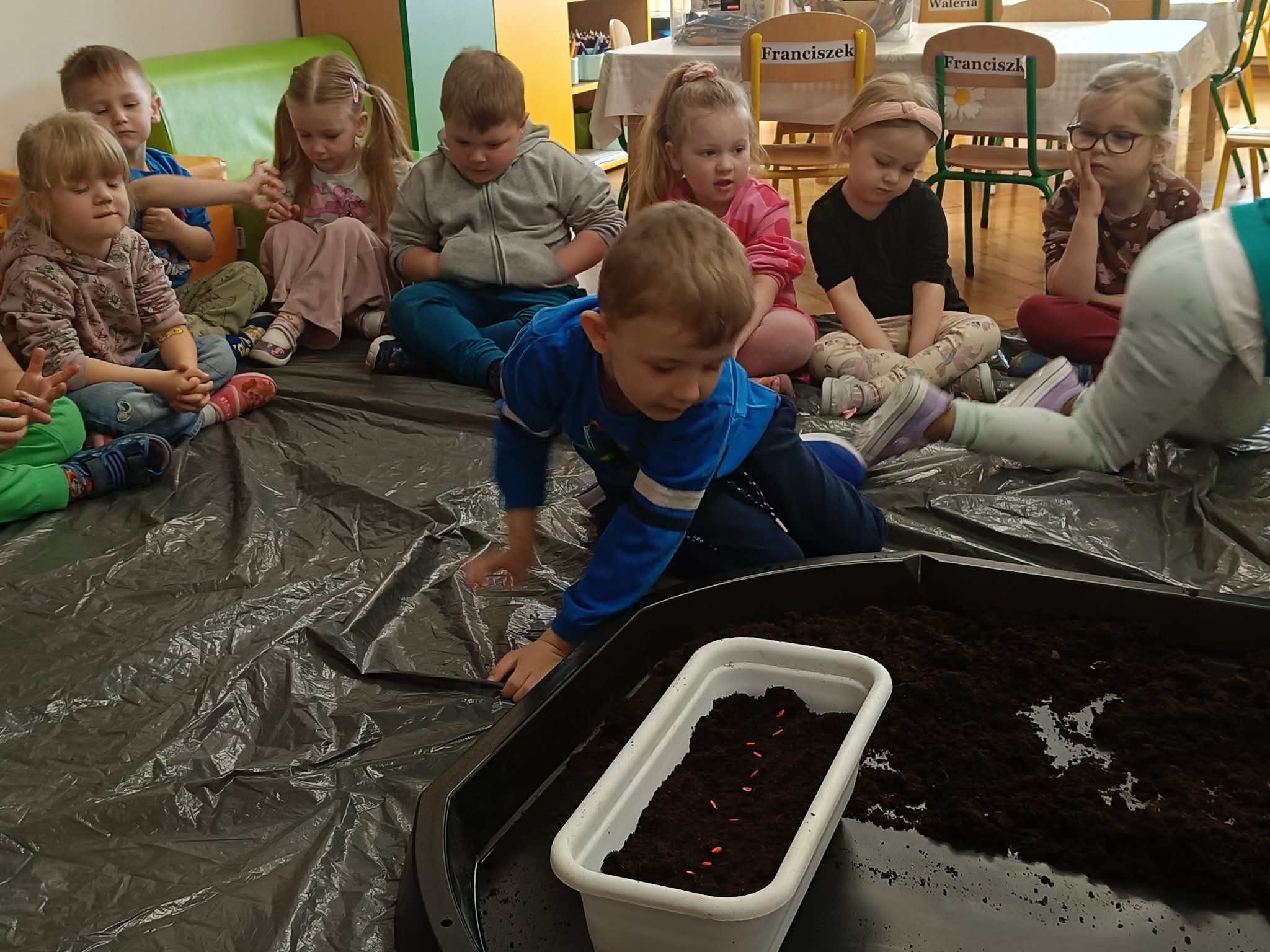 W tym tygodniu, w ramach naszego tematu tygodniowego, dzieci z grupy „Motylków” poznają świat roślin. W środę wspólnie zasialiśmy nasiona, zasadziliśmy cebulki. Dzieci codziennie pielęgnują je i obserwują, czy coś juz urosło. To doskonała okazja do nauki przez zabawę oraz rozwijania odpowiedzialności i troski o przyrodę.