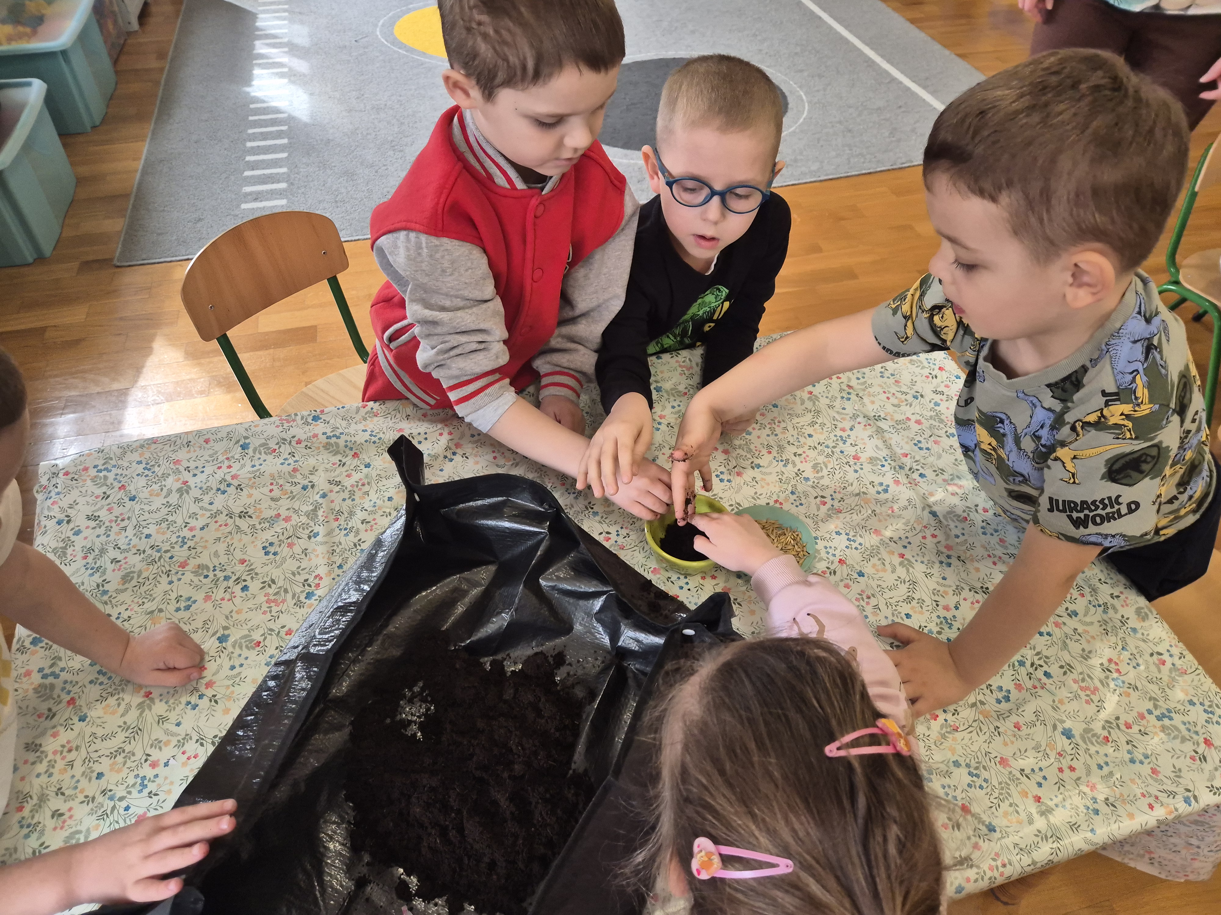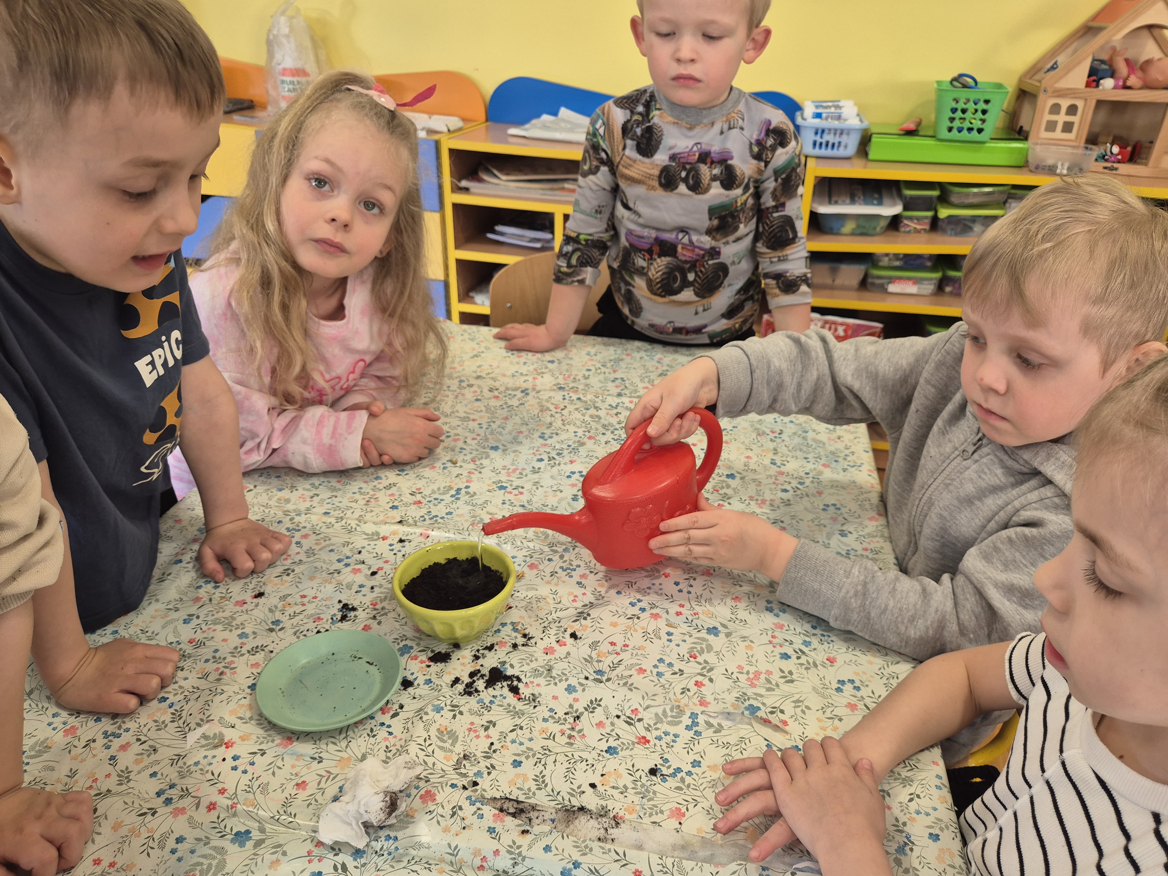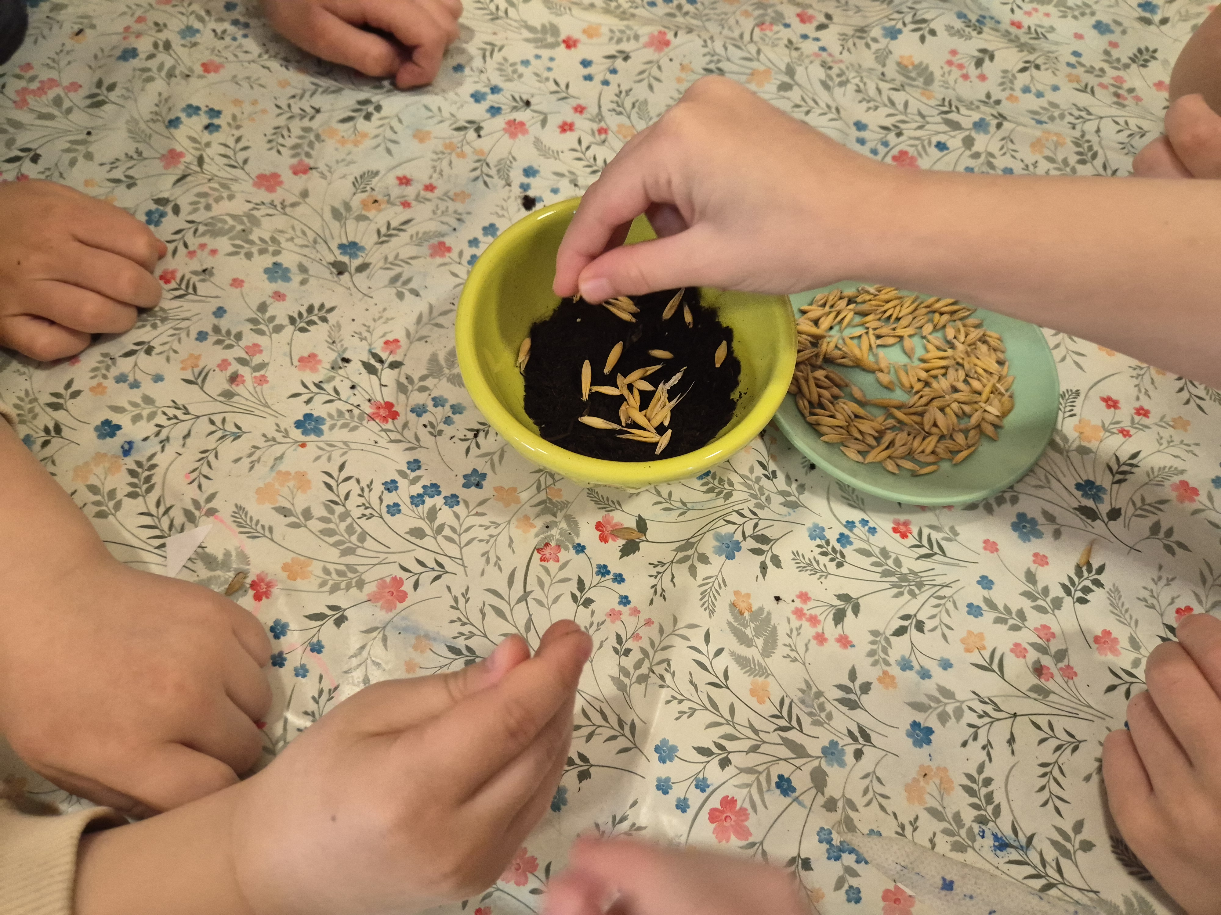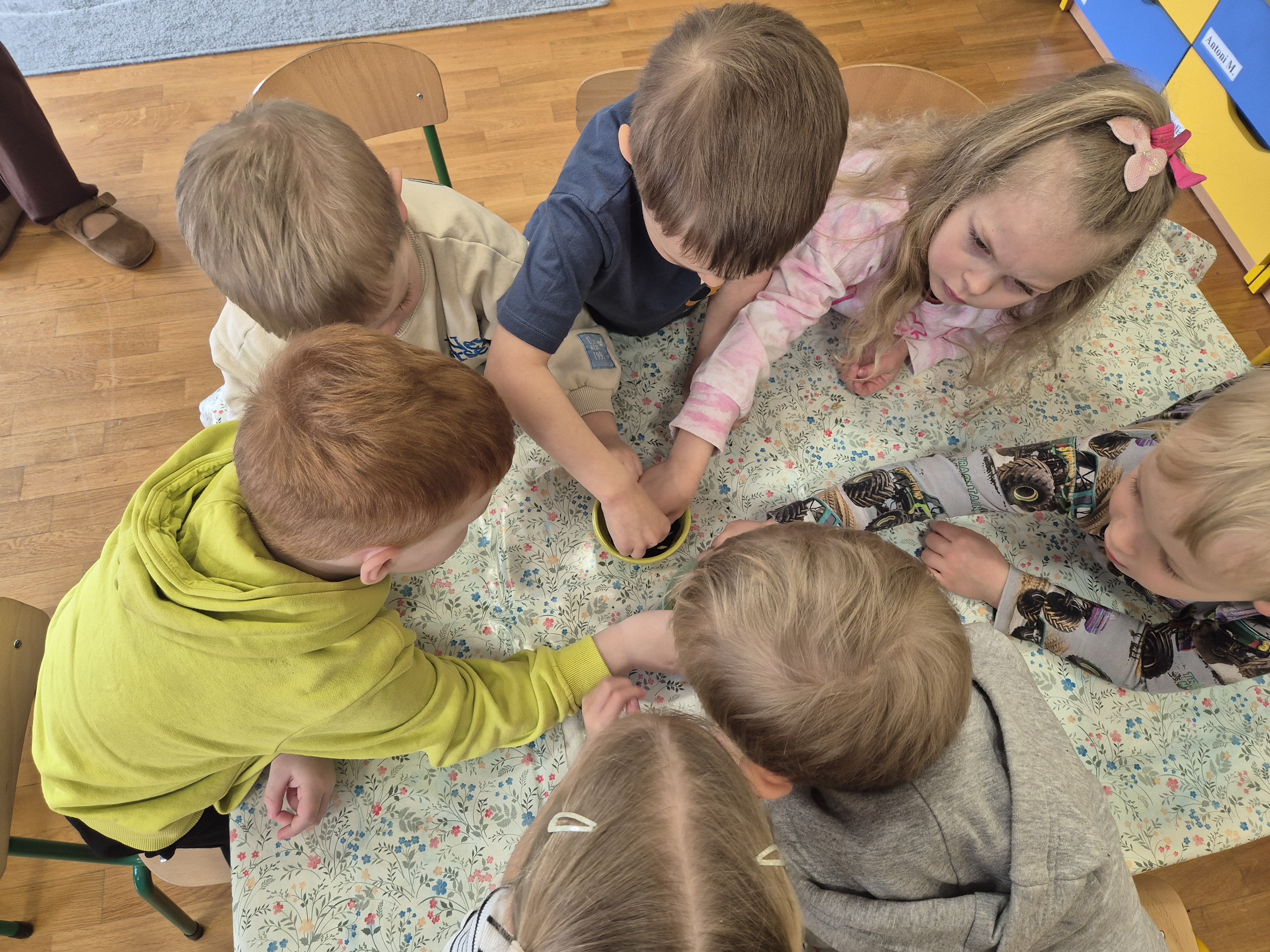 Dzieci z grupy „Pszczółki” z radością zaczęły przygotowania  do Świąt Wielkanocnych, biorąc udział w zajęciach związanych z sianiem owsa. Pracując w małych grupach, wspólnie wysiewały nasiona do przygotowanych doniczek. Była to nie tylko świetna zabawa, ale także cenna lekcja współpracy i odpowiedzialności. Zielony owies stanie się piękną ozdobą wielkanocną.