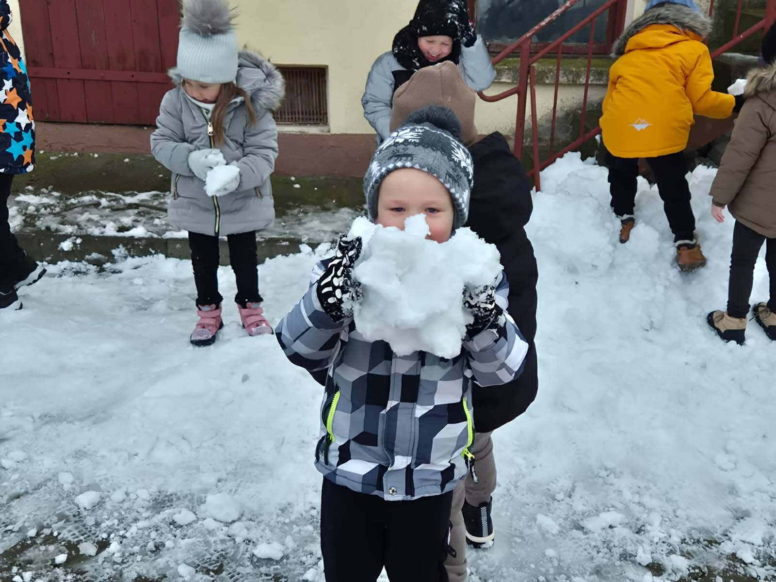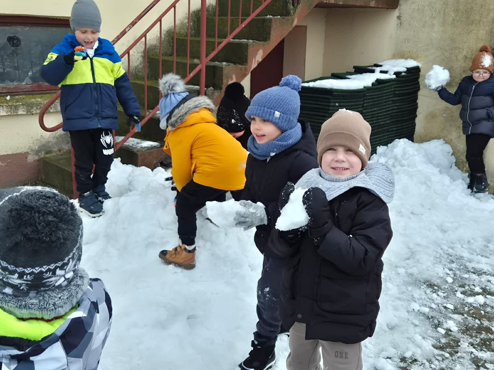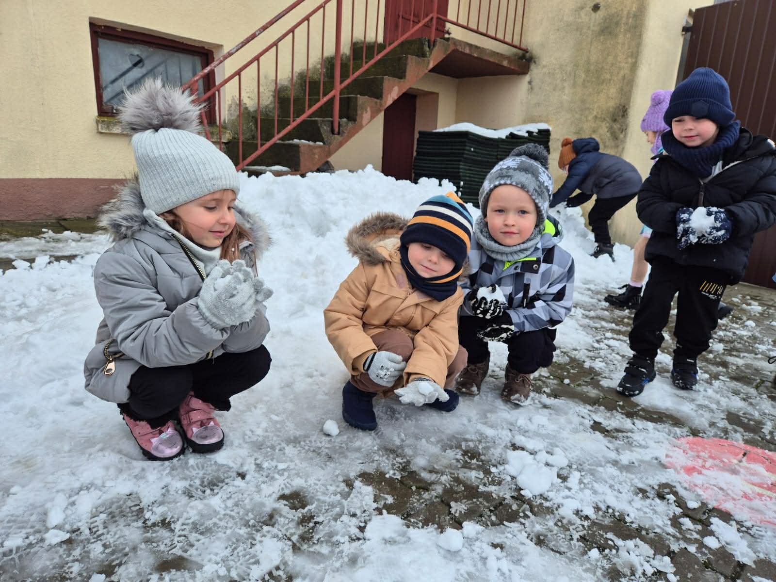 Pierwszy śnieg przyniósł dzieciom mnóstwo radości! Podczas pobytu na świeżym powietrzu przedszkolaki lepiły małe bałwanki, tworzyły śnieżne figurki i odkrywały różne faktury białego puchu. Wspólna zabawa sprzyjała integracji, rozwijała kreatywność i zachęcała do aktywności ruchowej.
