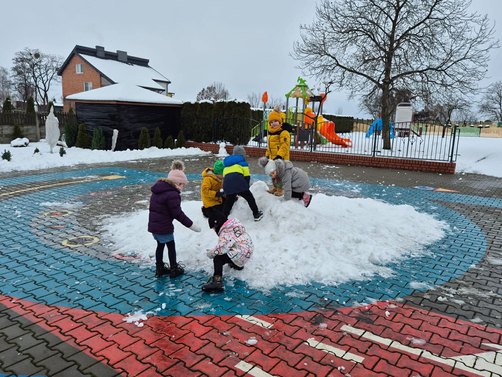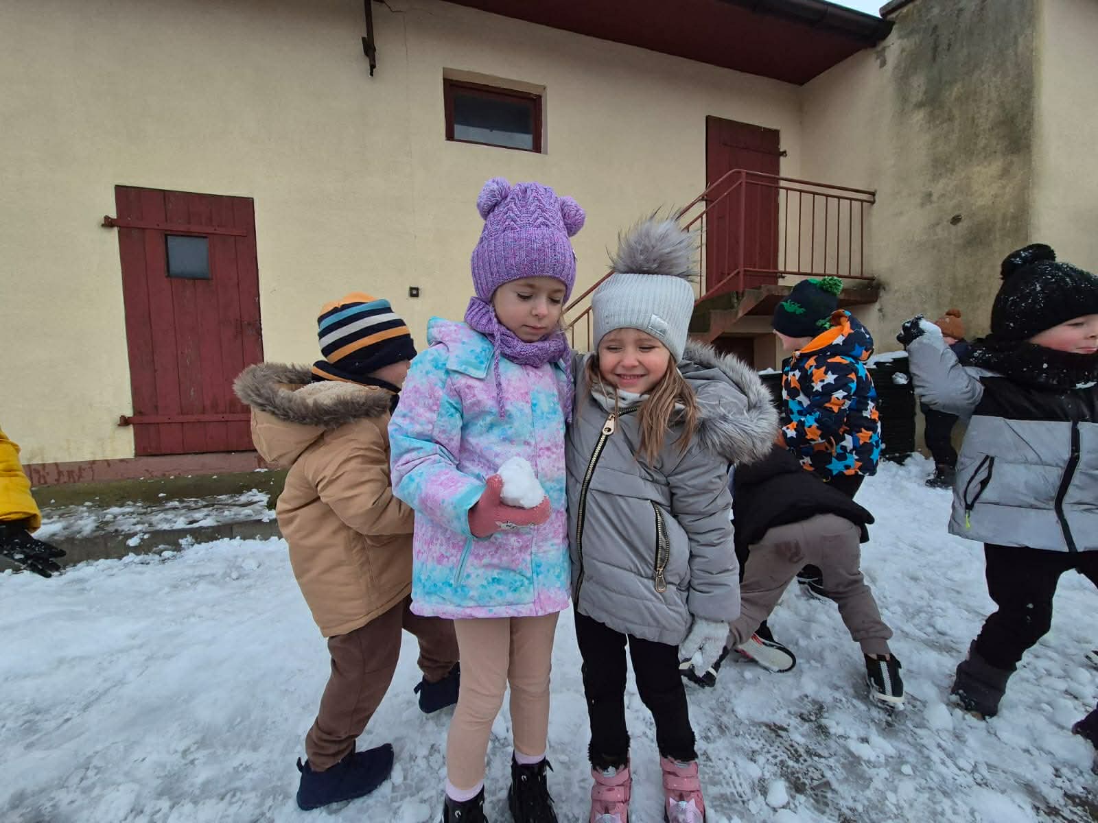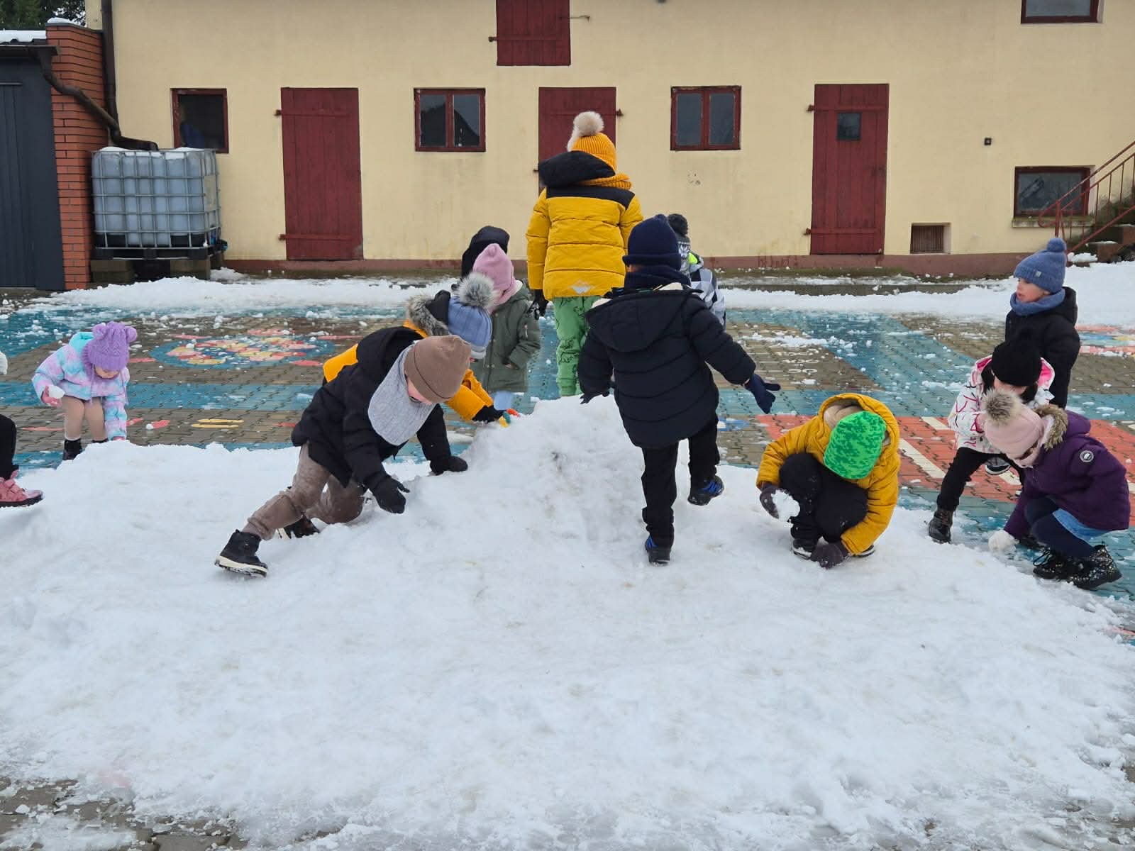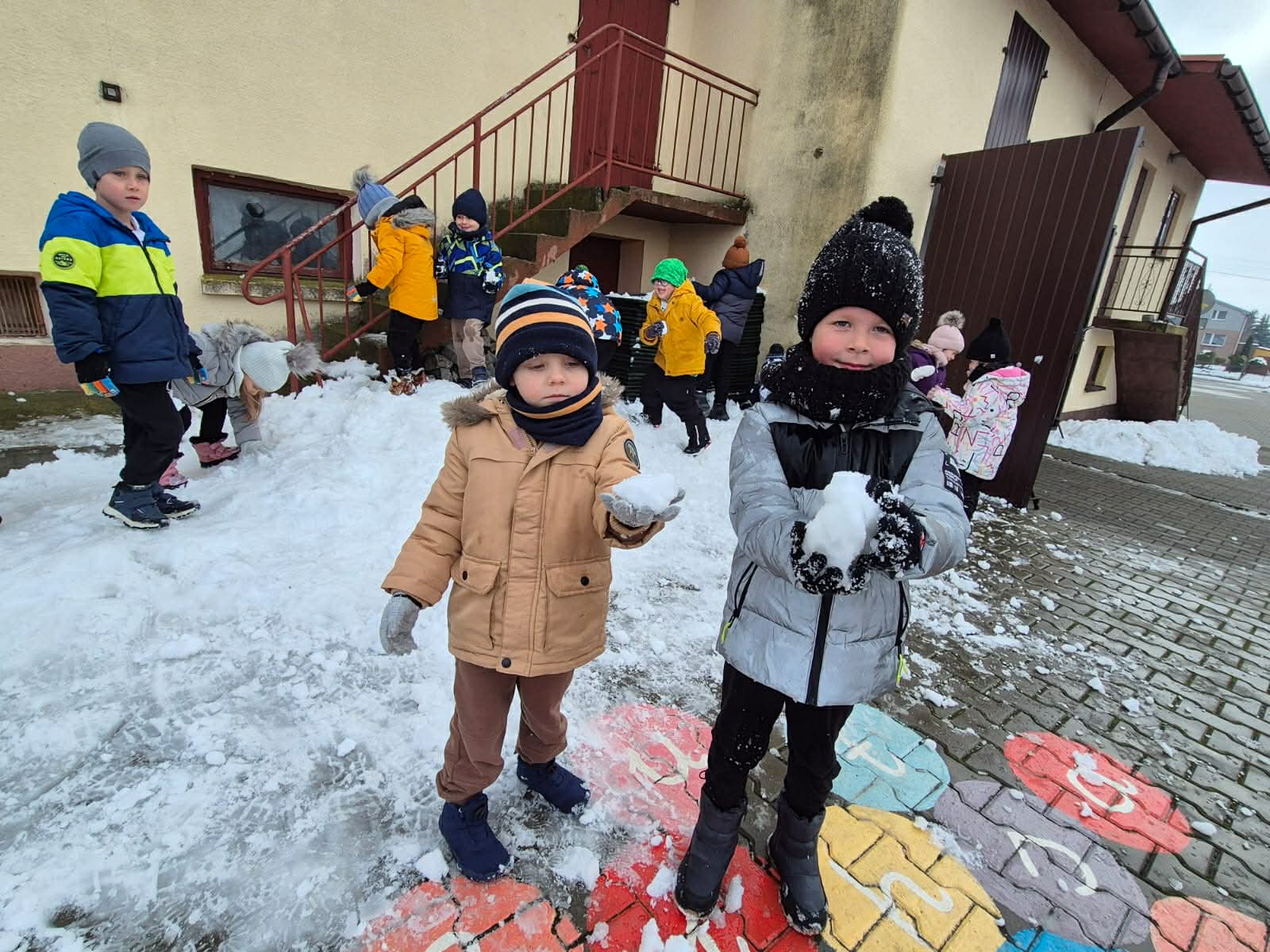 Pierwszy śnieg przyniósł dzieciom mnóstwo radości! Podczas pobytu na świeżym powietrzu przedszkolaki lepiły małe bałwanki, tworzyły śnieżne figurki i odkrywały różne faktury białego puchu. Wspólna zabawa sprzyjała integracji, rozwijała kreatywność i zachęcała do aktywności ruchowej.