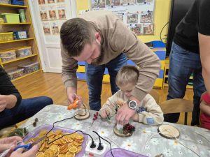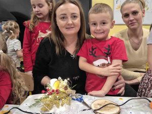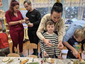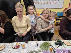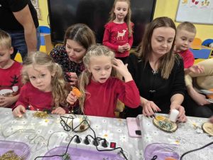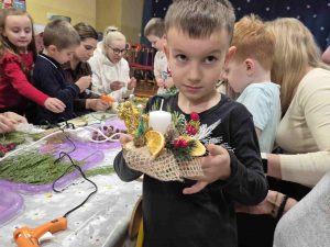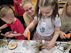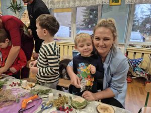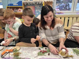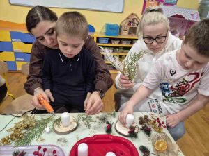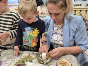 Wczoraj w naszym przedszkolu odbyły się świąteczne warsztaty, podczas których dzieci wraz z rodzicami tworzyli własne stroiki bożonarodzeniowe. Z gałązek, wstążek, kolorowych ozdób powstały piękne i niepowtarzalne dekoracje. Spotkaniu towarzyszyła radosna, ciepła atmosfera, a wspólna praca sprawiła wszystkim wiele satysfakcji.