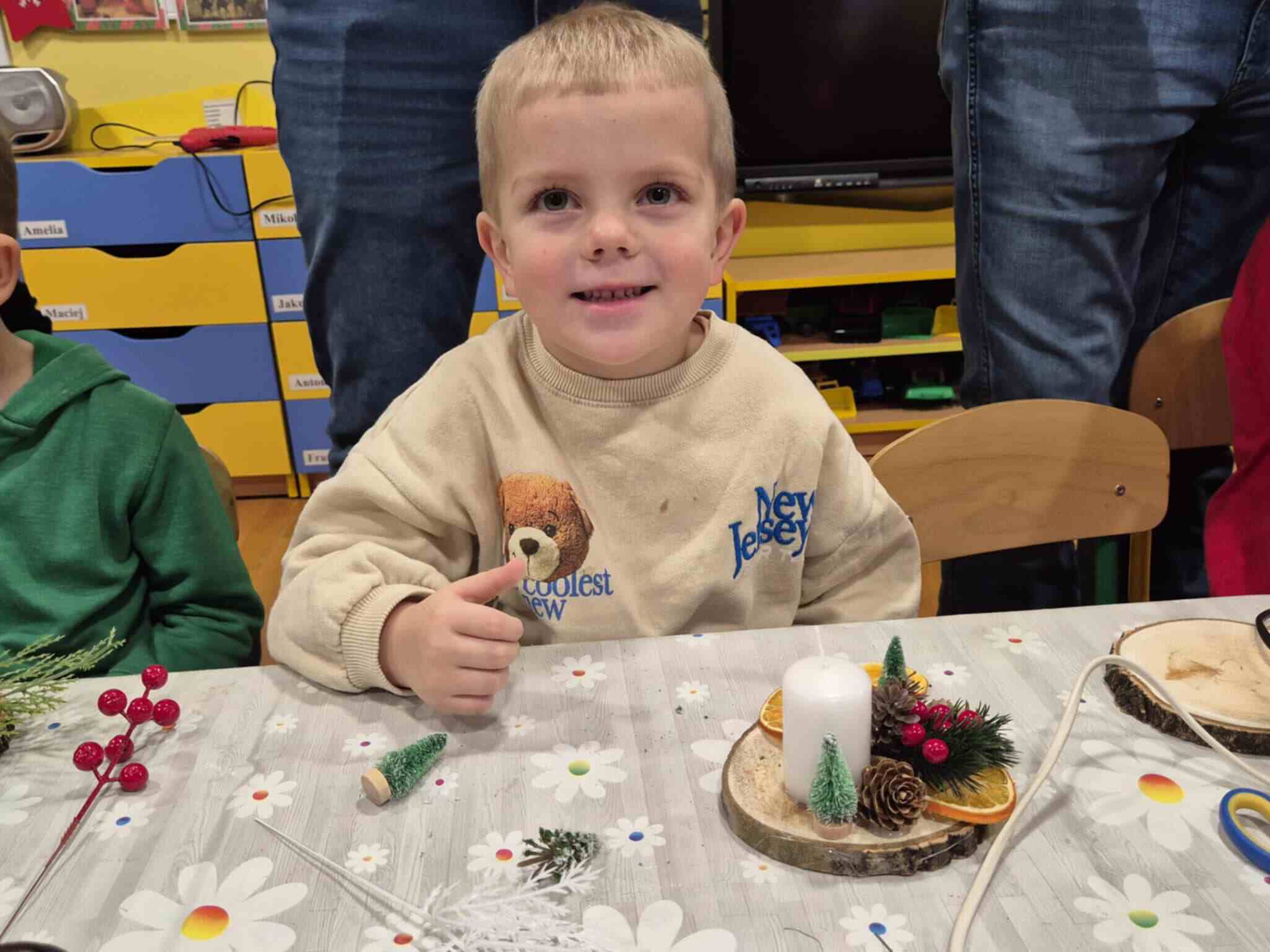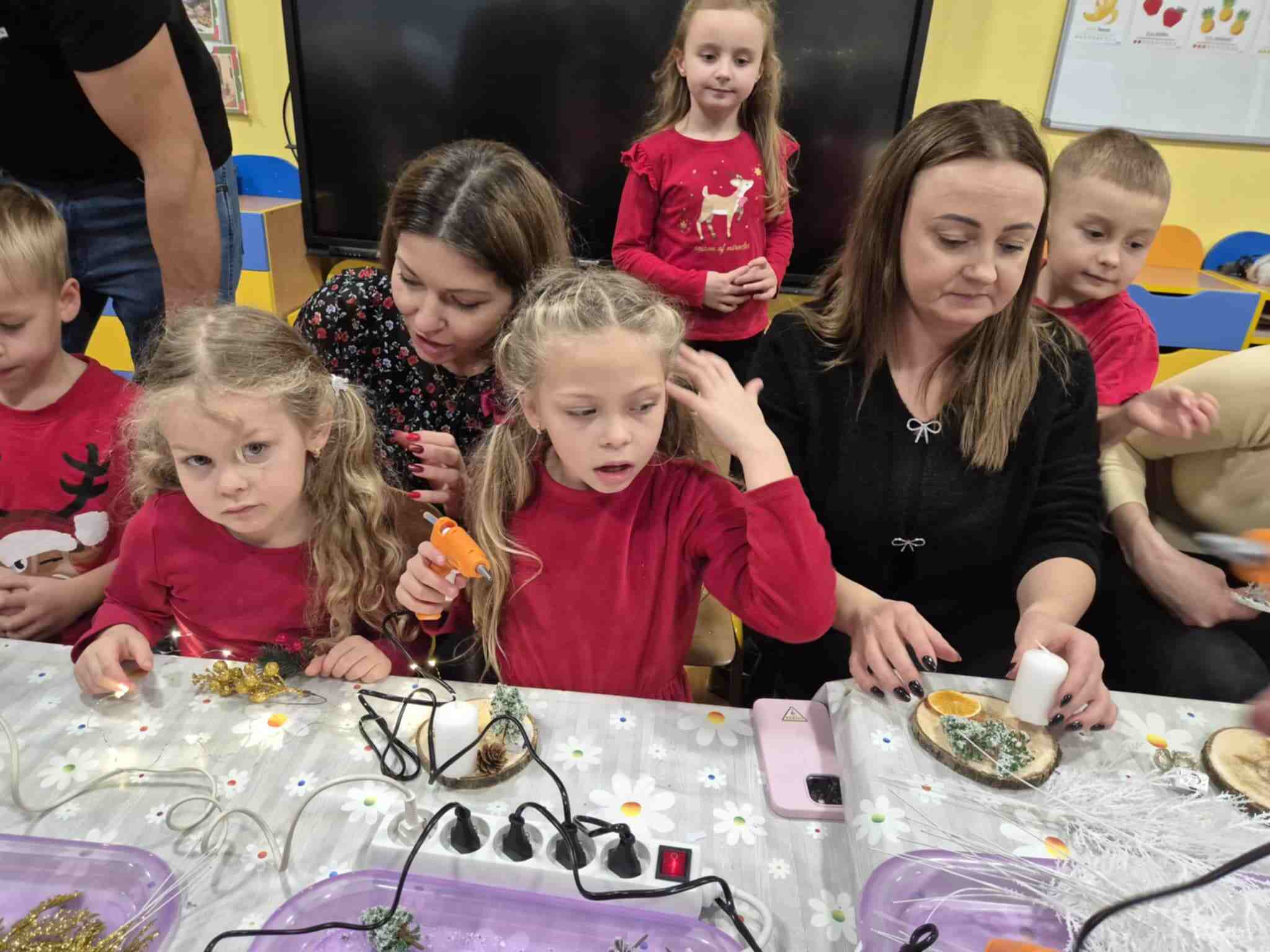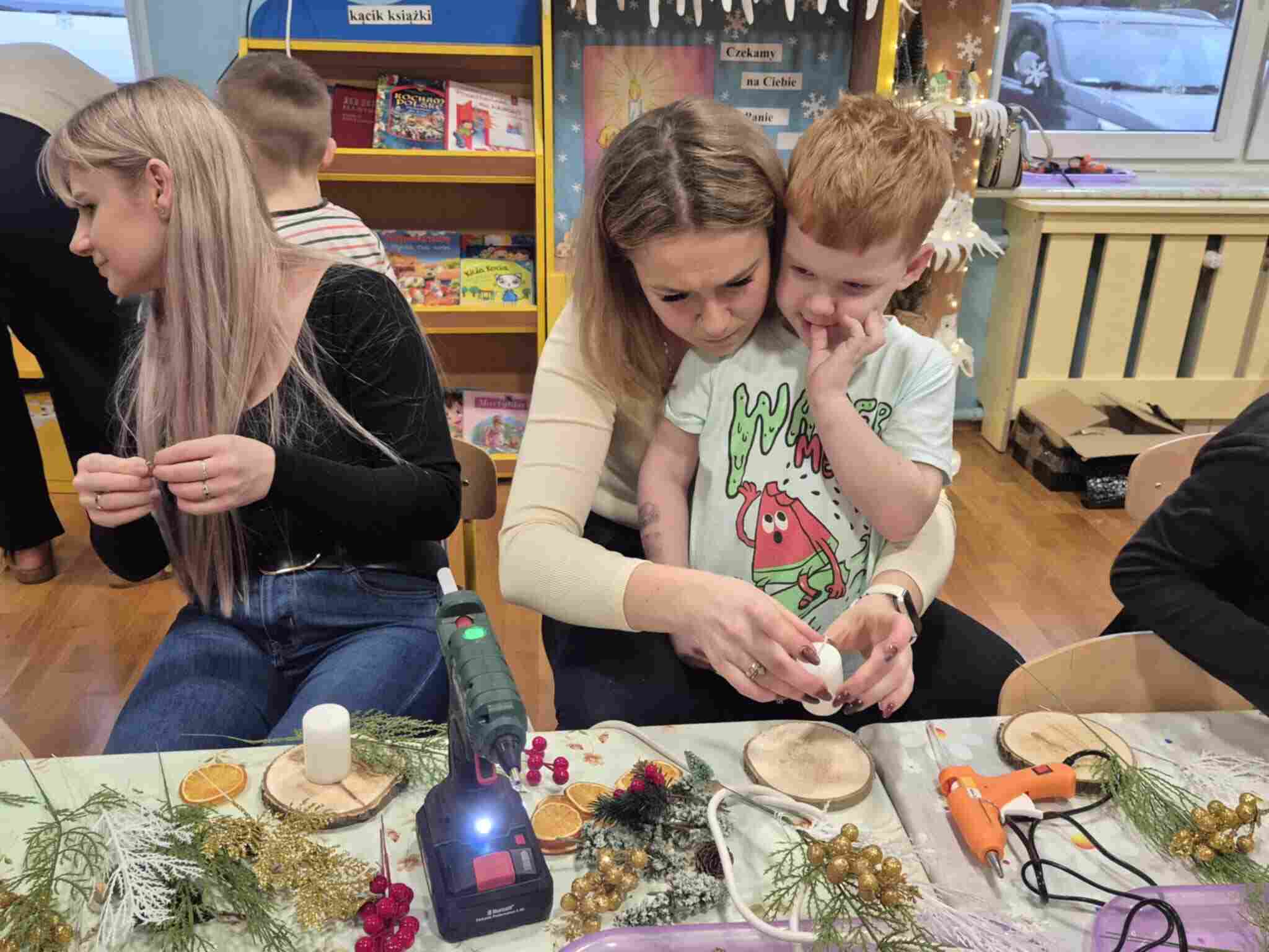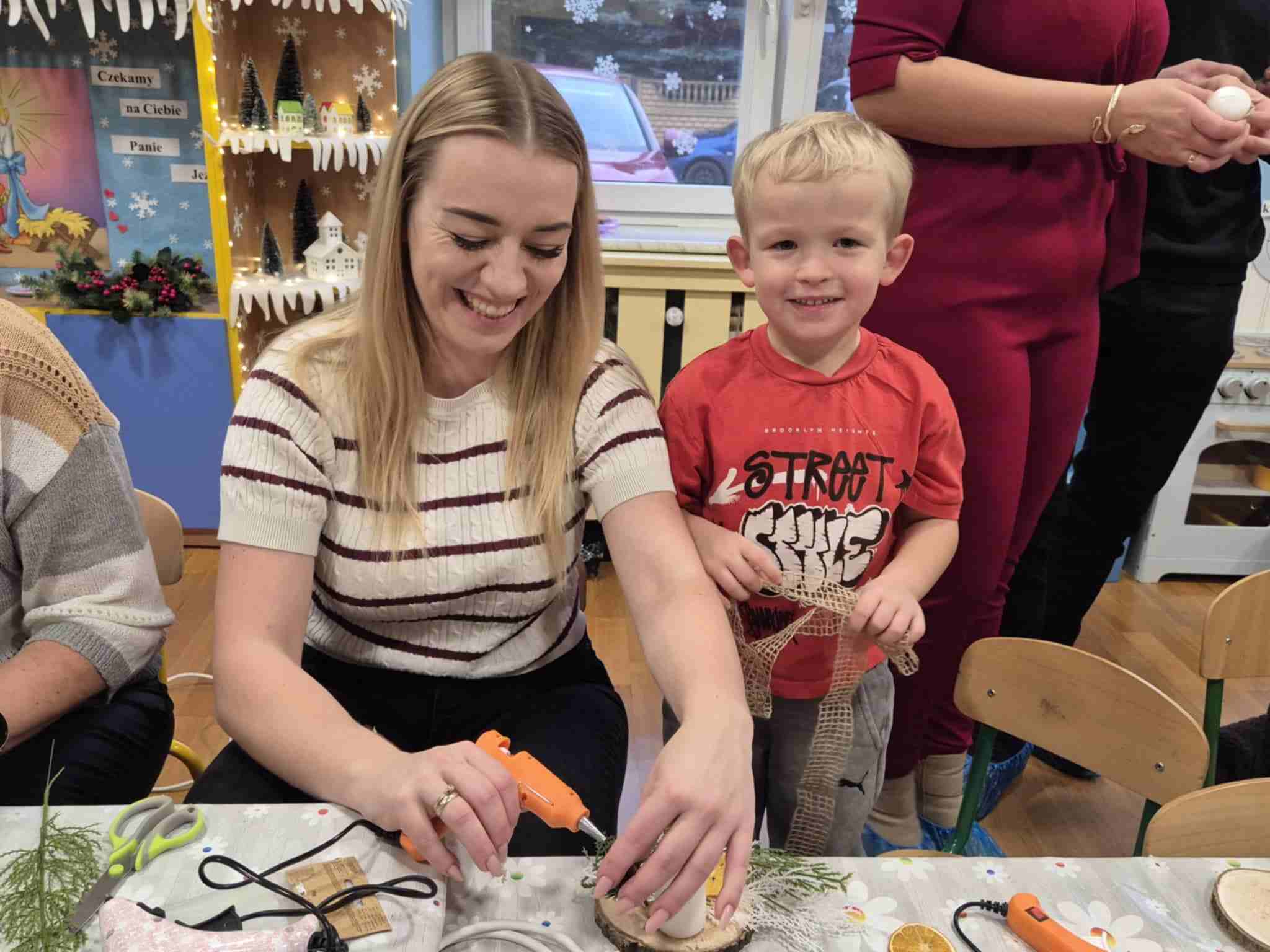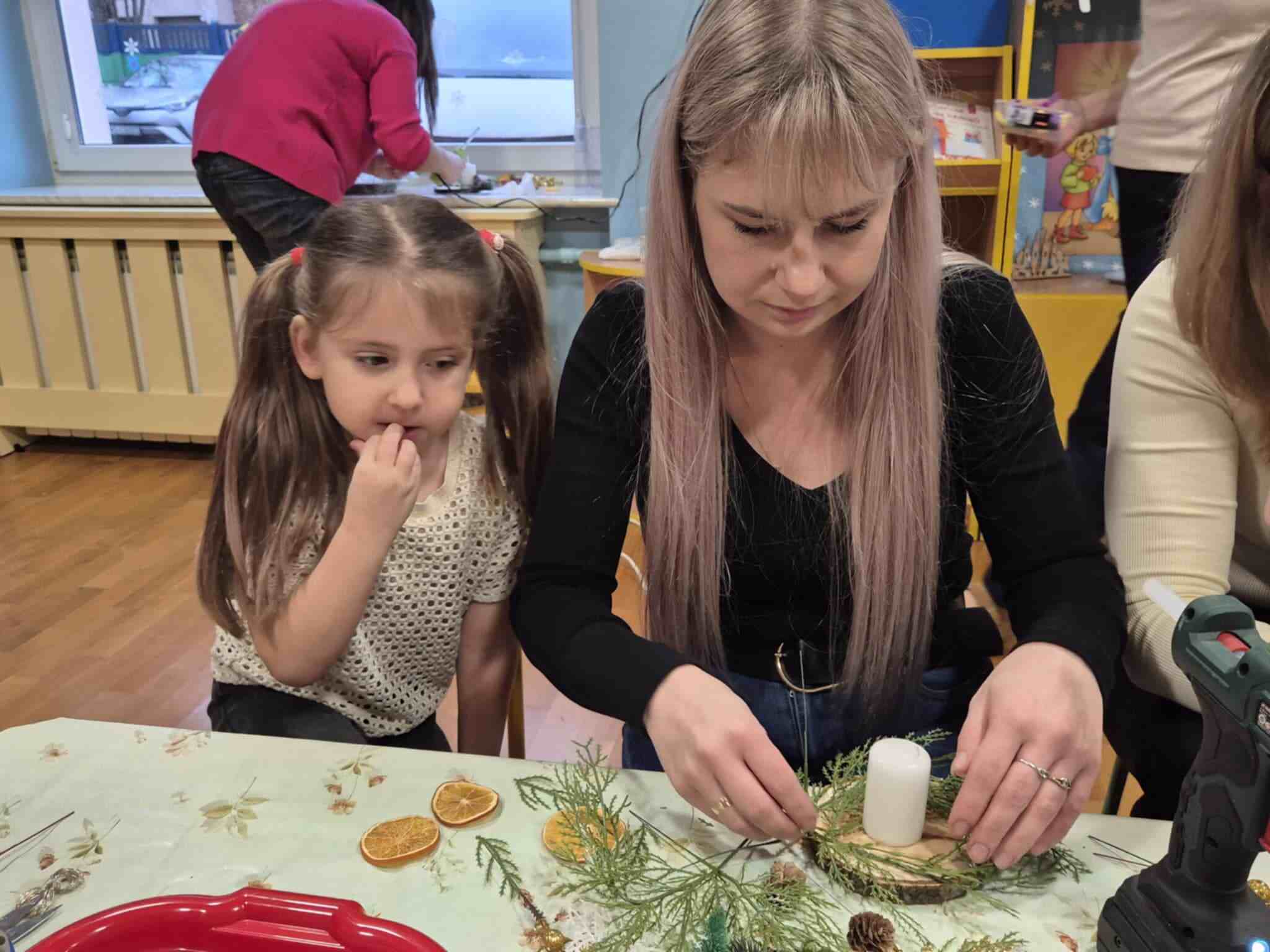 Wczoraj w naszym przedszkolu odbyły się świąteczne warsztaty, podczas których dzieci wraz z rodzicami tworzyli własne stroiki bożonarodzeniowe. Z gałązek, wstążek, kolorowych ozdób powstały piękne i niepowtarzalne dekoracje. Spotkaniu towarzyszyła radosna, ciepła atmosfera, a wspólna praca sprawiła wszystkim wiele satysfakcji.