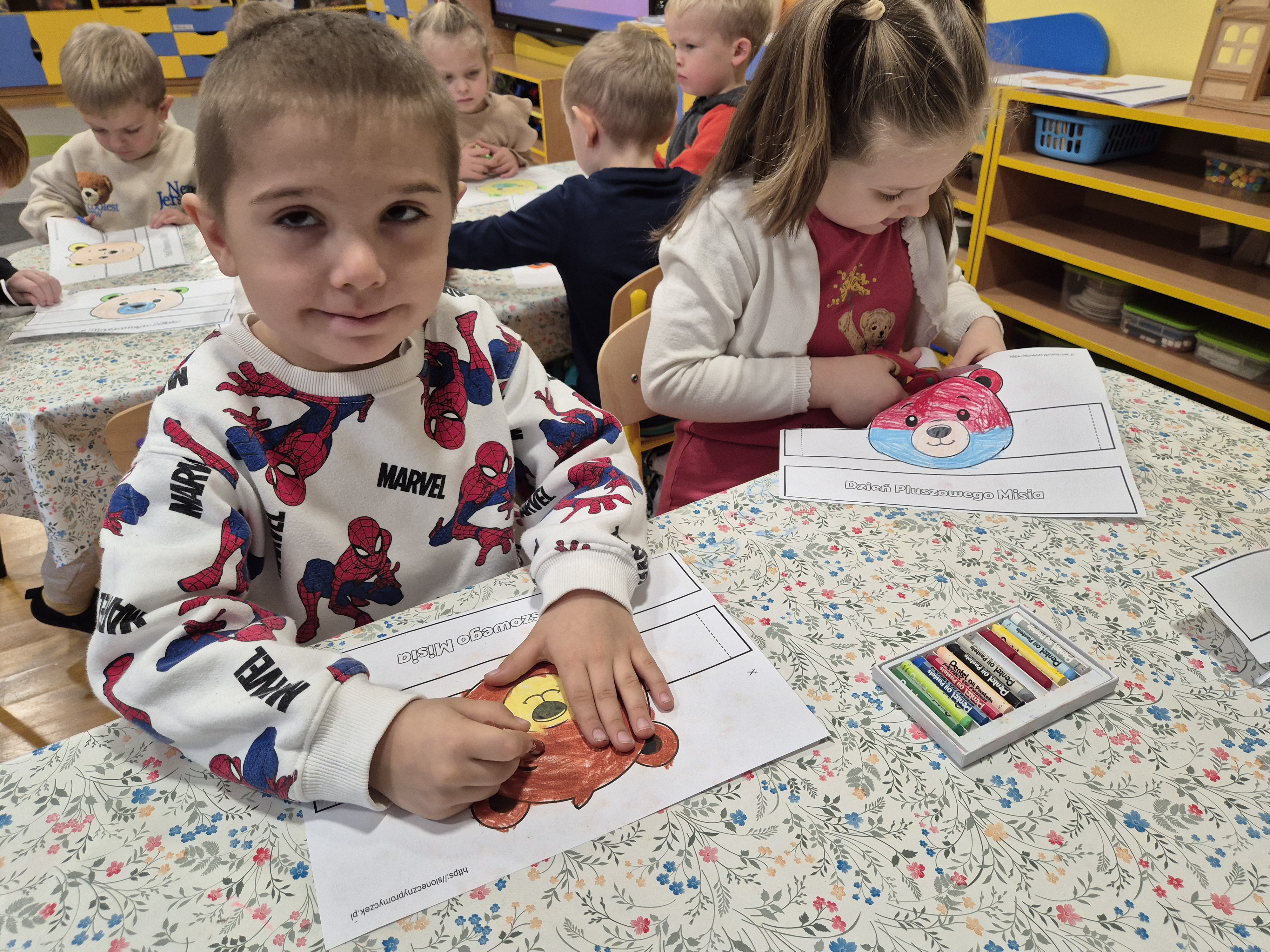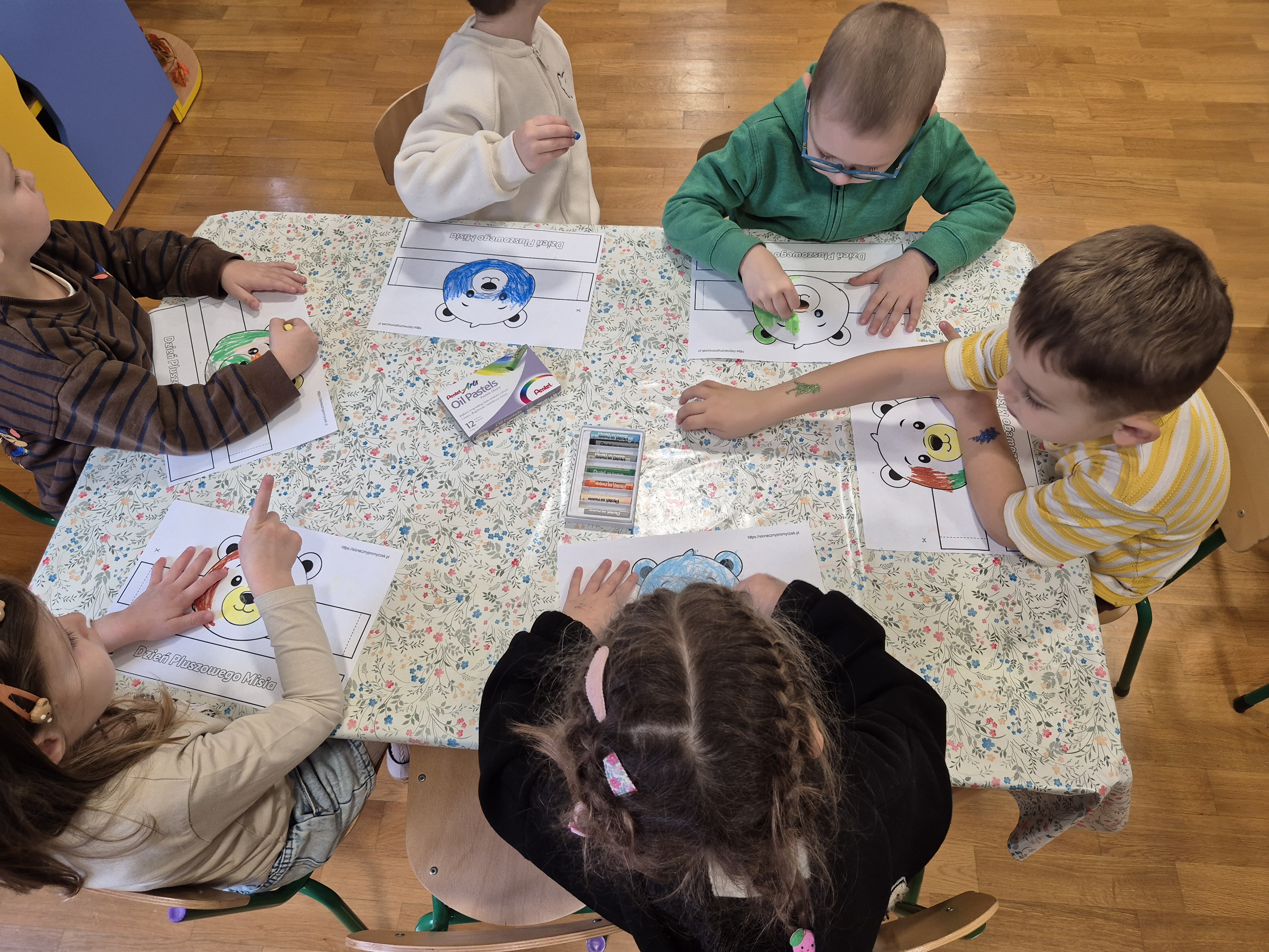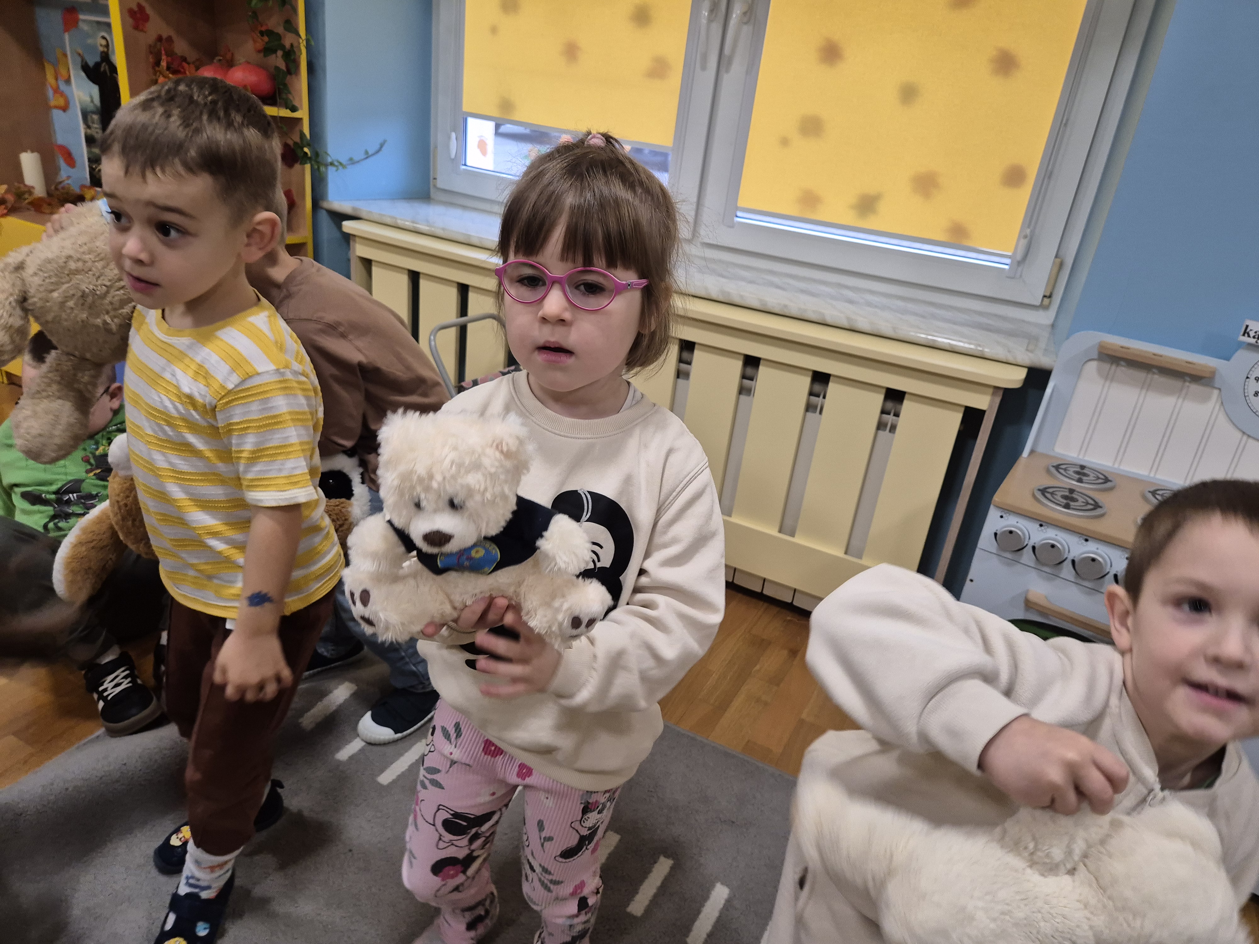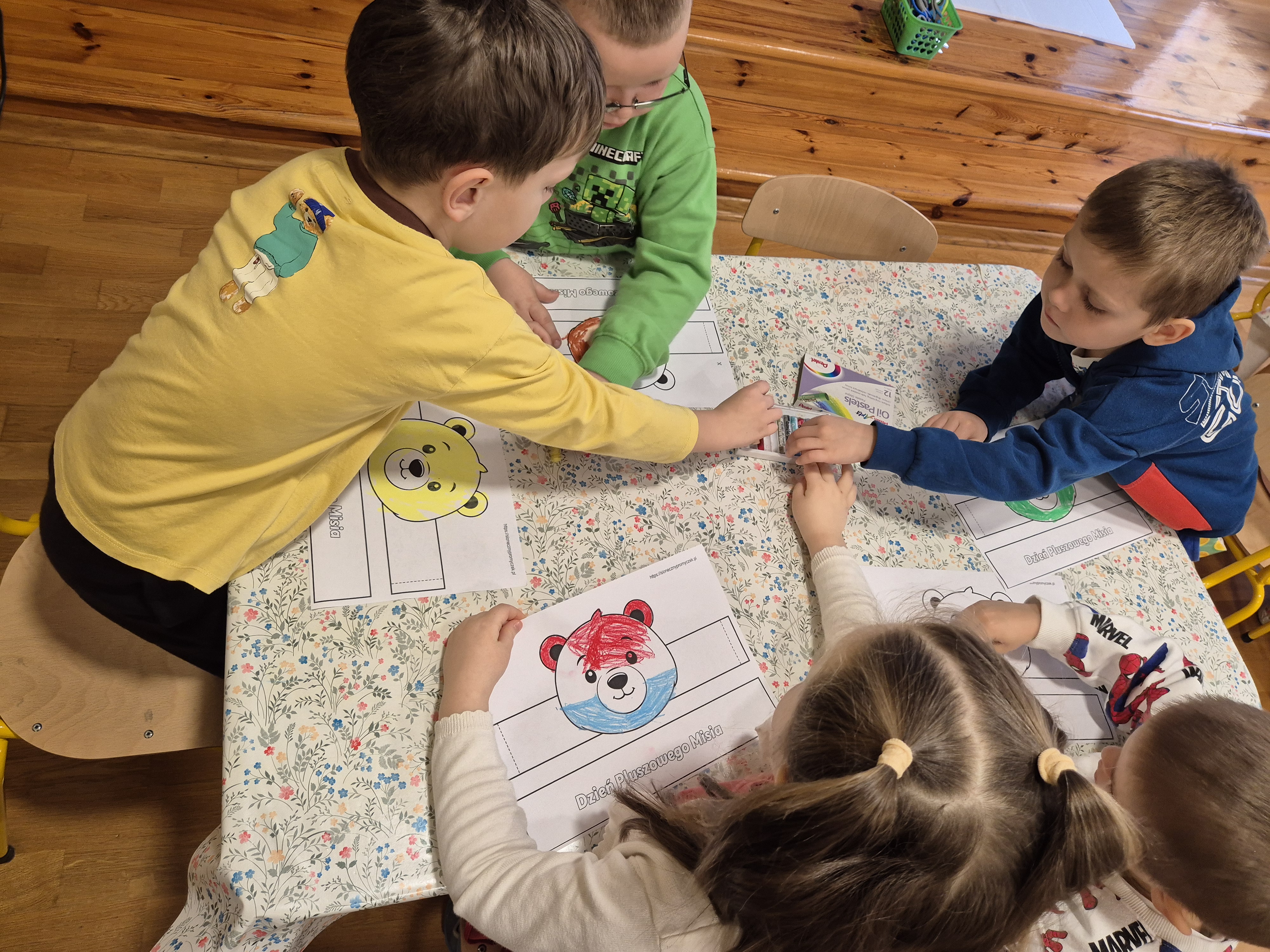 We wtorek całe przedszkole obchodziło Święto Pluszowego Misia. Pszczółki tańczyły przy wesołych piosenkach o misiach i brały udział w różnorodnych zabawach ruchowych. Wspólnie wykonały także kolorowe opaski z motywem misia, a na koniec pozowały do pamiątkowych zdjęć w naszej misiowej fotobudce. To był pełen radości i uśmiechu dzień!