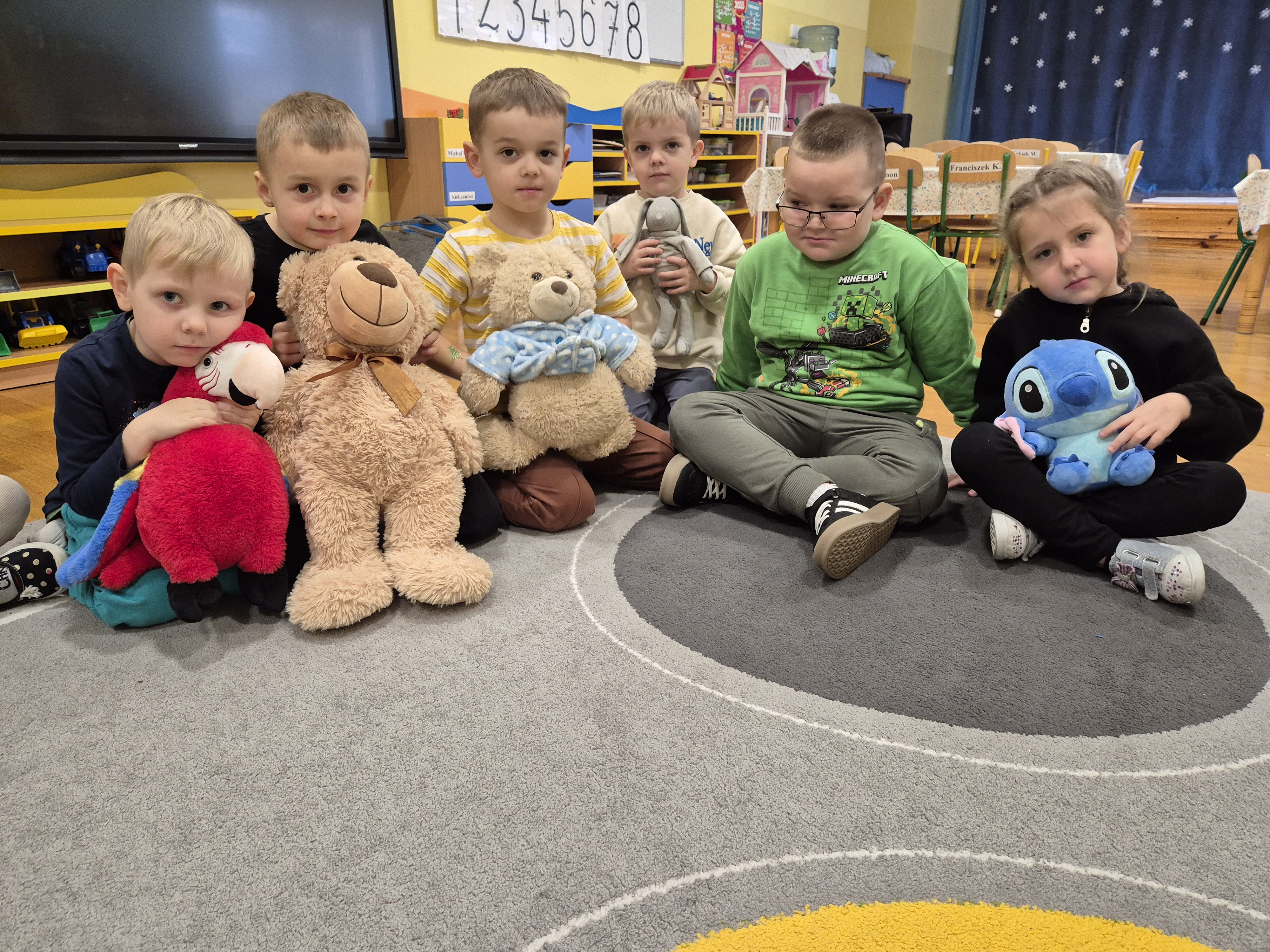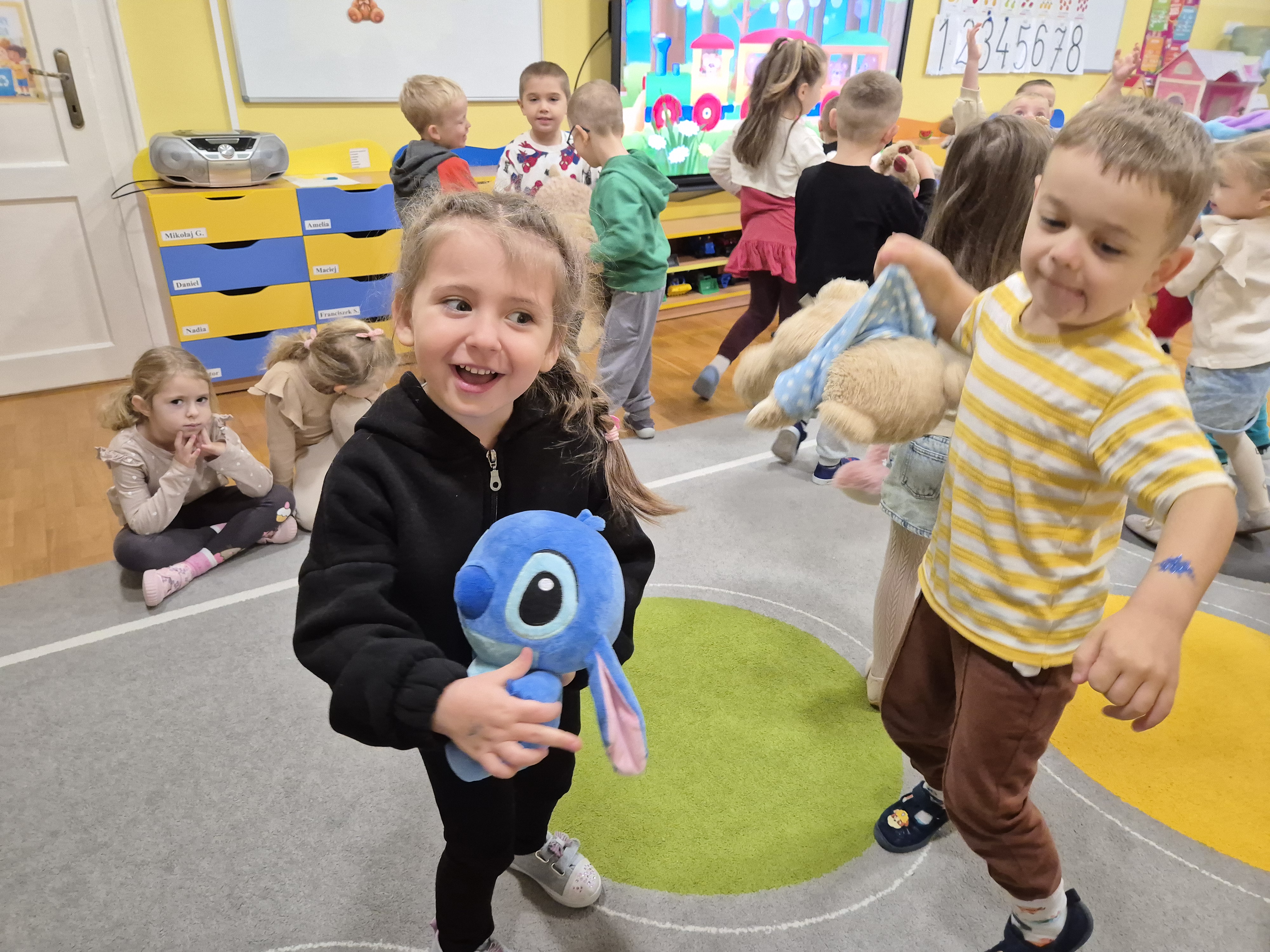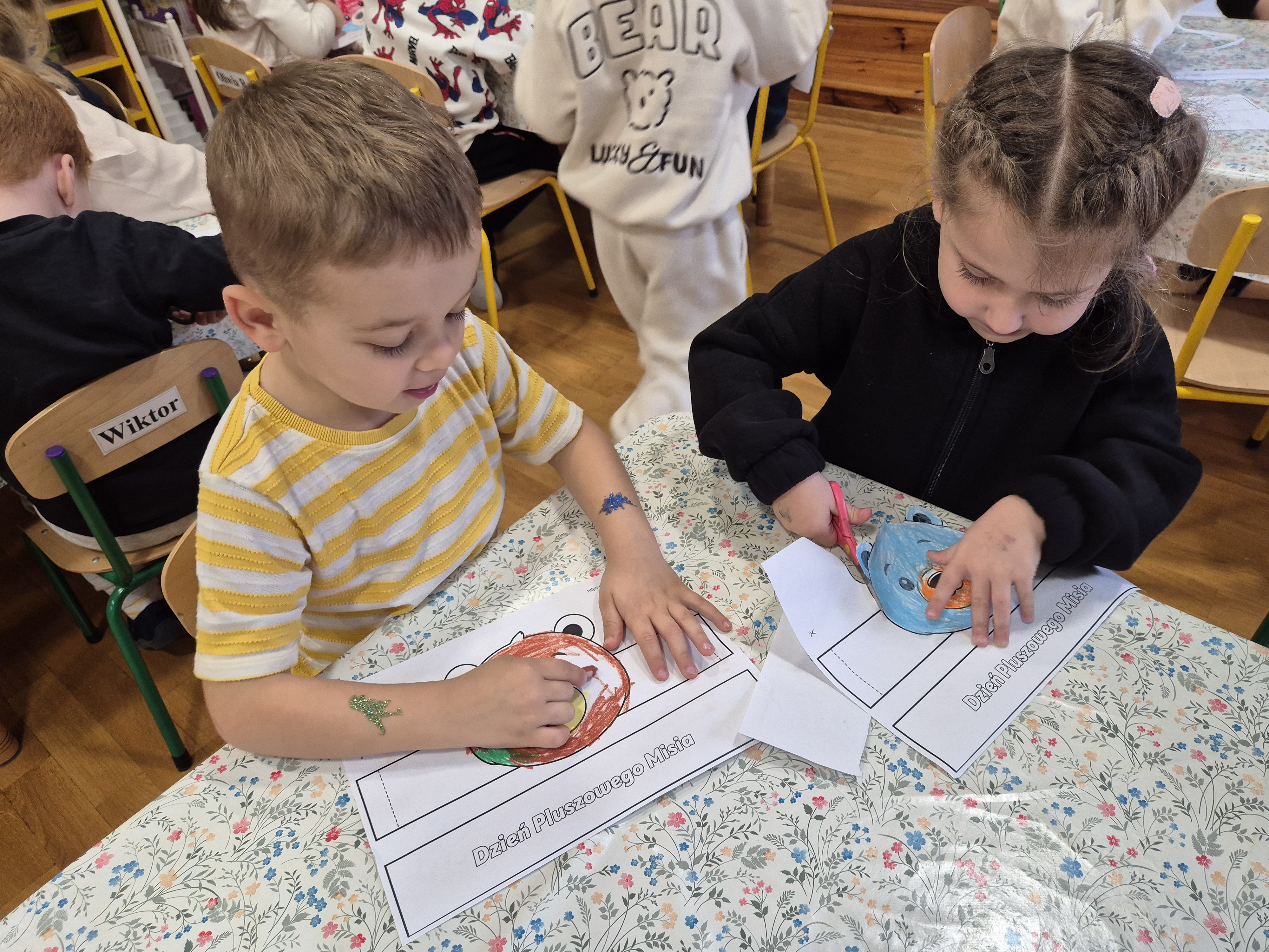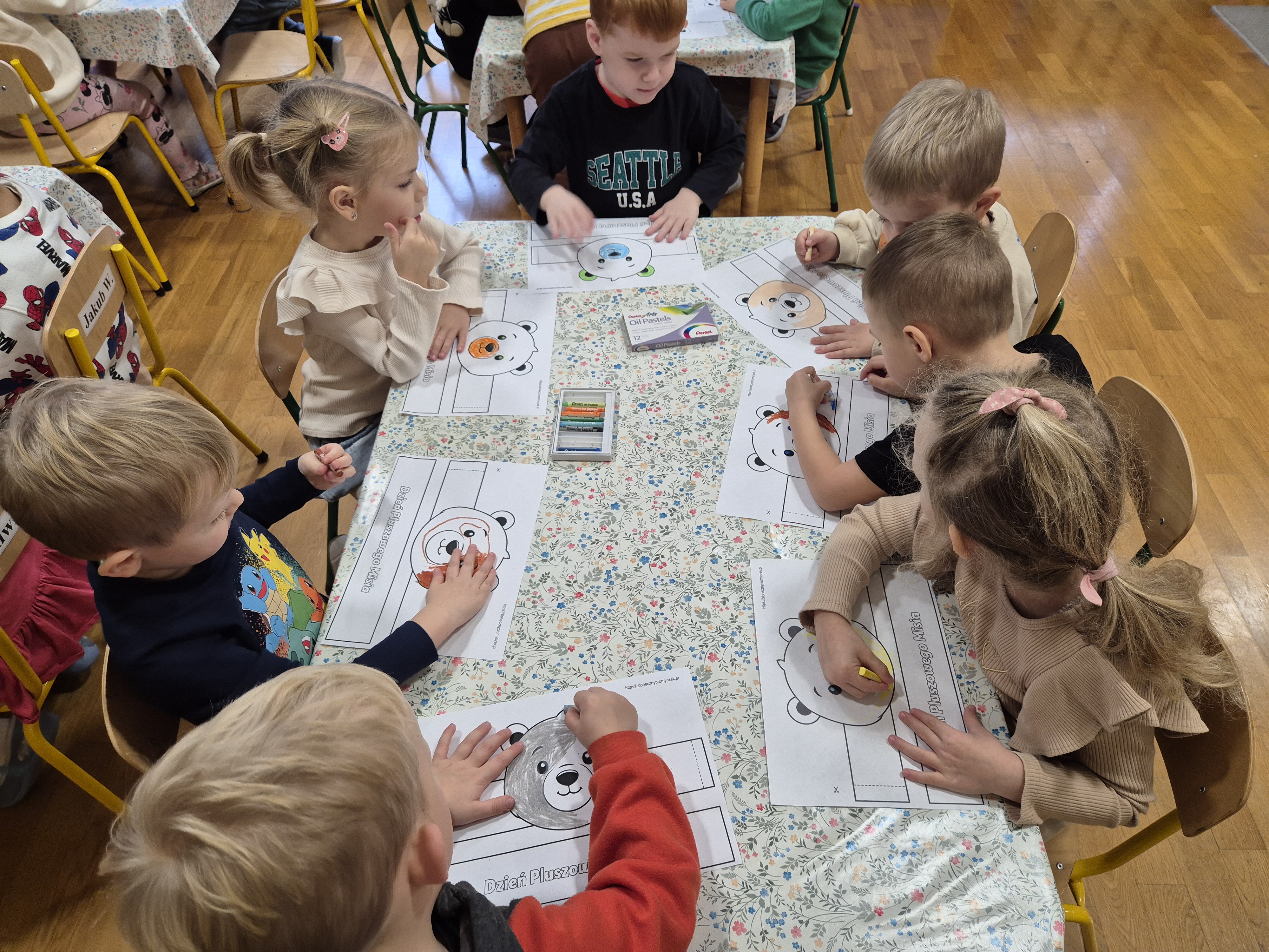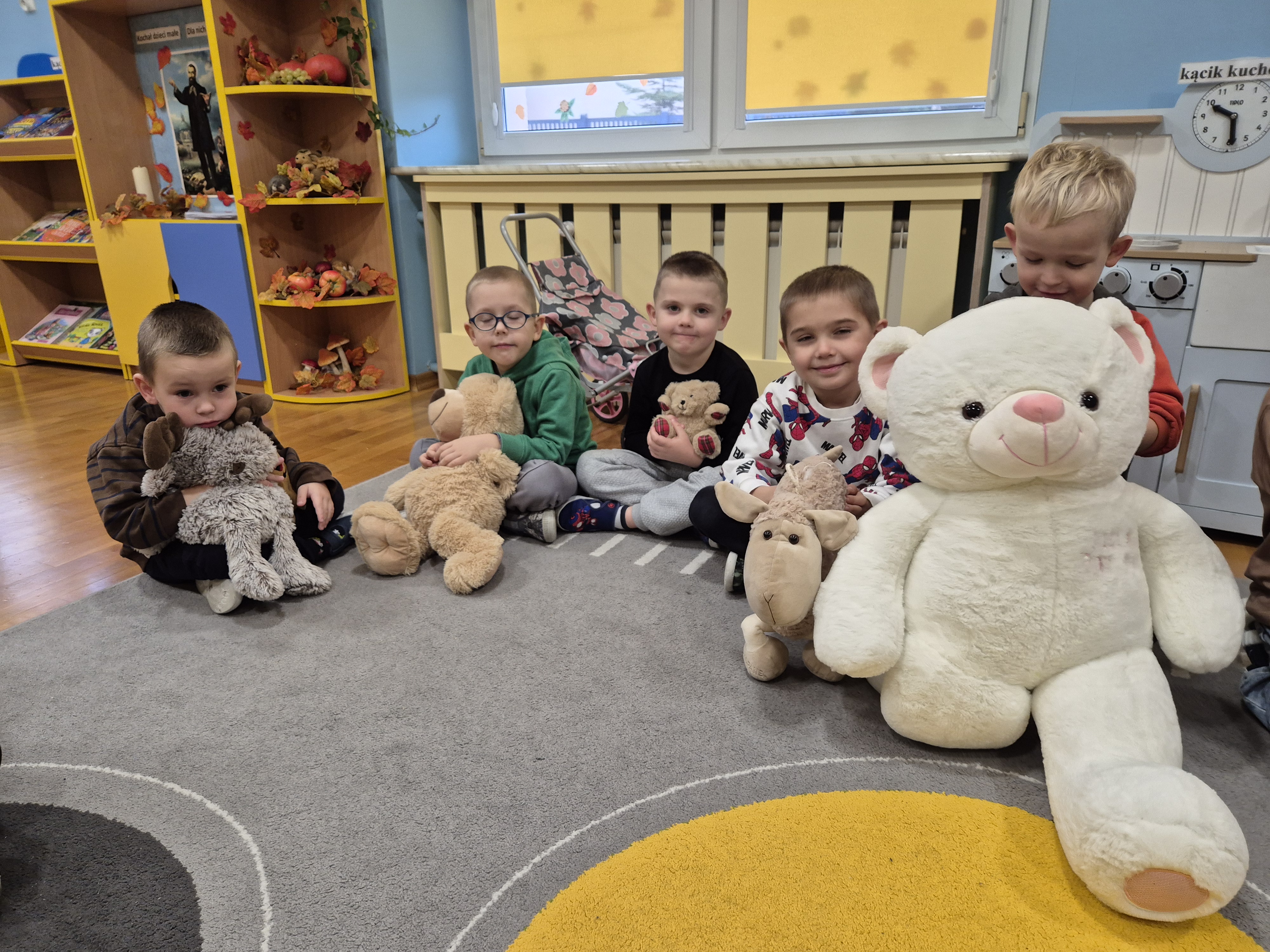 We wtorek całe przedszkole obchodziło Święto Pluszowego Misia. Pszczółki tańczyły przy wesołych piosenkach o misiach i brały udział w różnorodnych zabawach ruchowych. Wspólnie wykonały także kolorowe opaski z motywem misia, a na koniec pozowały do pamiątkowych zdjęć w naszej misiowej fotobudce. To był pełen radości i uśmiechu dzień!