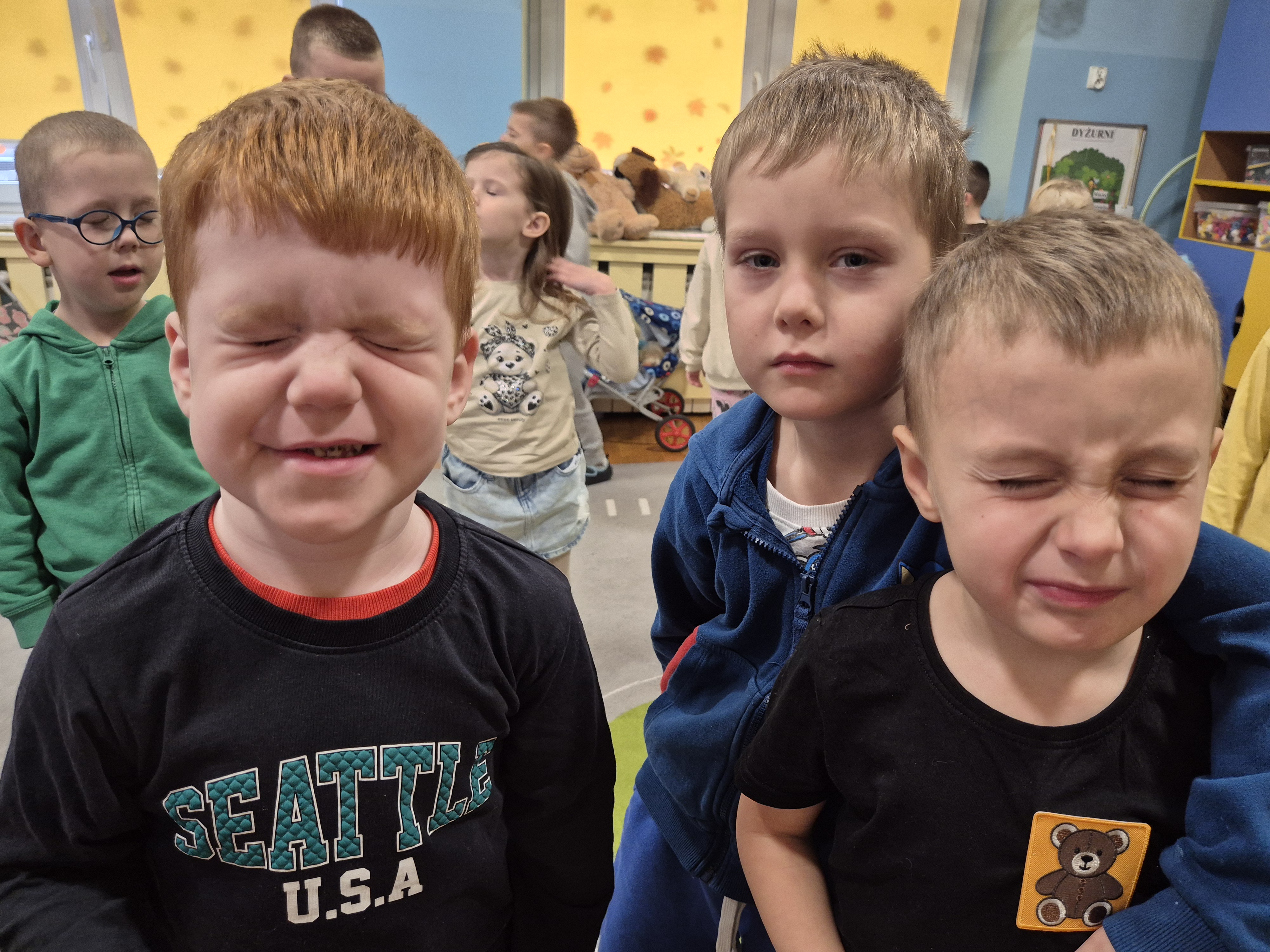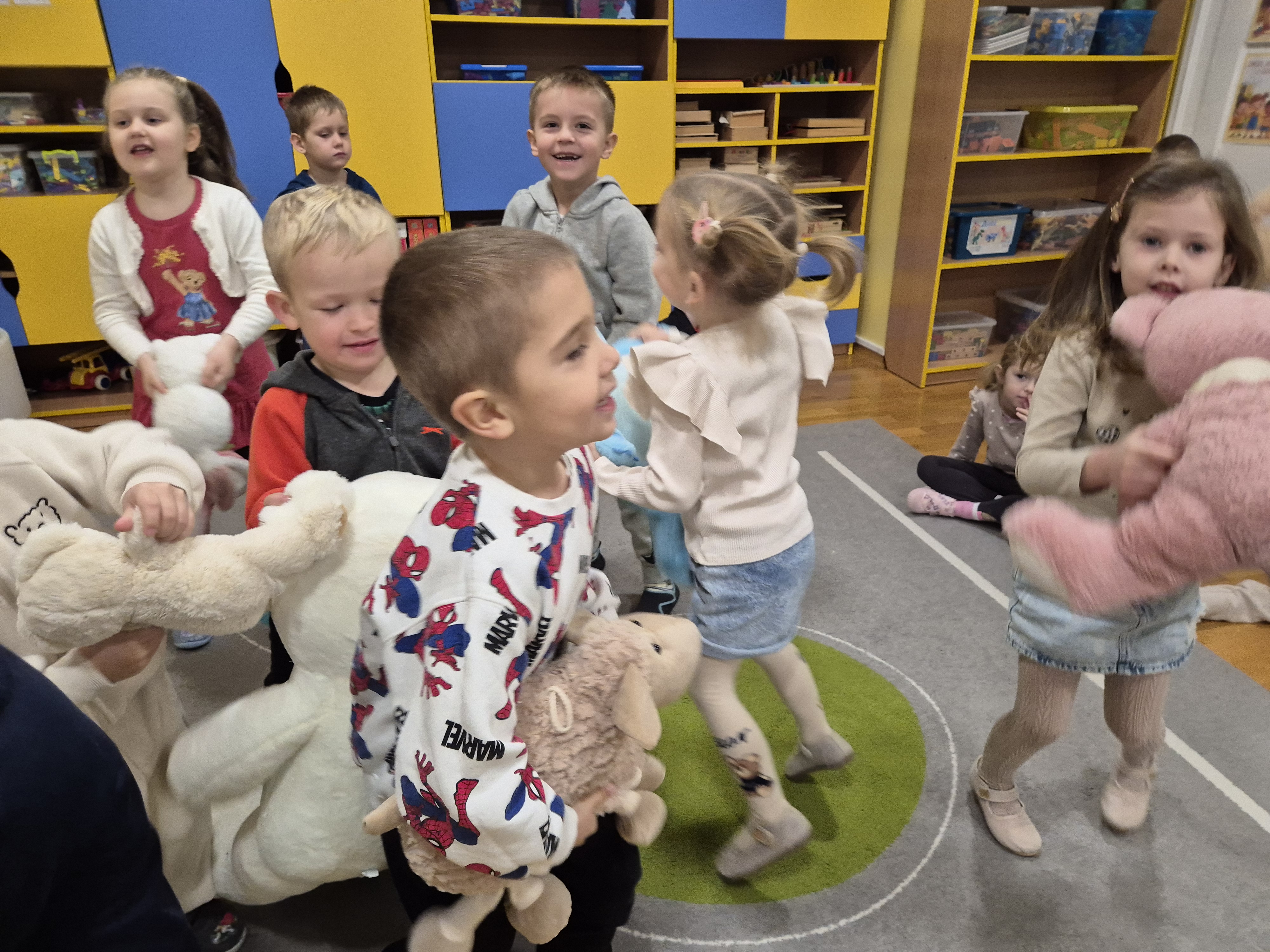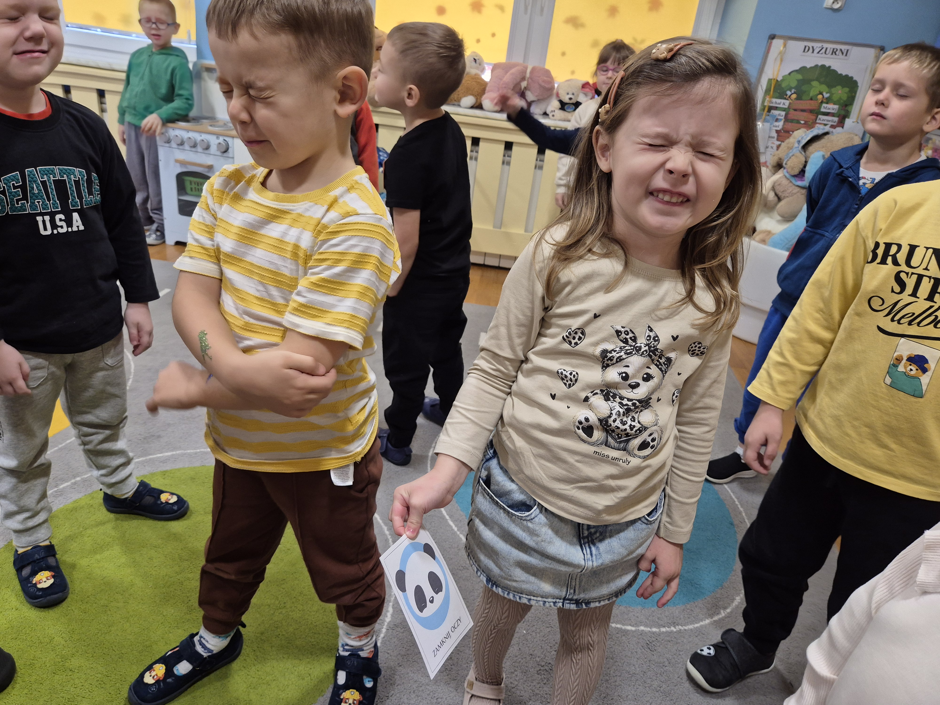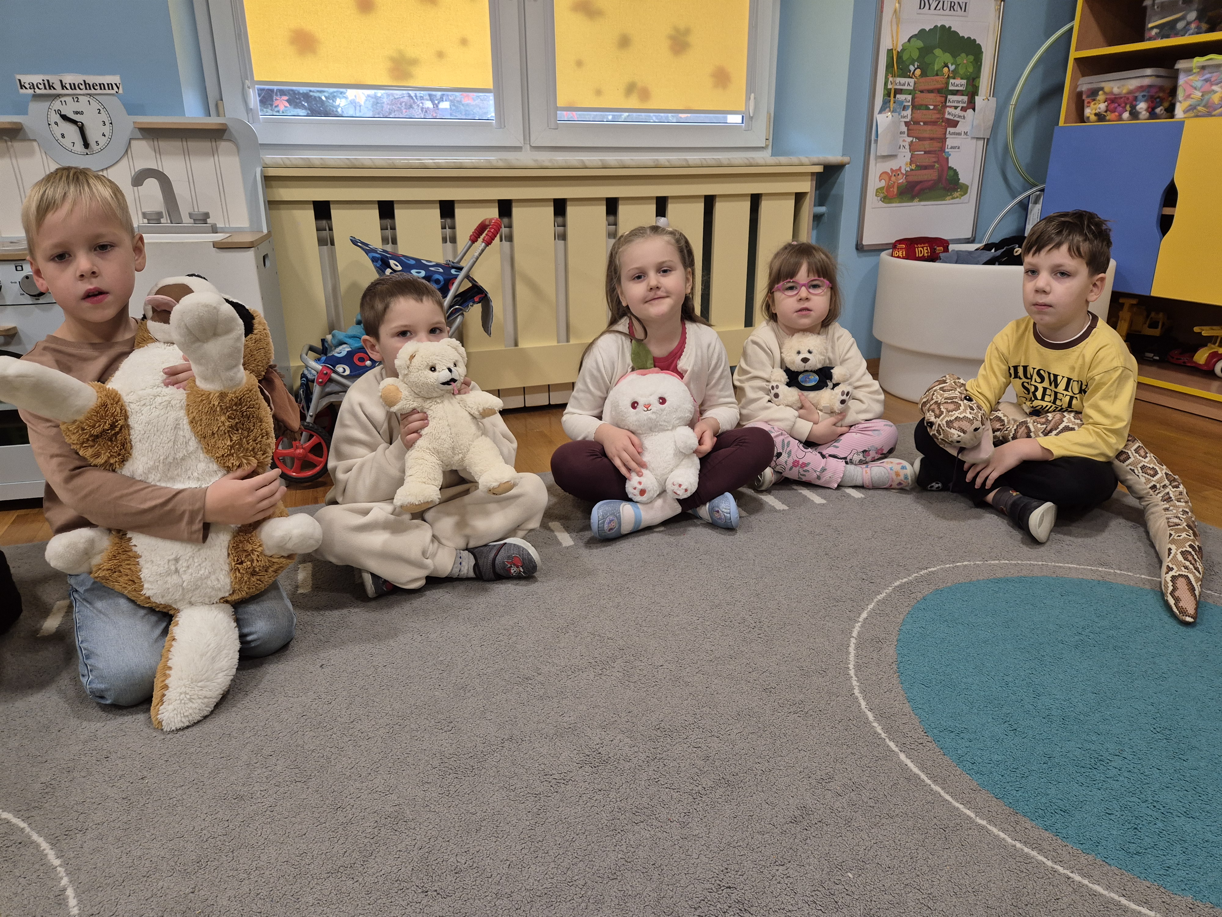 We wtorek całe przedszkole obchodziło Święto Pluszowego Misia. Pszczółki tańczyły przy wesołych piosenkach o misiach i brały udział w różnorodnych zabawach ruchowych. Wspólnie wykonały także kolorowe opaski z motywem misia, a na koniec pozowały do pamiątkowych zdjęć w naszej misiowej fotobudce. To był pełen radości i uśmiechu dzień!