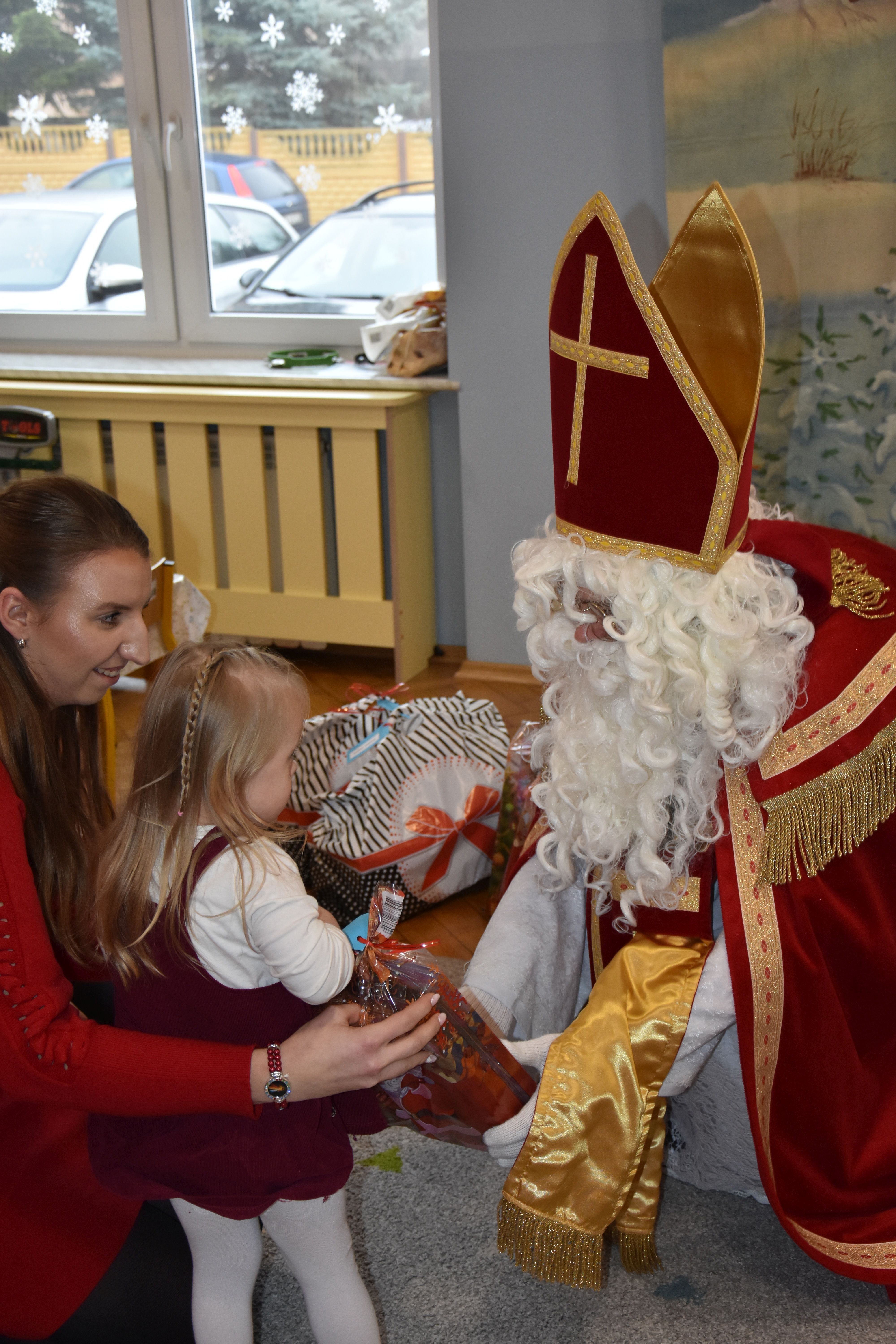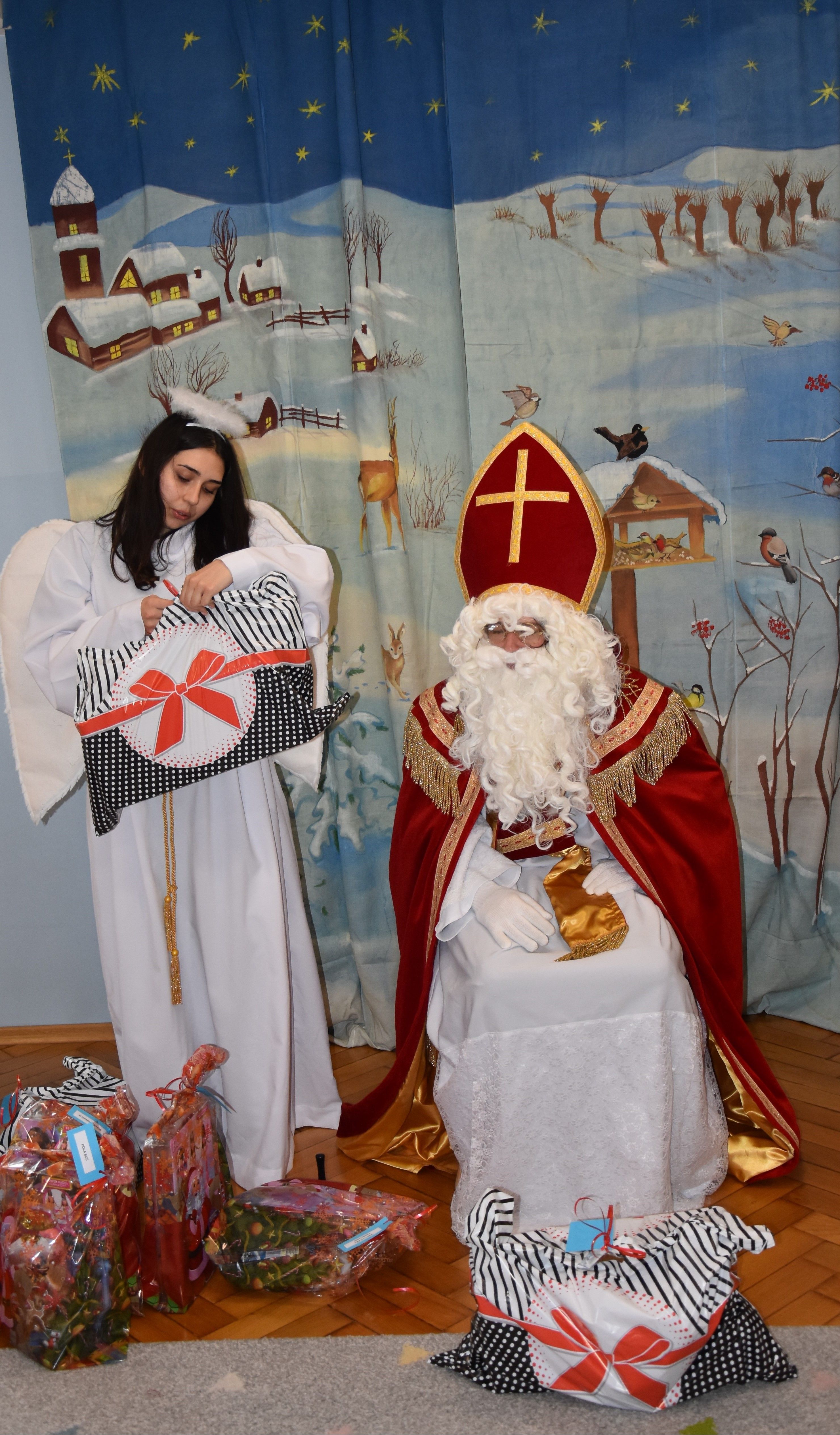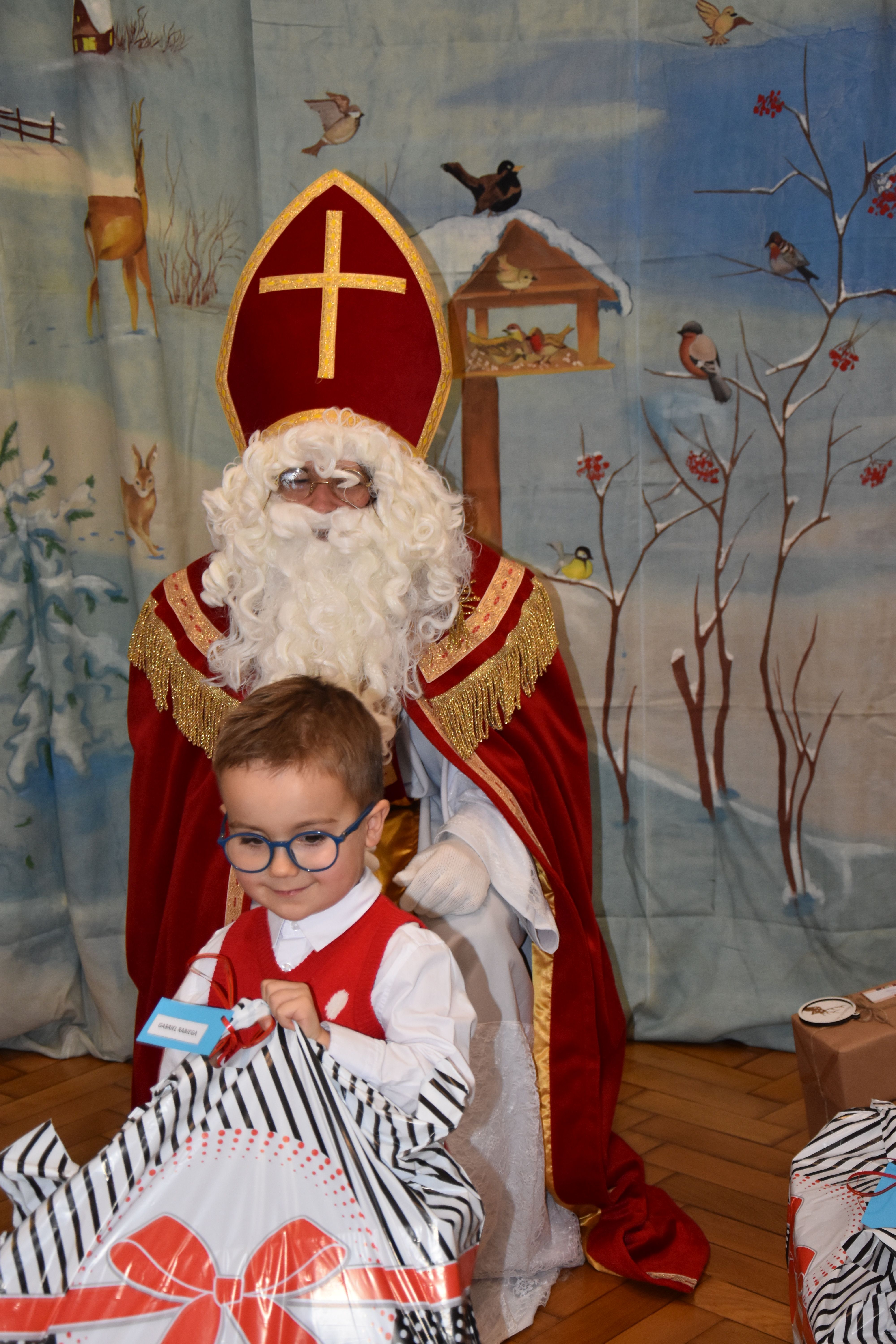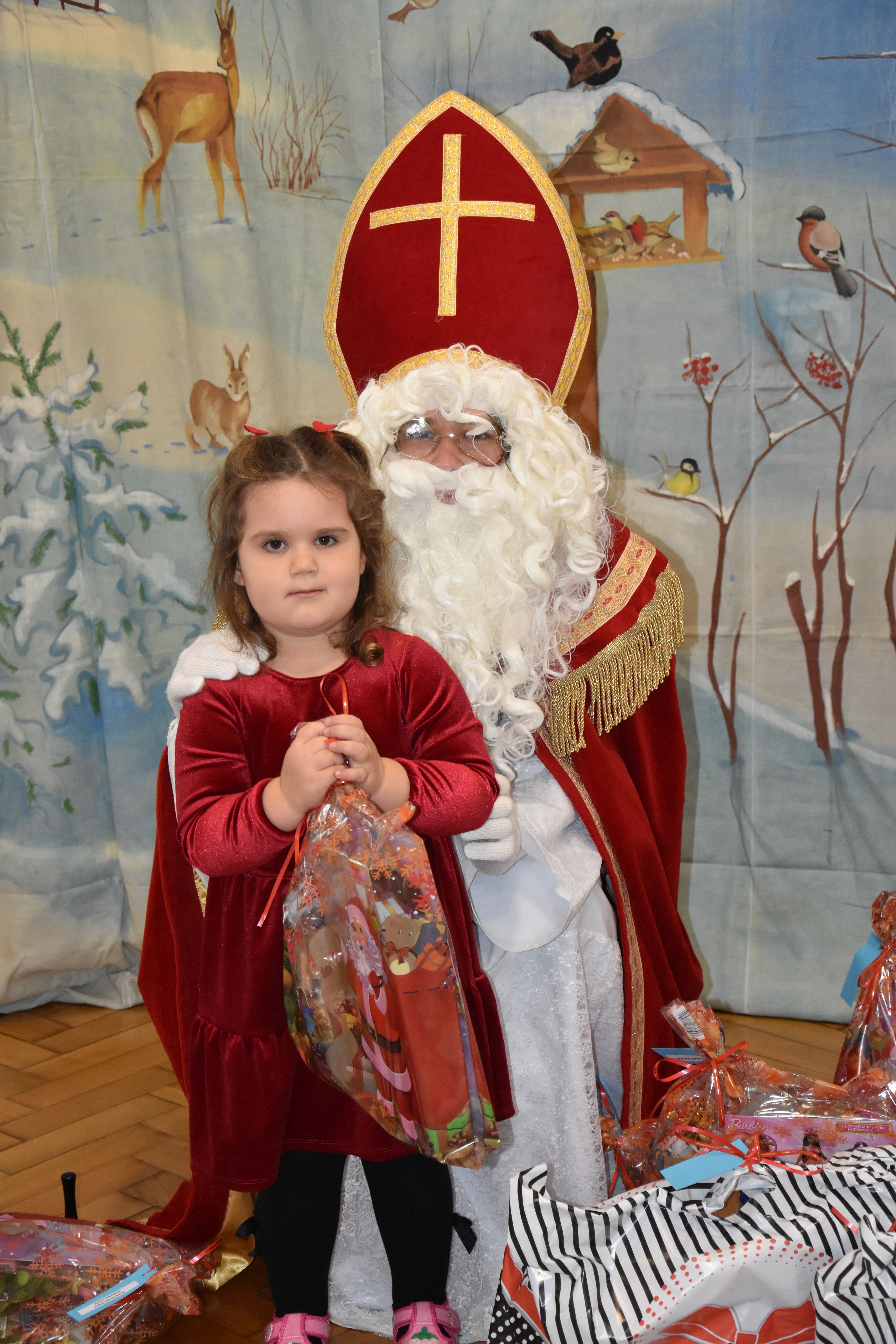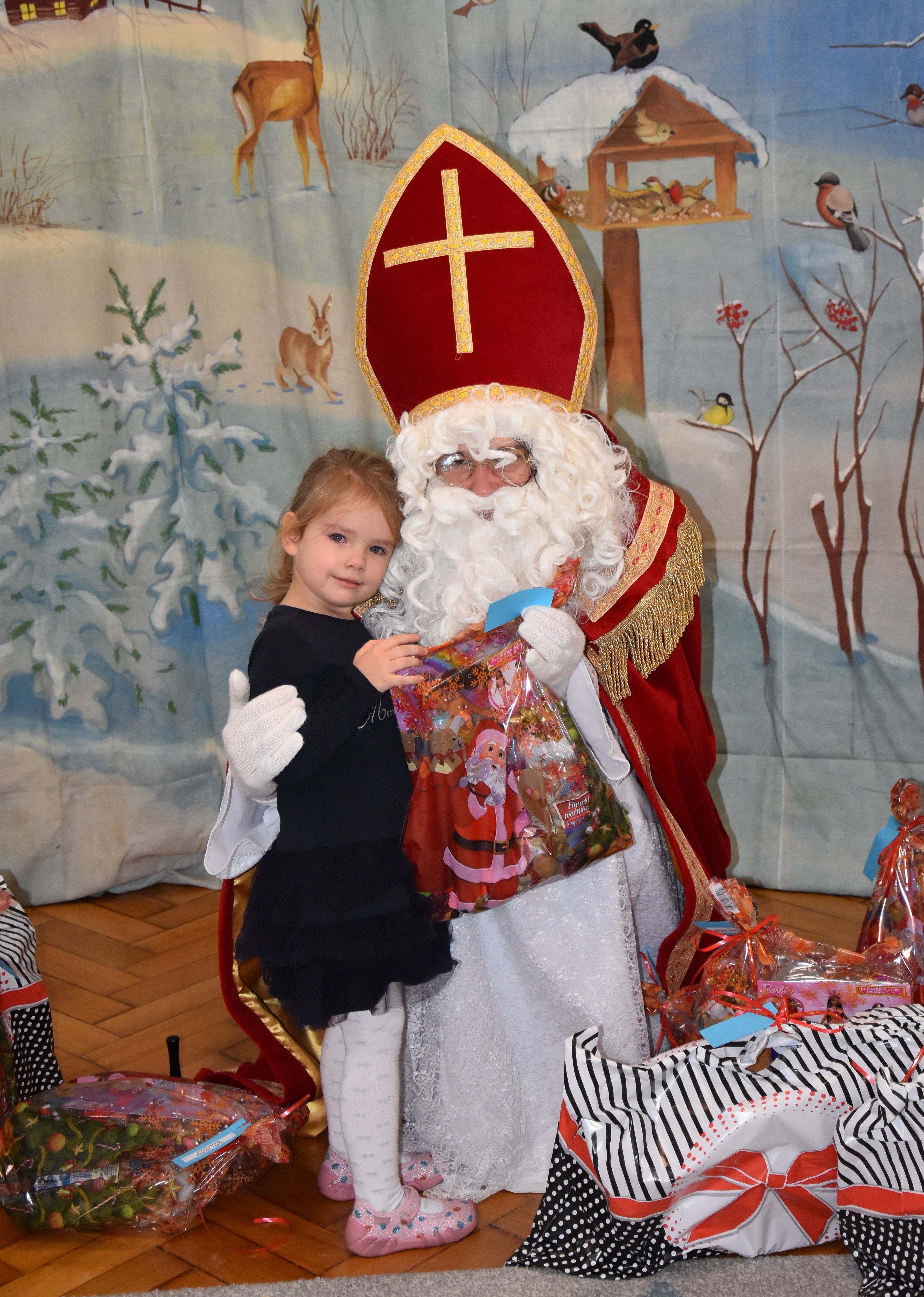 We wtorek do Aniołków przybył długo wyczekiwany gość – Święty Mikołaj. Już od rana w sali panowała niezwykła atmosfera. Odświętnie ubrane dzieci z ekscytacją spoglądały raz po raz w stronę okien i drzwi. Każdy szept i krok na korytarzu wywoływał falę radości: „To on! Idzie Mikołaj!”. Odwiedziny Świętego Mikołaja poprzedzał teatrzyk pt. ,,Legenda o Świętym Mikołaju” w wykonaniu aktorów z Teatru Eden . Wzruszające przedstawienie wprowadziło nas w świat wartości takich jak: dobro i miłość.