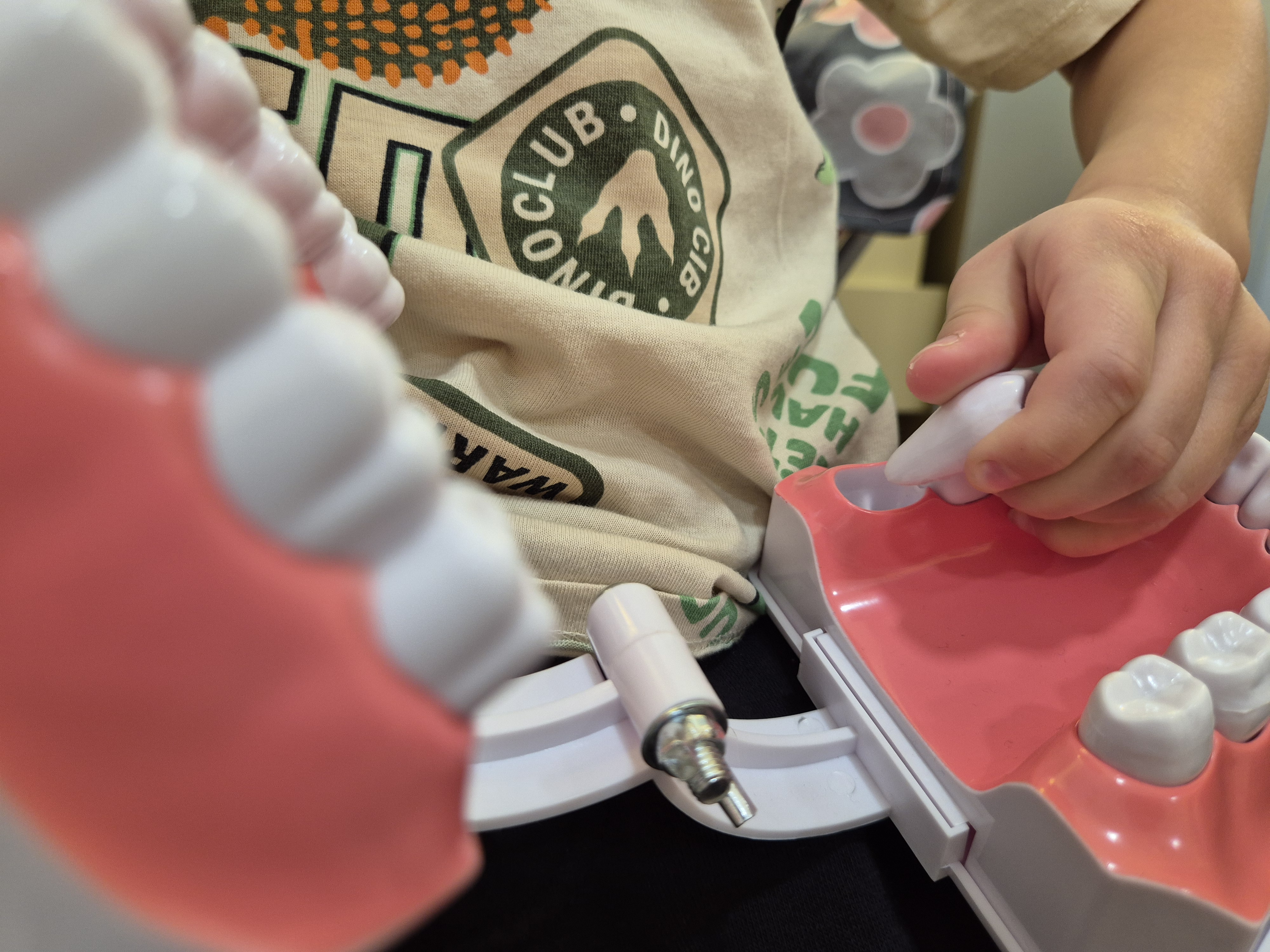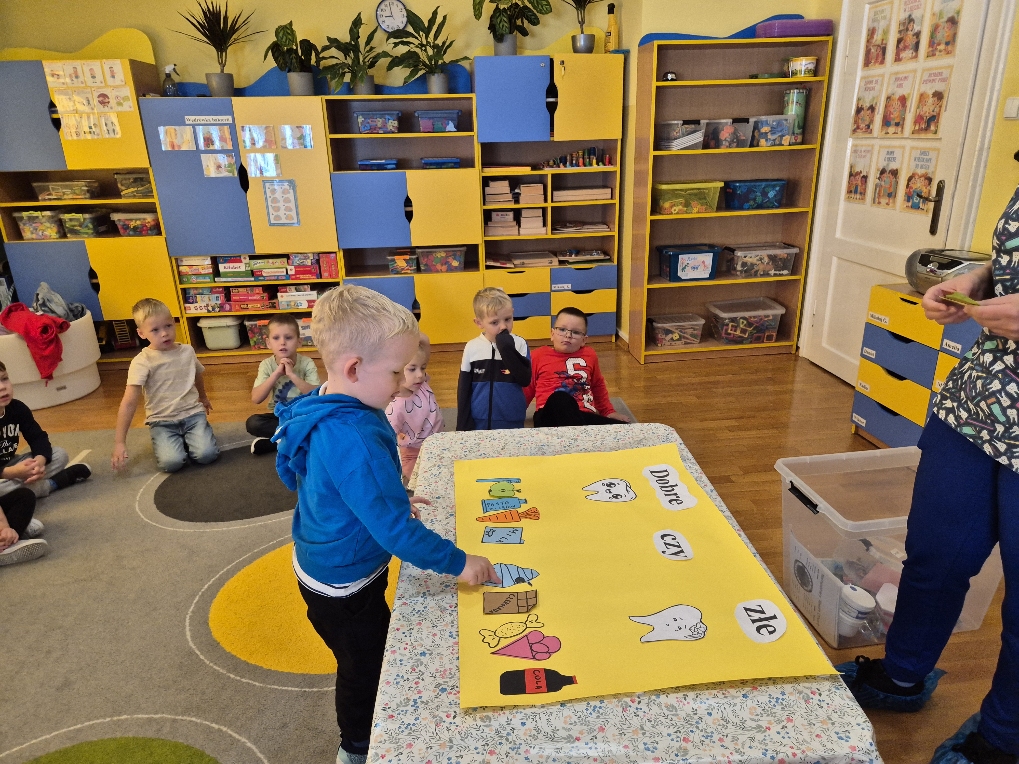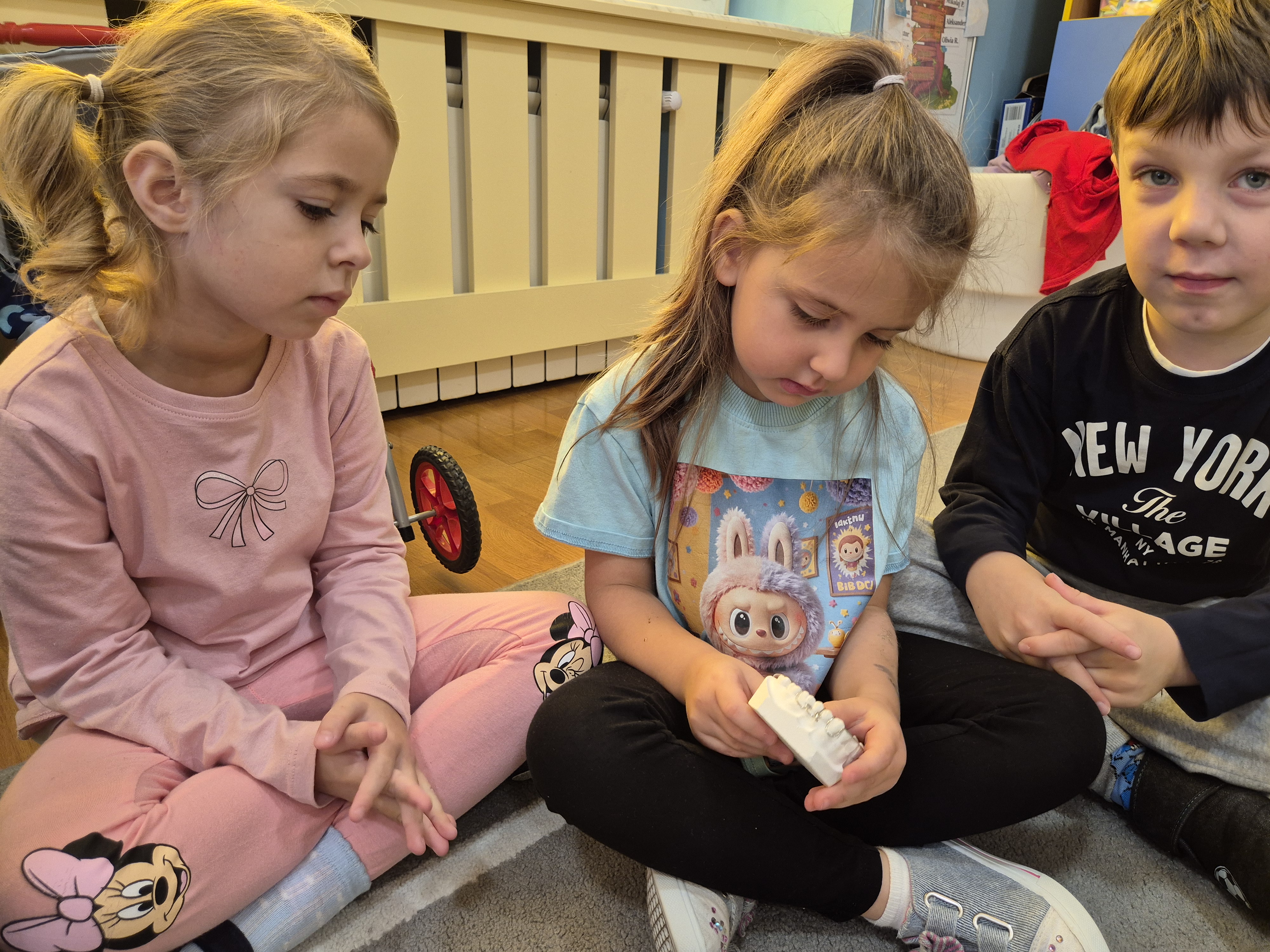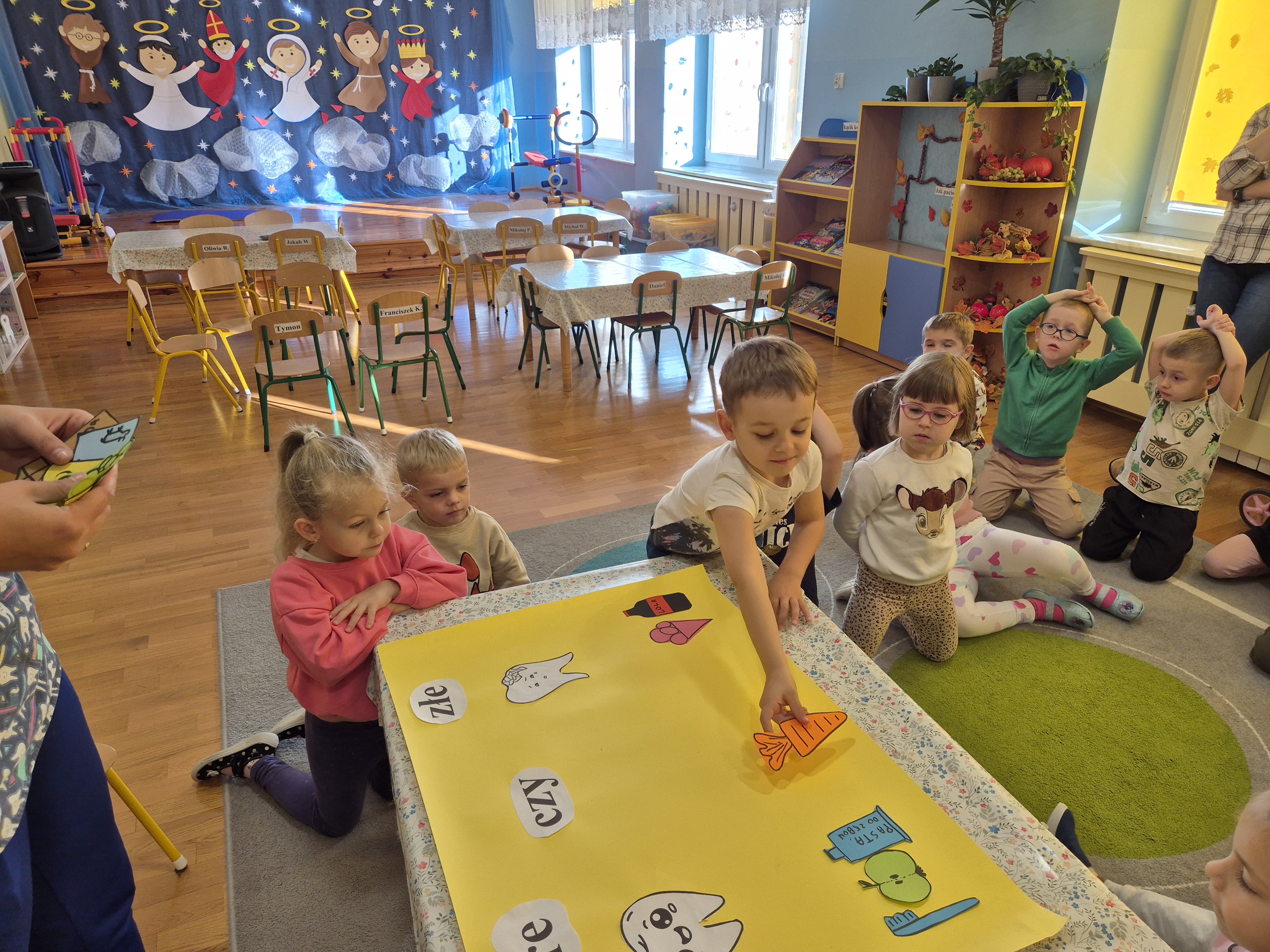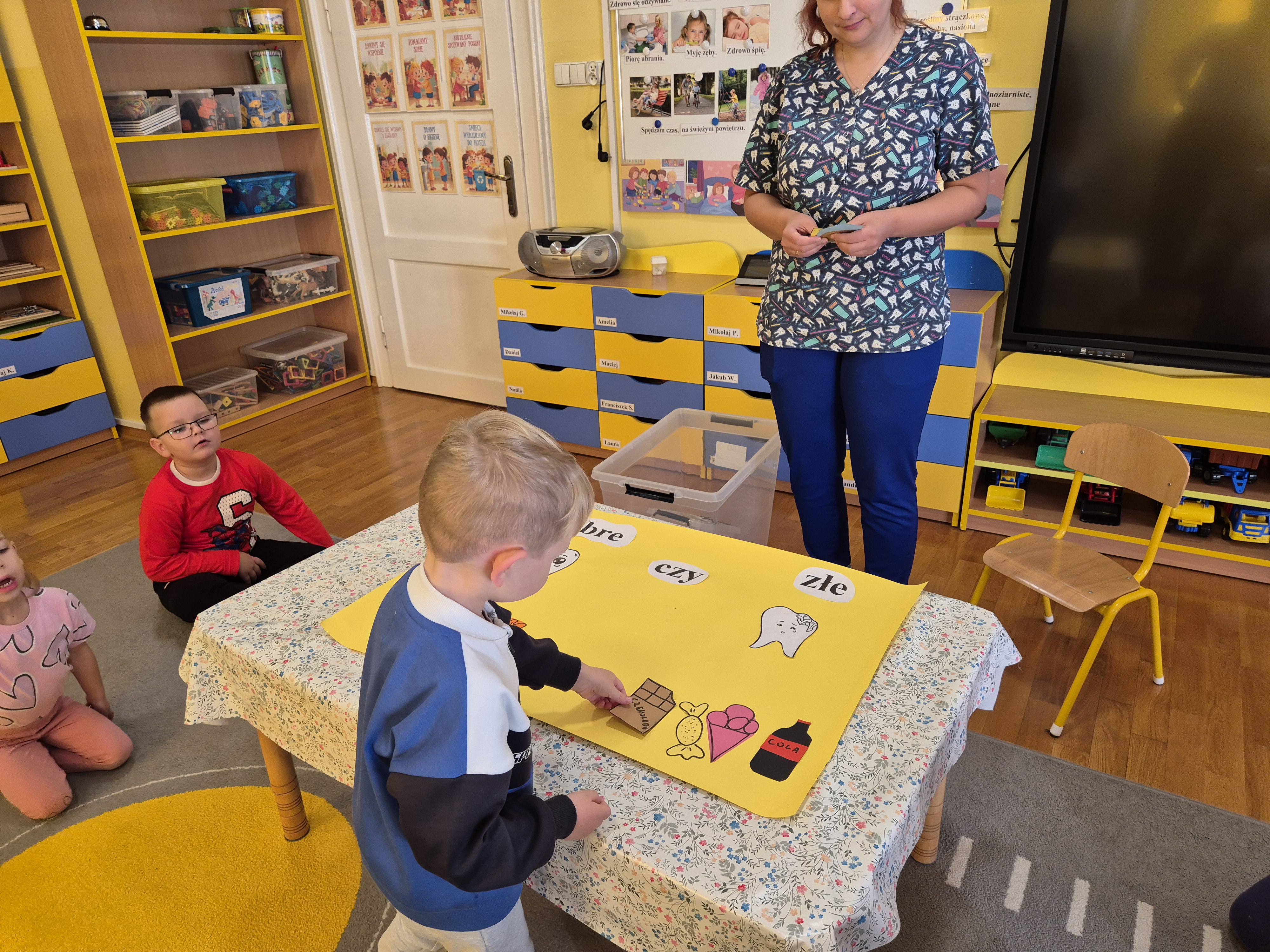 Grupę Pszczółek odwiedziła mama Mikołaja, która opowiedziała dzieciom o swojej pracy jako technik dentystyczny. Pani Kamila, wyjaśniła, na czym polega wykonywanie protez i aparatów ortodontycznych oraz jak ważna jest dbałość o zdrowe zęby. Dzieci mogły z bliska zobaczyć różne narzędzia i modele zębów. To była bardzo ciekawa i pouczająca wizyta, za którą jeszcze raz serdecznie dziękujemy.