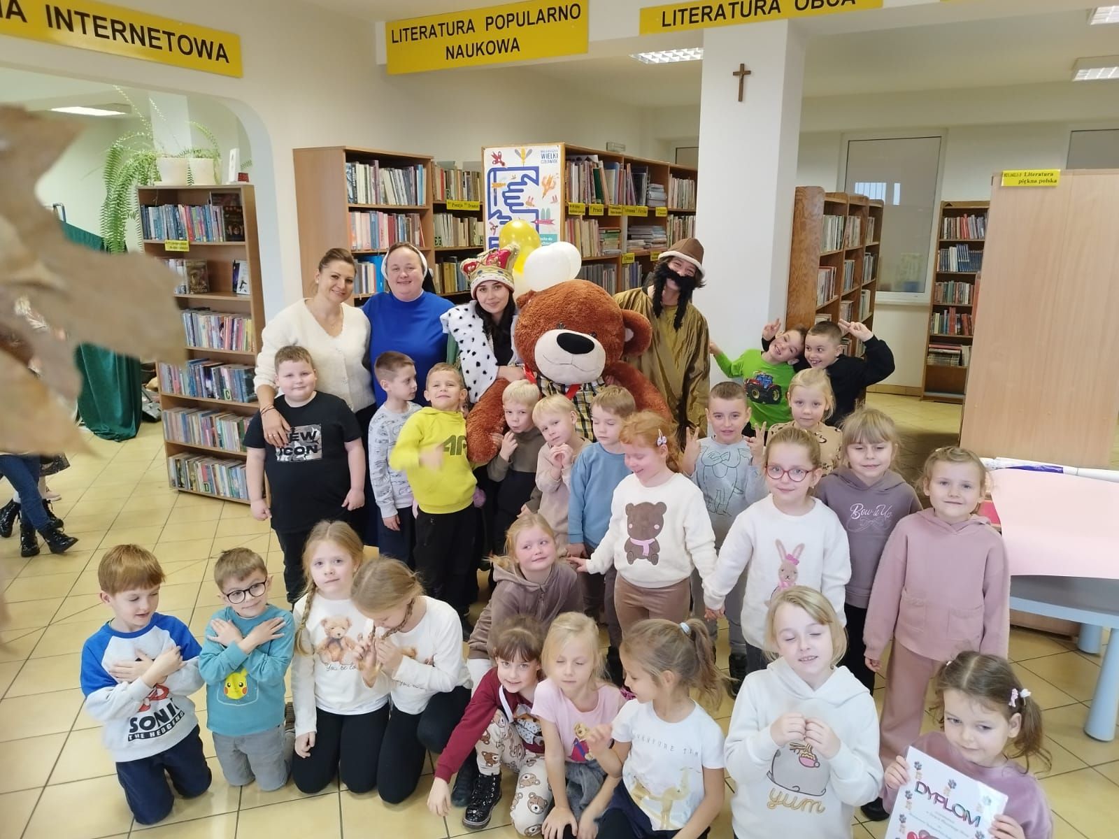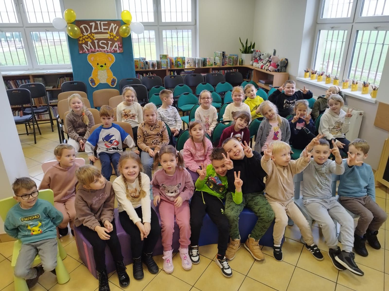 We wtorek rozpoczęliśmy obchody Święta Pluszowego Misia. Z tej okazji Biedronki wybrały się do biblioteki. Wspólnie z uczniami oddziału przedszkolnego Szkoły Podstawowej im. J. Wybickiego obejrzeliśmy bajkę nawiązującą do Dnia Pluszowego Misia. Przedstawienie wywołało dużo uśmiechu na naszych twarzach, a także skłoniło do refleksji, aby być koleżeńskim i życzliwym.