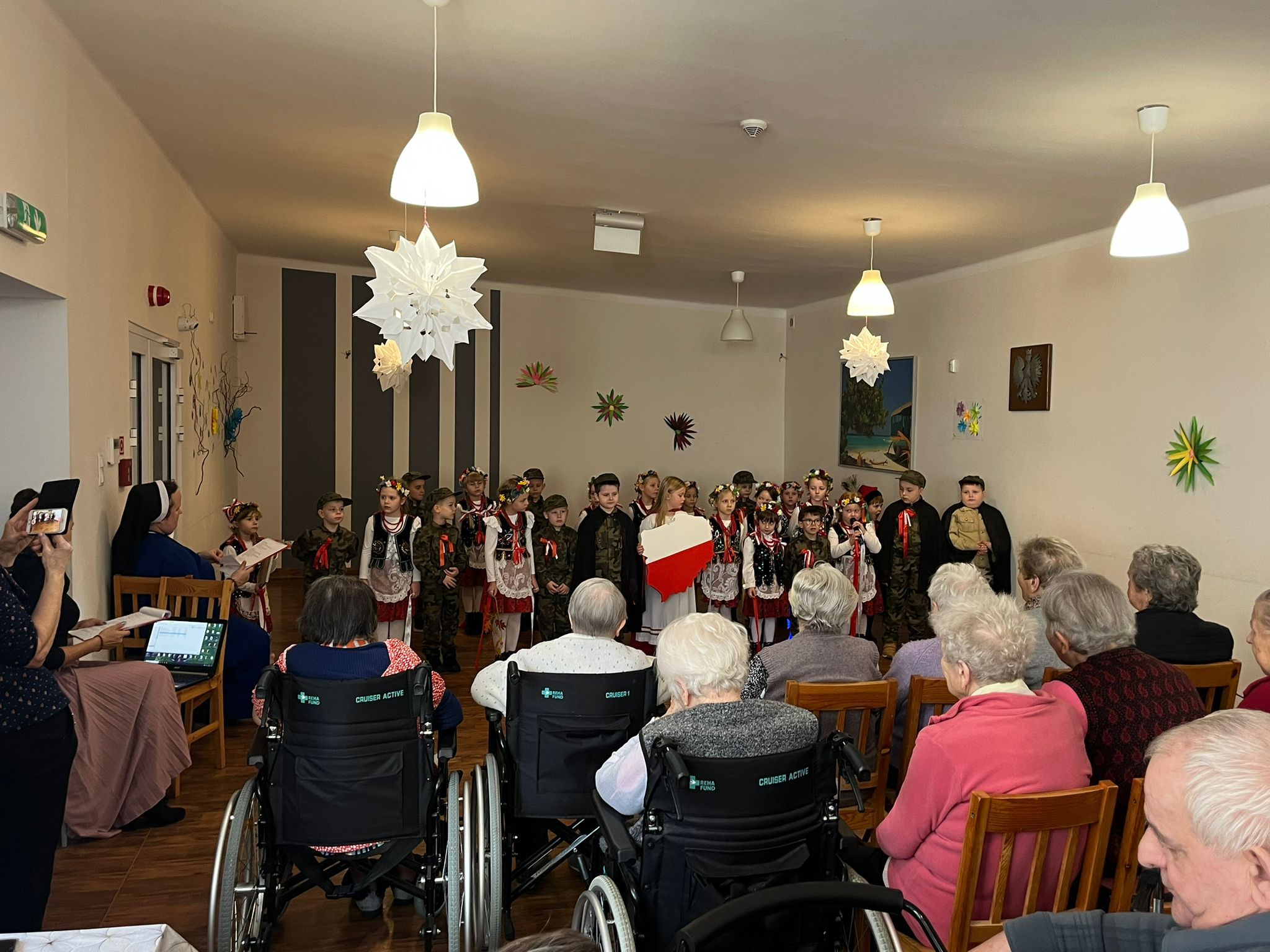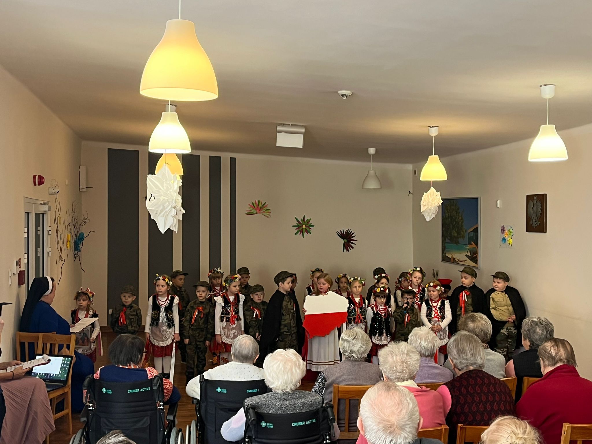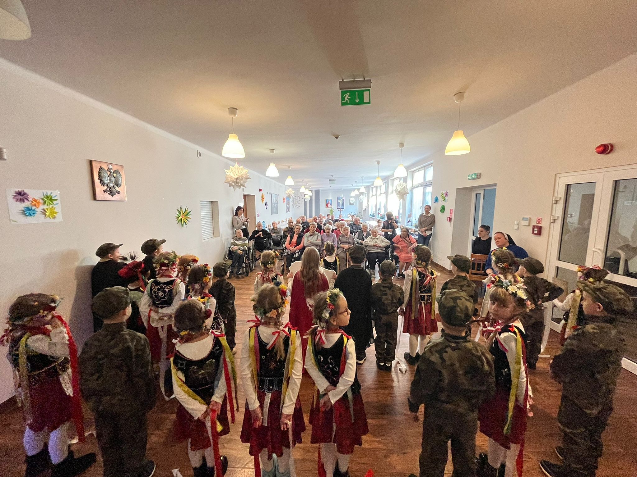 W zeszłym tygodniu nasze kochane, zdolne i pracowite Biedronki odwiedziły dwa bardzo ważne domy w Liskowie: DPS i Dom Seniora „Bursztynowe Zacisze”. Przedstawiły w nich, wystawioną wcześniej w kościele i w przedszkolu Akademię Patriotyczną, z elementami pantomimy i tańca. Nasi Seniorzy bardzo serdecznie przywitali młodsze pokolenie, ze wzruszeniem oglądali przygotowany program oraz śpiewali z nami tradycyjne pieśni patriotyczne. To były dwa pracowite, piękne dni i spotkania, które łączyły różne pokolenia.