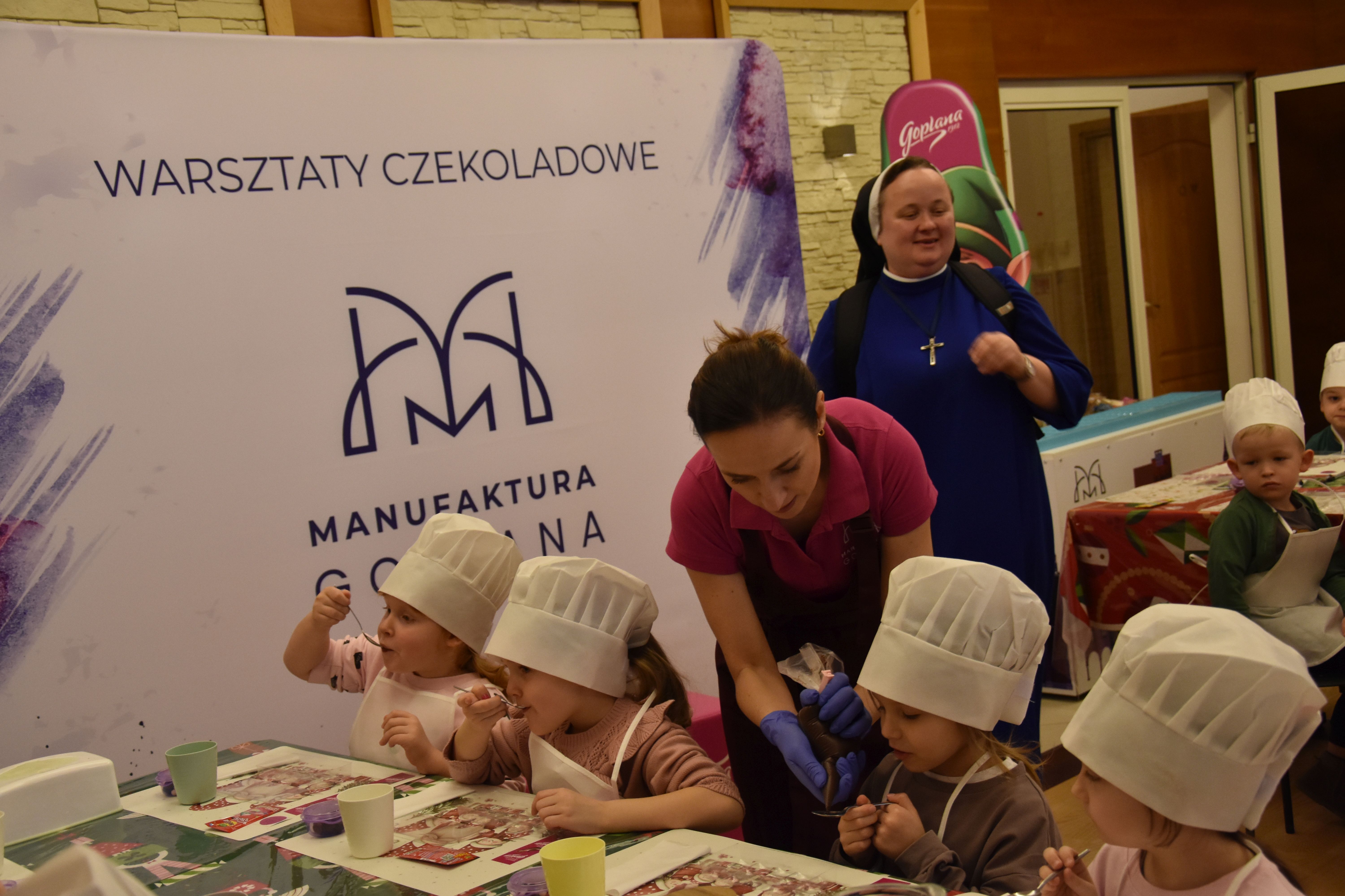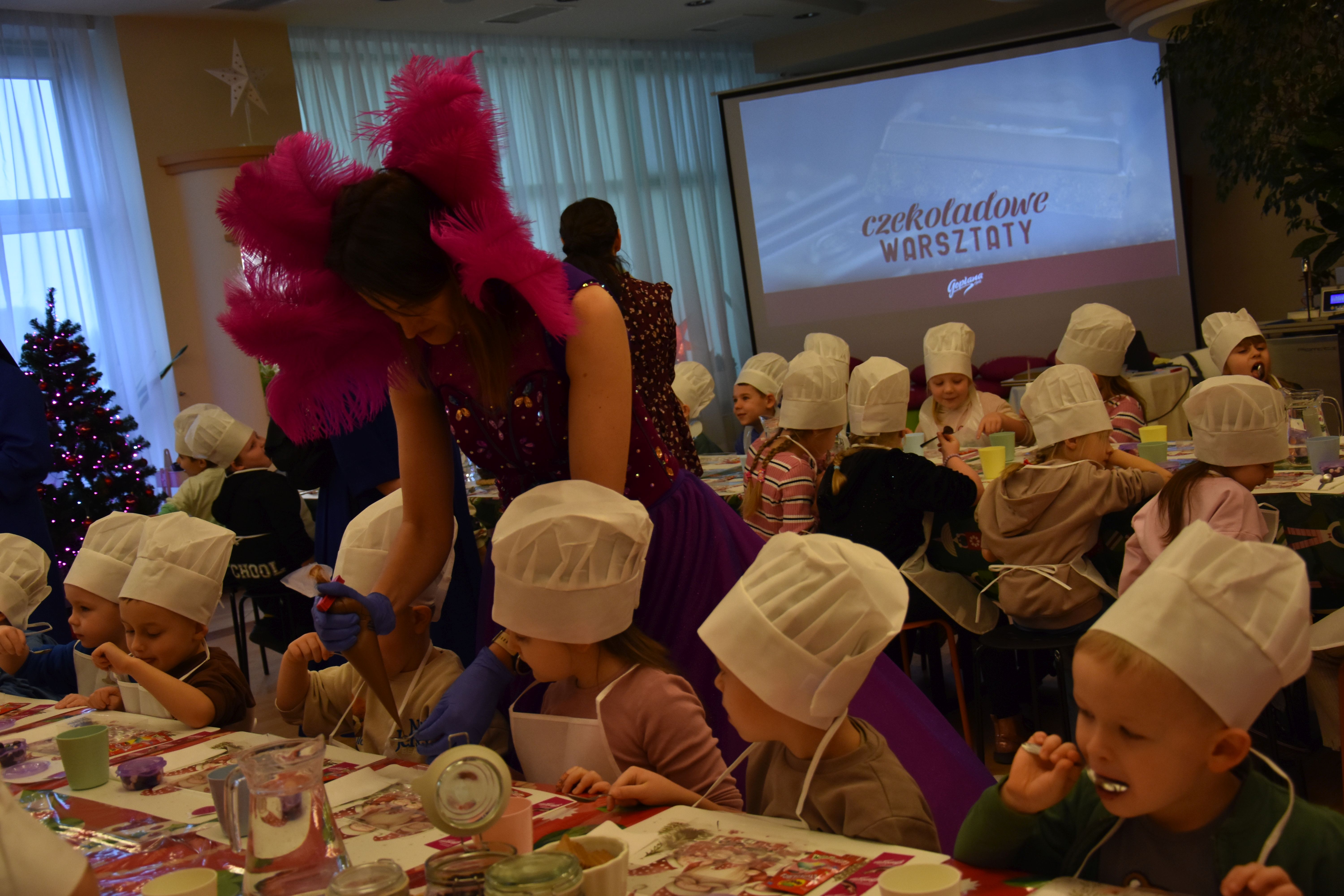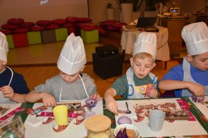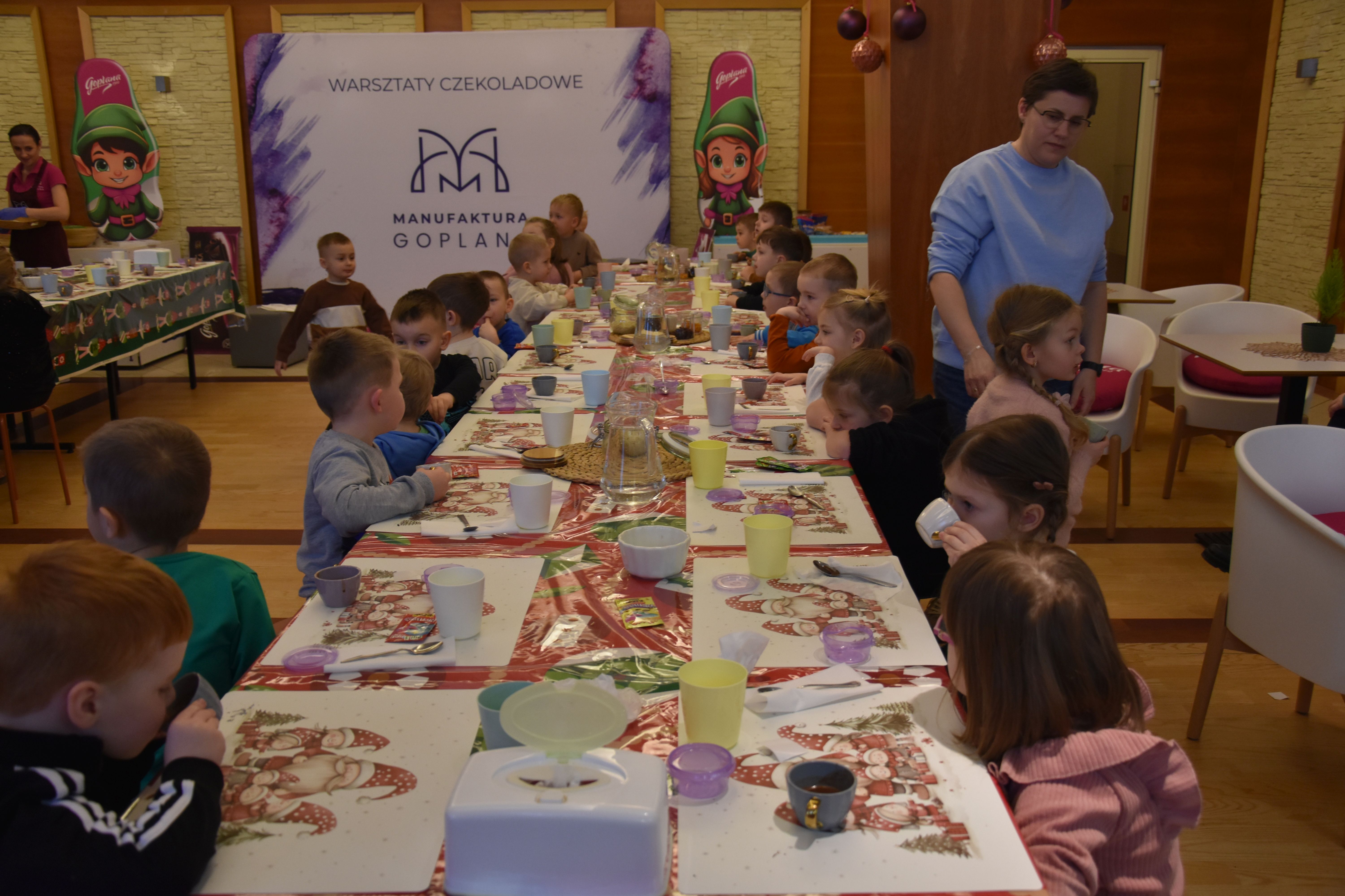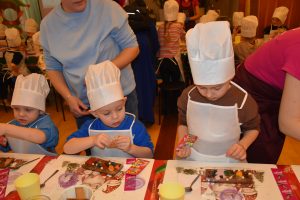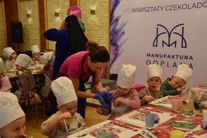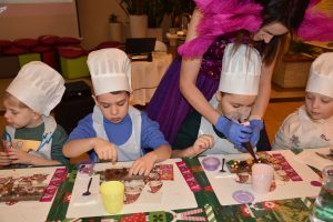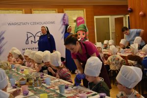 Pszczółki i Biedronki w ubiegłym tygodniu odwiedziły fabrykę czekolady. Samodzielnie przygotowały własną czekoladę ze swoimi ulubionymi dodatkami, przy okazji ich degustując ;D Następnie mogły napić się pysznej, gorącej czekolady…. Dzieci dowiedziały się także skąd pochodzi kakao niezbędne do powstania czekolady. A wszystko odbywało się w towarzystwie księżniczki Goplany i jej pomocniczek. 🙂