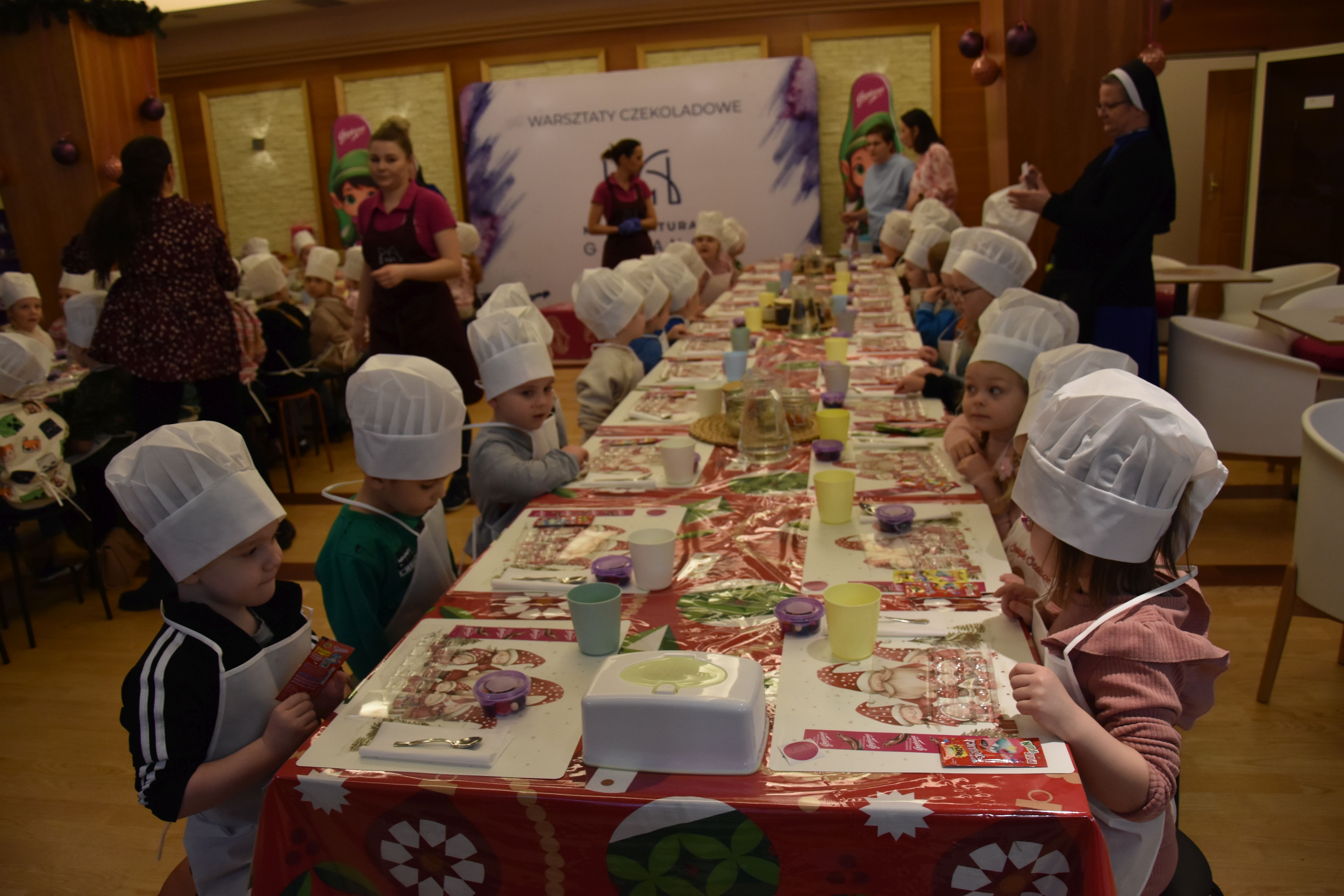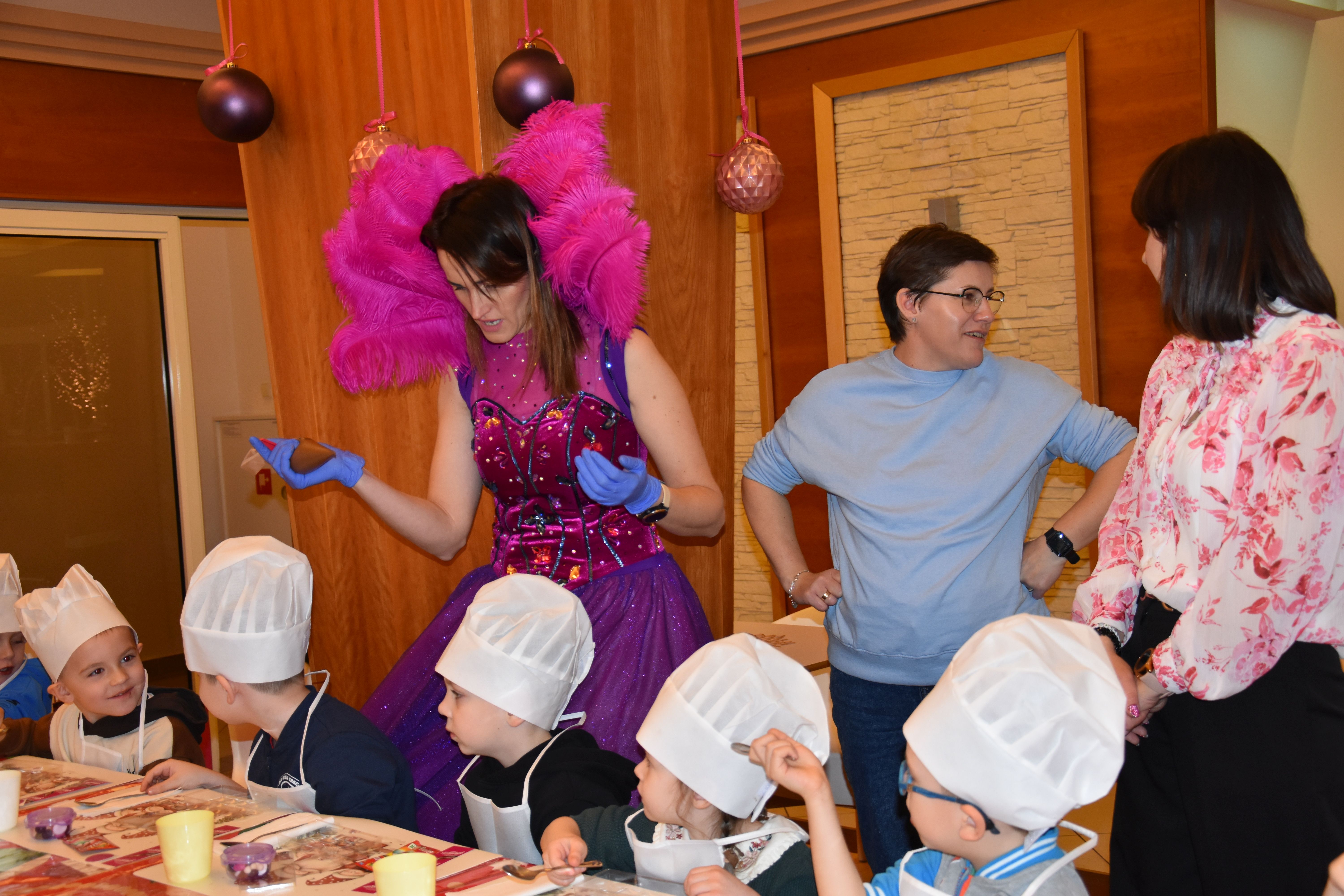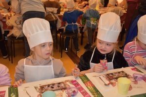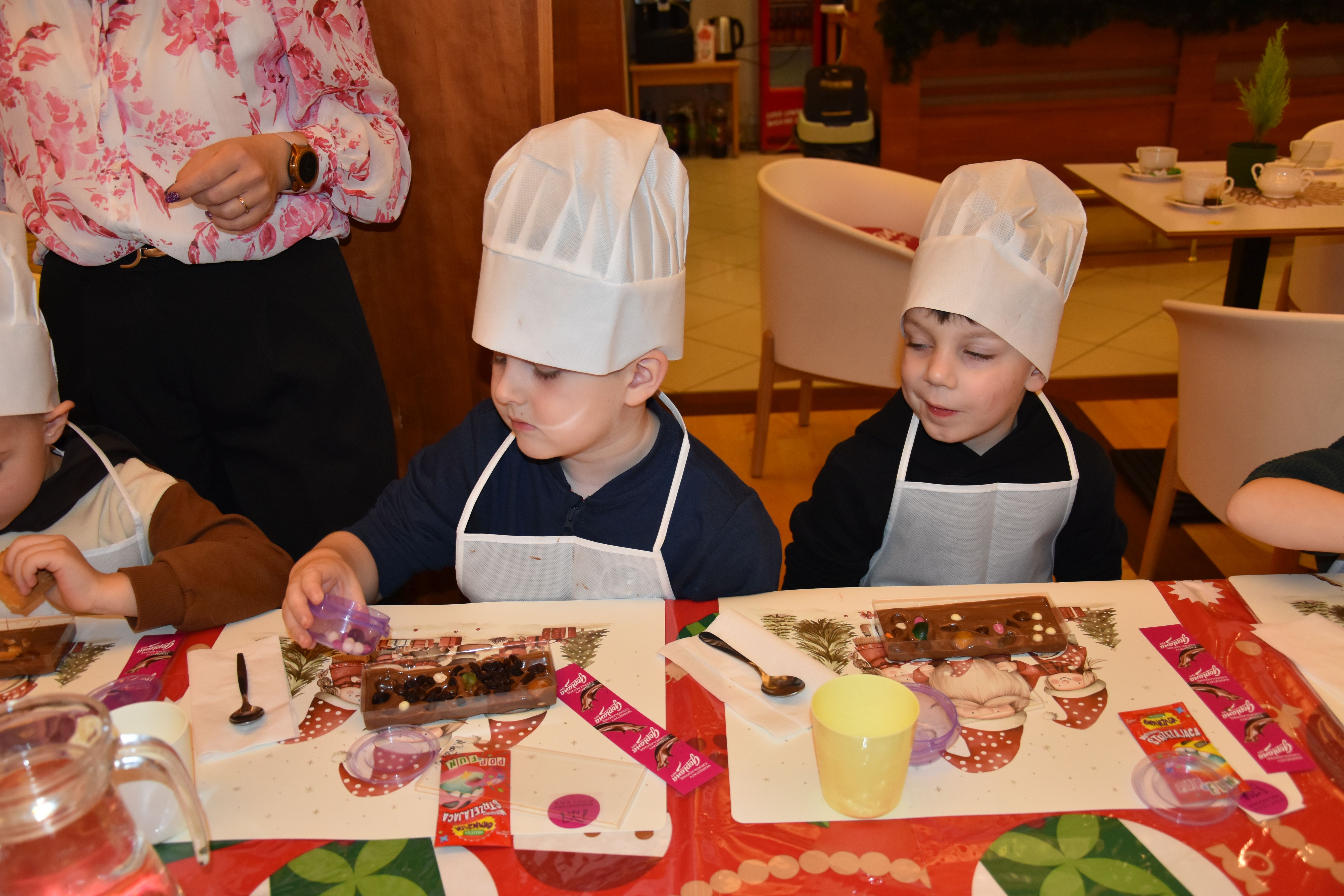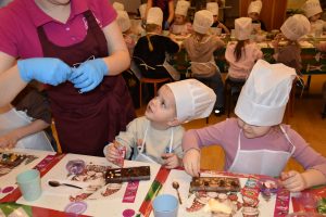 Pszczółki i Biedronki w ubiegłym tygodniu odwiedziły fabrykę czekolady. Samodzielnie przygotowały własną czekoladę ze swoimi ulubionymi dodatkami, przy okazji ich degustując ;D Następnie mogły napić się pysznej, gorącej czekolady…. Dzieci dowiedziały się także skąd pochodzi kakao niezbędne do powstania czekolady. A wszystko odbywało się w towarzystwie księżniczki Goplany i jej pomocniczek. 🙂