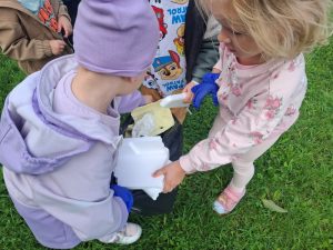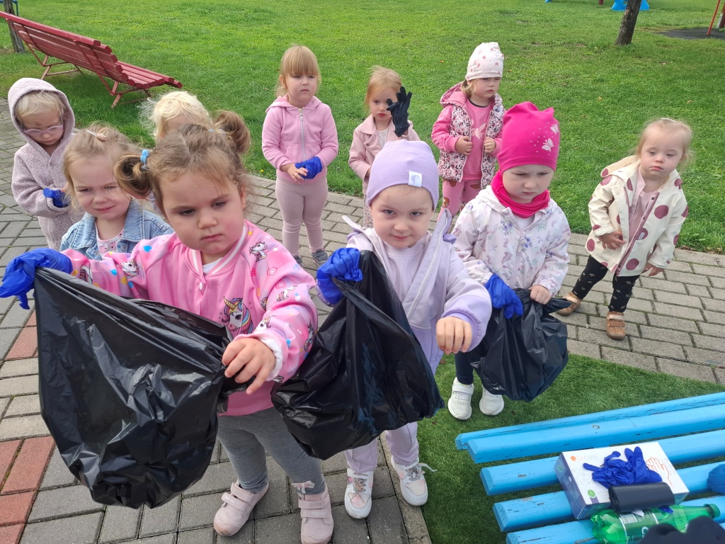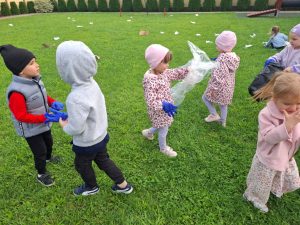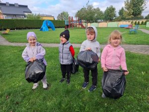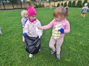 Skąd te śmieci? Aniołki biorą udział w akcji ,,Sprzątanie świata”.