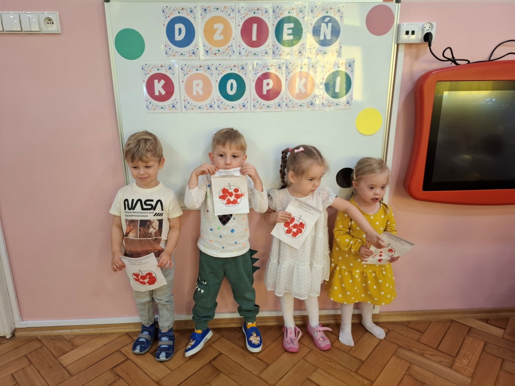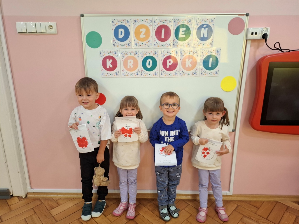 Dzień Kropki upłynął nam na wesołych zabawach i aktywnościach, których motywem przewodnim była kropka. Na koniec dnia każdy z nas otrzymał dyplom za udział w zajęciach.