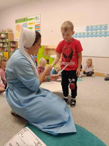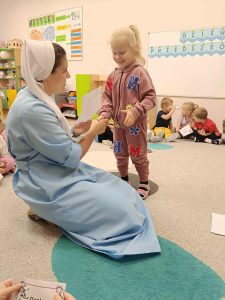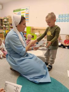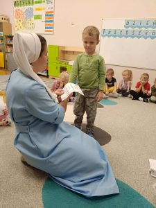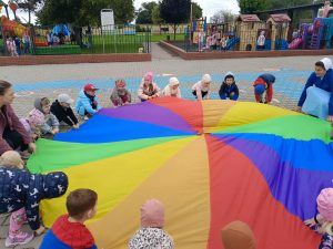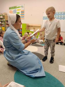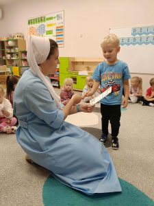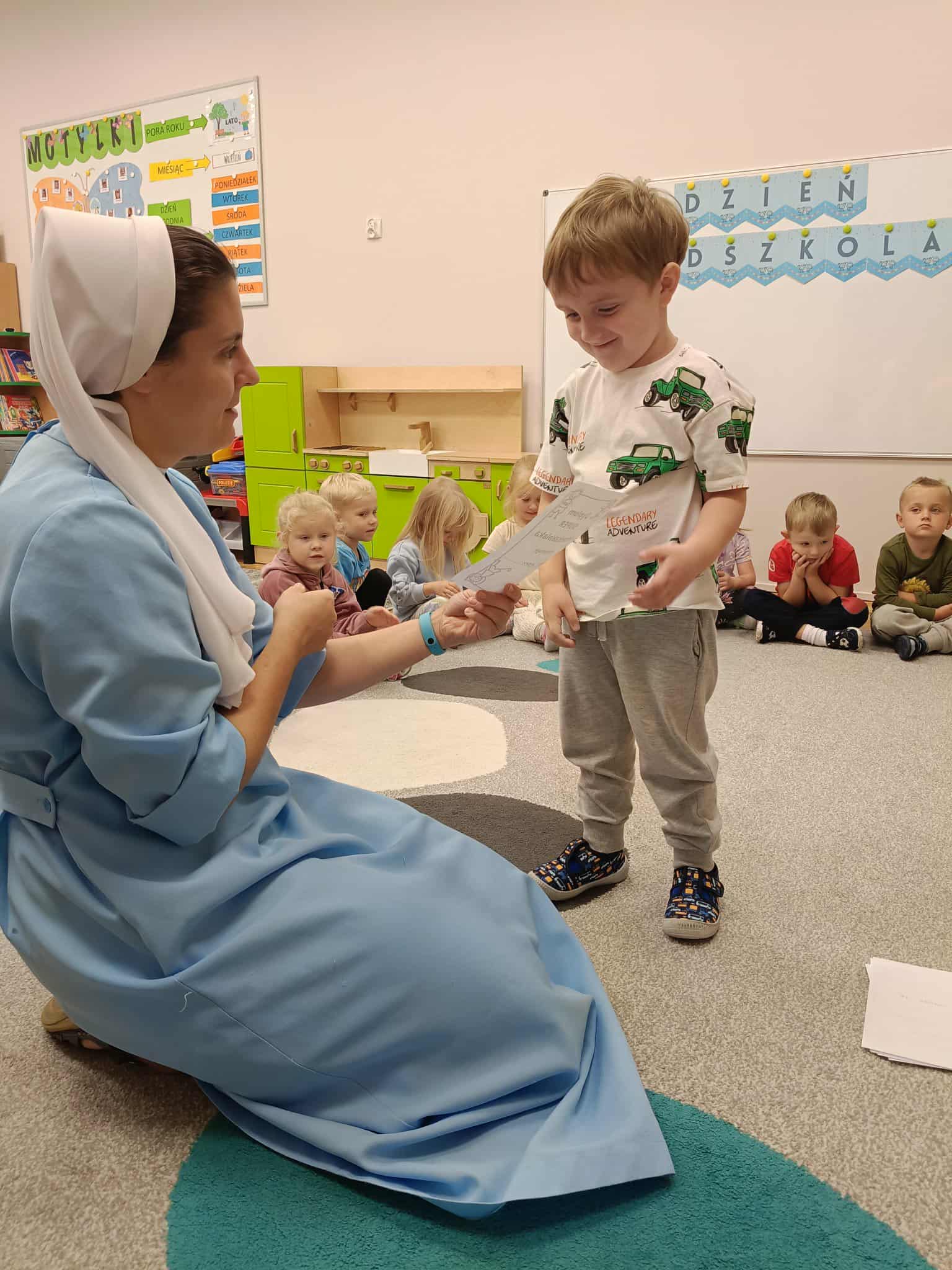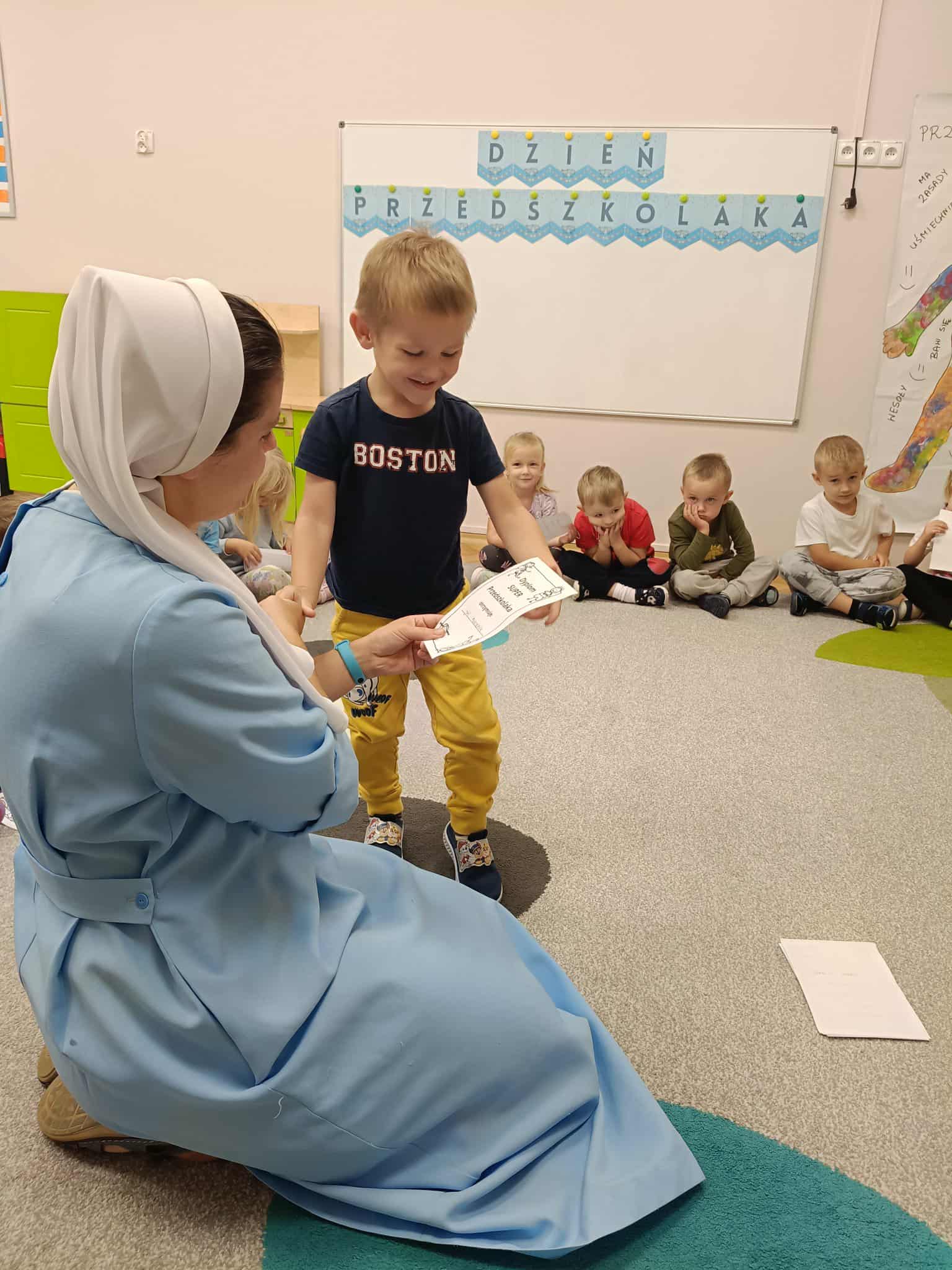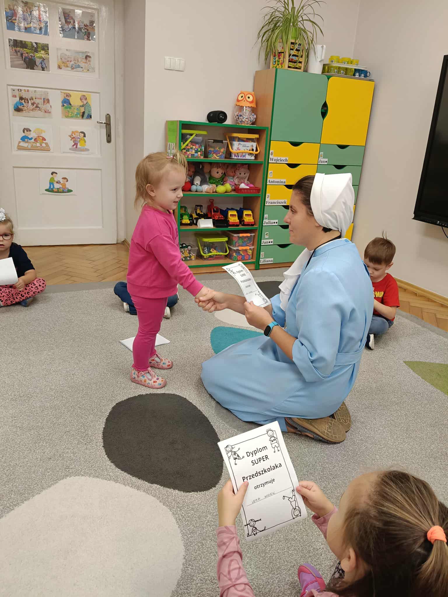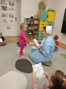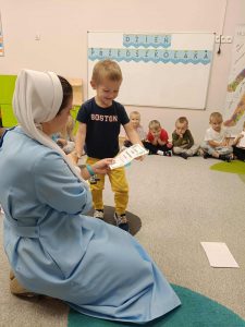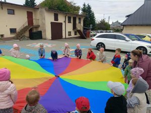 W naszej grupie świętowaliśmy wyjątkowy dzień – Dzień Przedszkolaka. Rozmawialiśmy o tym, kim jest przedszkolak i co to znaczy być „super przedszkolakiem”. Wspólnie stworzyliśmy obraz, w którym każdy zostawił swój twórczy wkład. Nie zabrakło także wesołych zabaw z chustą animacyjną – zarówno na świeżym powietrzu, jak i w naszej sali. Na zakończenie każde dziecko otrzymało pamiątkowy dyplom „Super Przedszkolaka”, który wywołał mnóstwo radości i dumy.