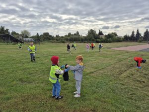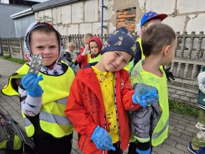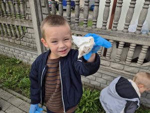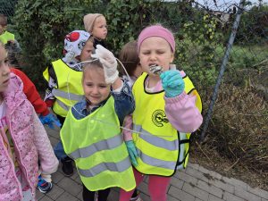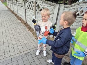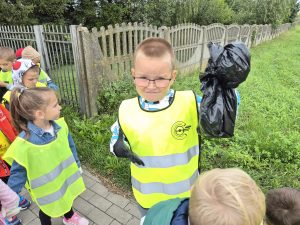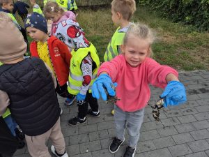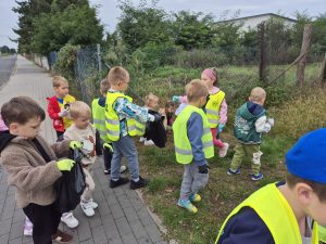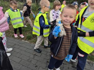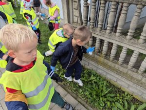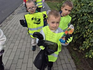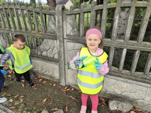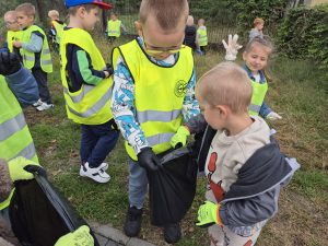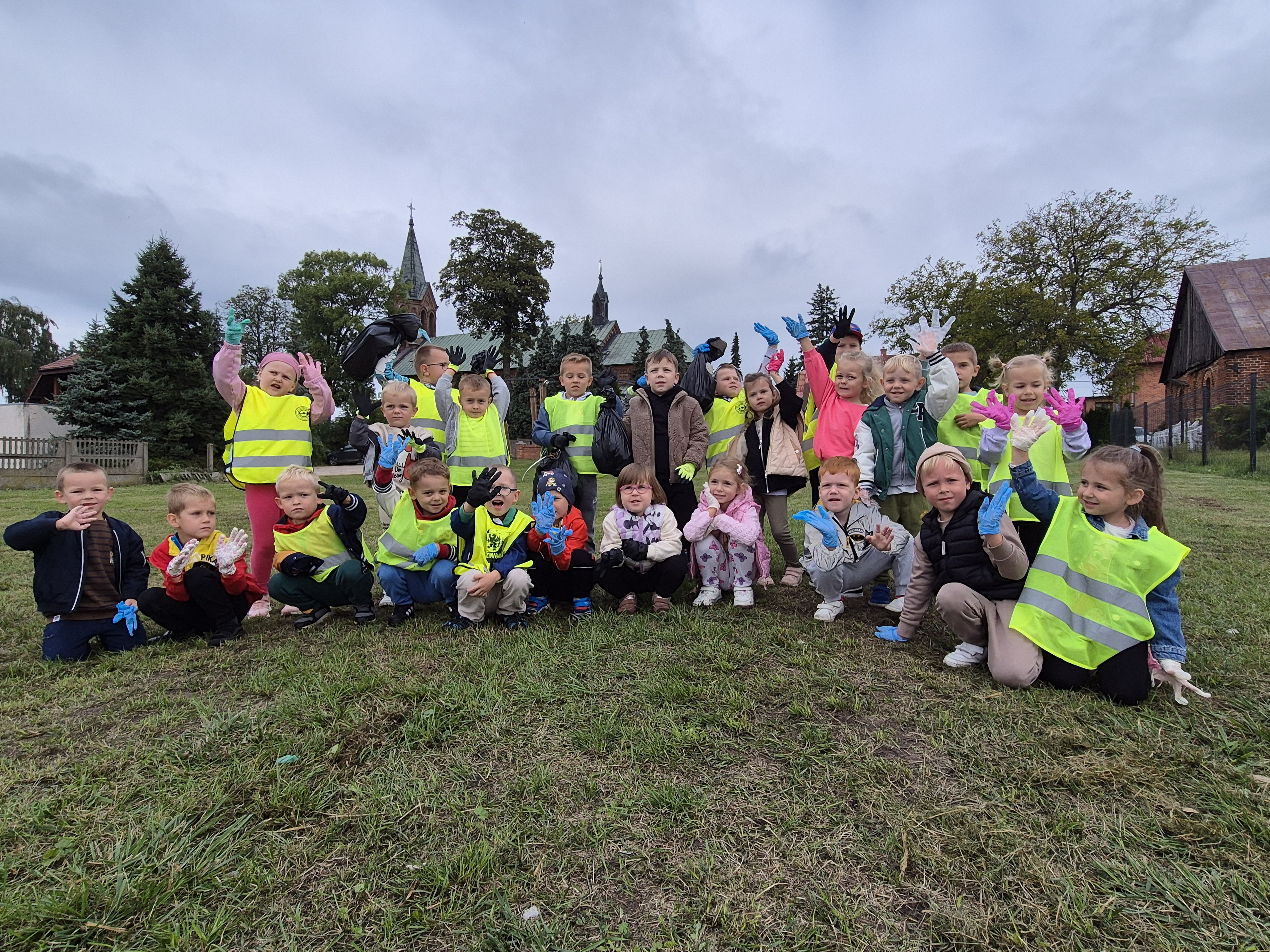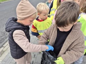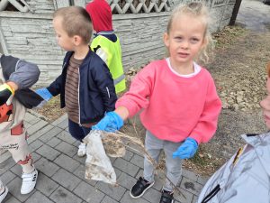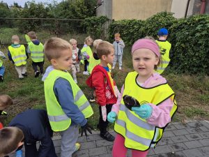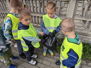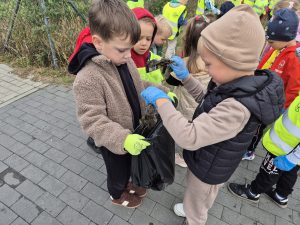 Pszczółki wzięły udział w akcji Sprzątania świata, dbając o czystość najbliższego otoczenia. Z wielkim zaangażowaniem zbierały śmieci, ucząc się, że ważna jest troska o przyrodę.