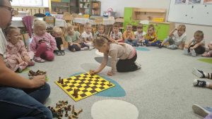 Motylki z radością rozpoczęły swoją przygodę z szachami i gimnastyką. Podczas zajęć dzieci wspaniale rozwijały koncentracje, logiczne myślenie oraz sprawność ruchową. Było mnóstwo uśmiechów, zabawy i wspólnego odkrywania nowych umiejętności.