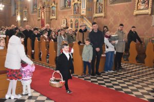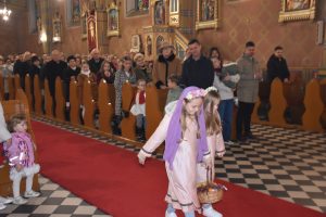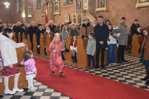 W niedzielę, podczas uroczystej celebracji odpustu ku czci Wszystkich Świętych w Liskowie, odbyła się wyjątkowa procesja z darami, w której szczególną rolę odegrały nasze przedszkolaki. Najmłodsi parafianie, przebrani za świętych, z radością i dumą uczestniczyli w liturgii, niosąc symboliczne dary i przypominając wszystkim o pięknie świętości, do której każdy z nas jest powołany.