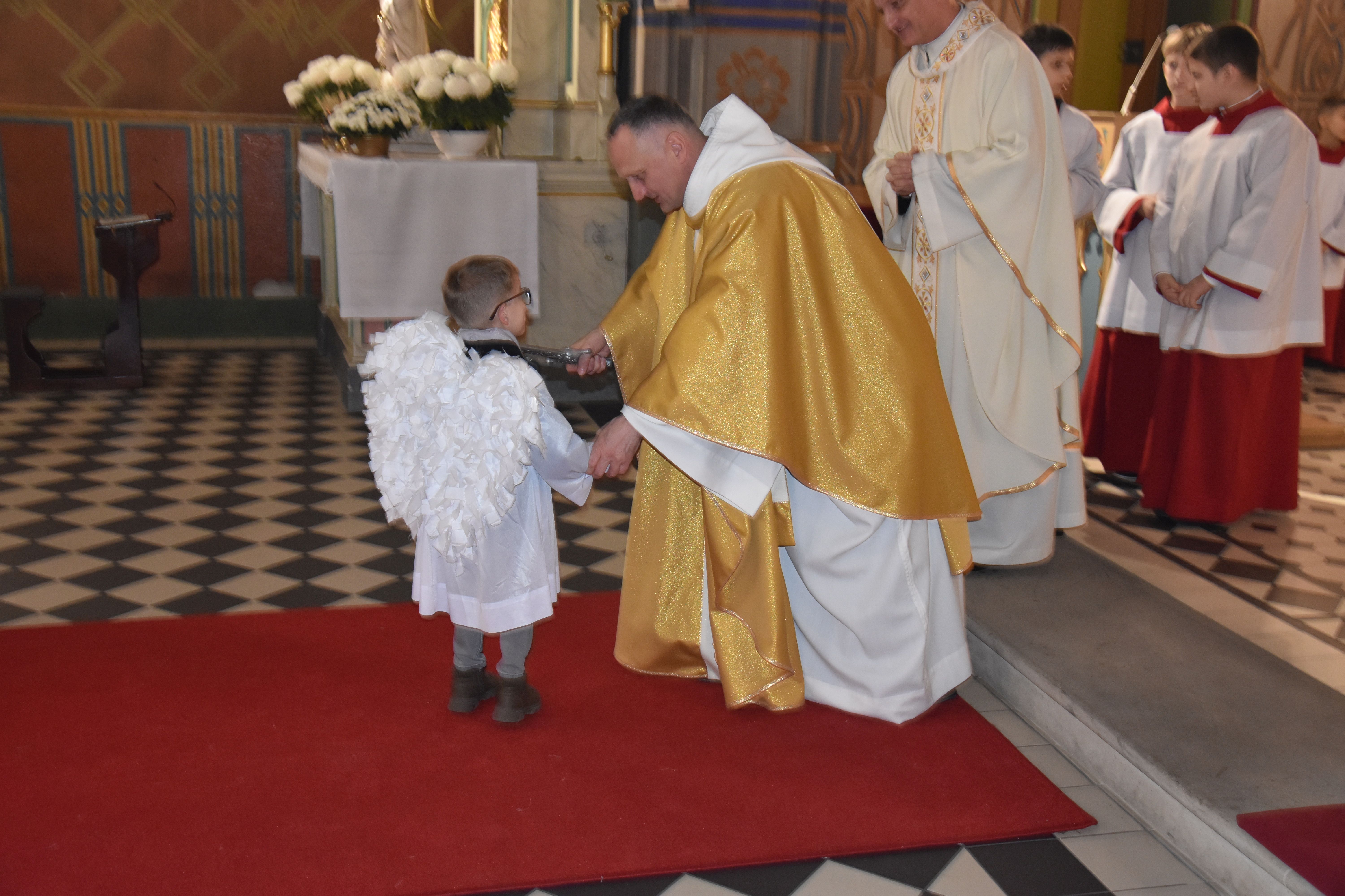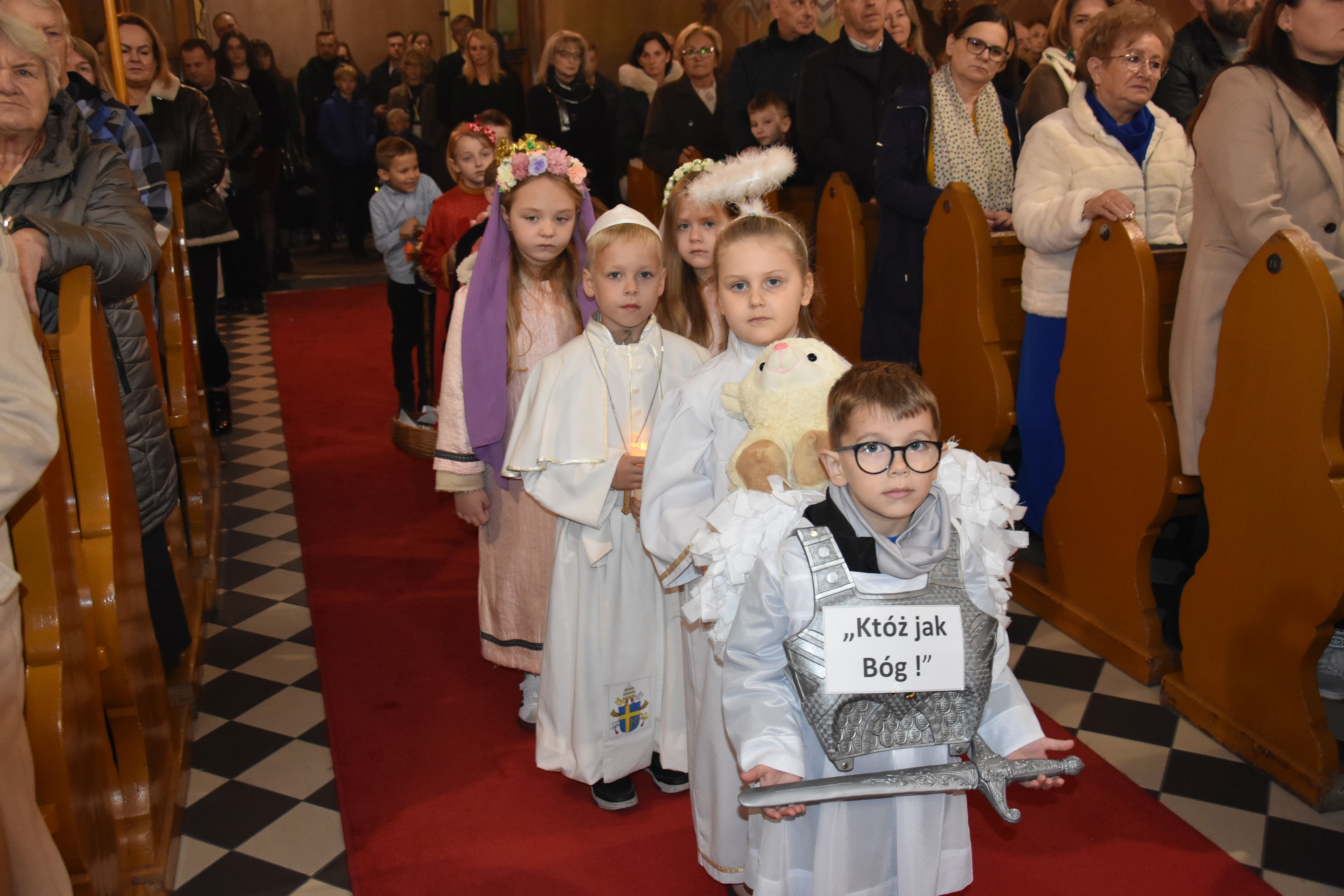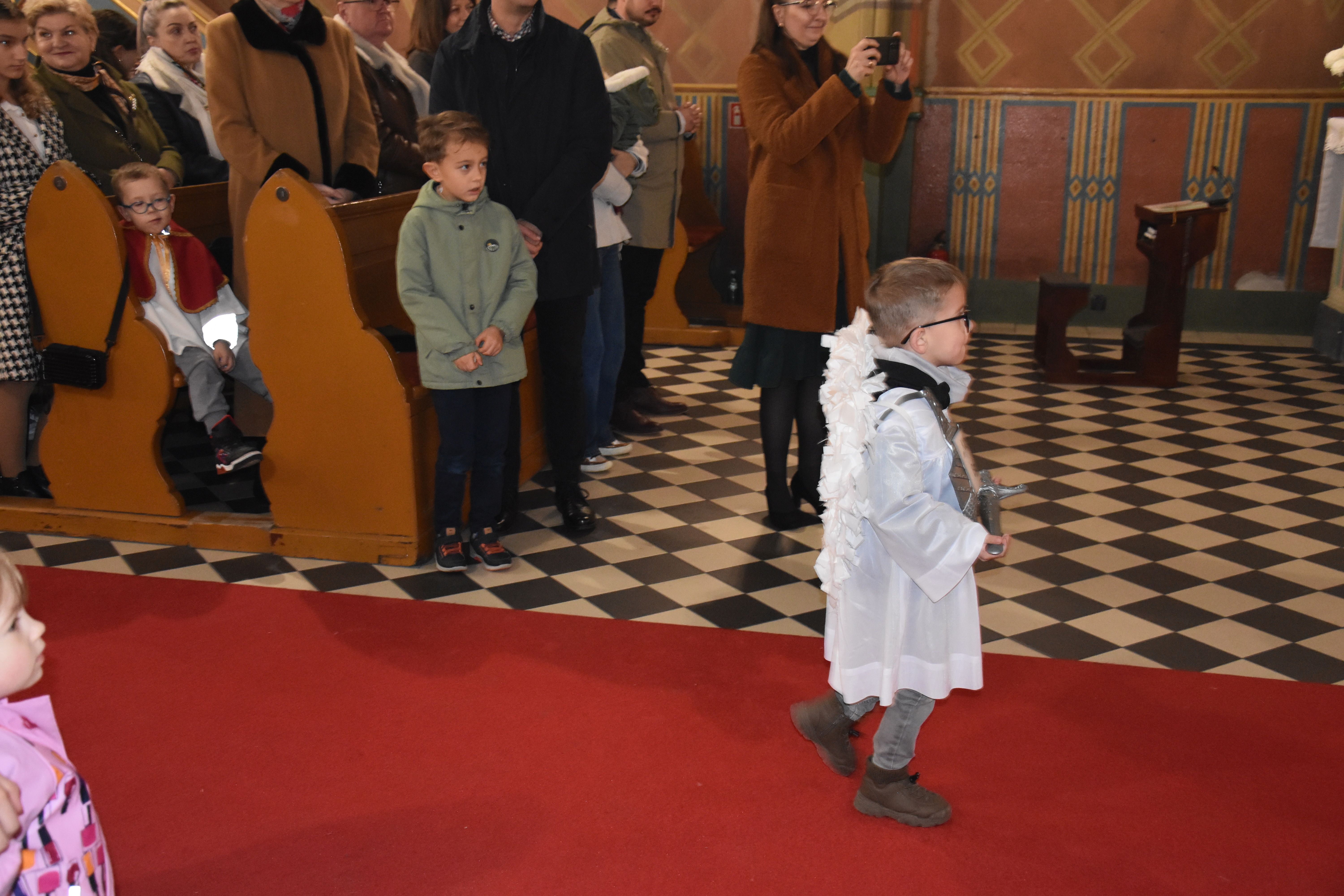 W niedzielę, podczas uroczystej celebracji odpustu ku czci Wszystkich Świętych w Liskowie, odbyła się wyjątkowa procesja z darami, w której szczególną rolę odegrały nasze przedszkolaki. Najmłodsi parafianie, przebrani za świętych, z radością i dumą uczestniczyli w liturgii, niosąc symboliczne dary i przypominając wszystkim o pięknie świętości, do której każdy z nas jest powołany.