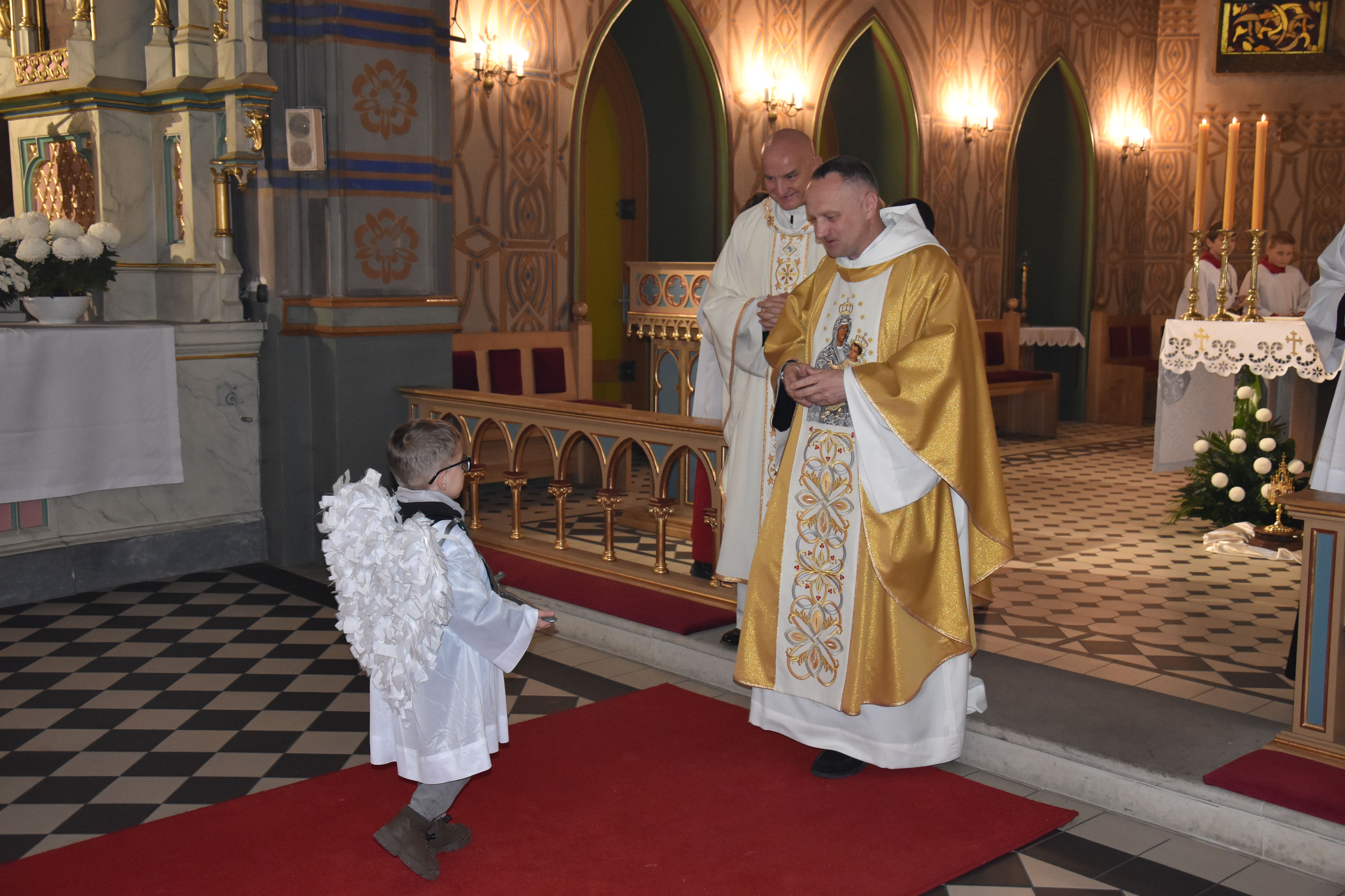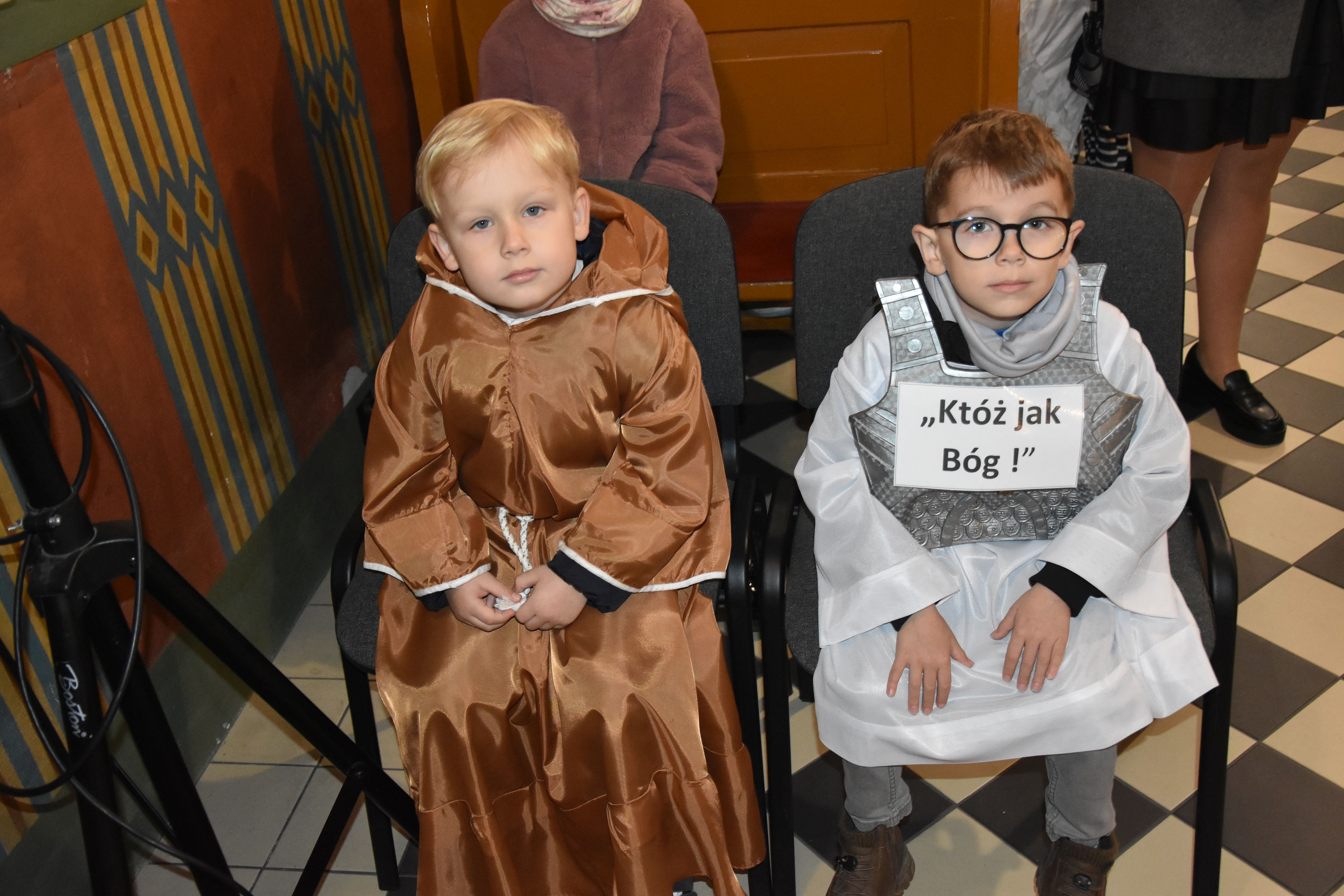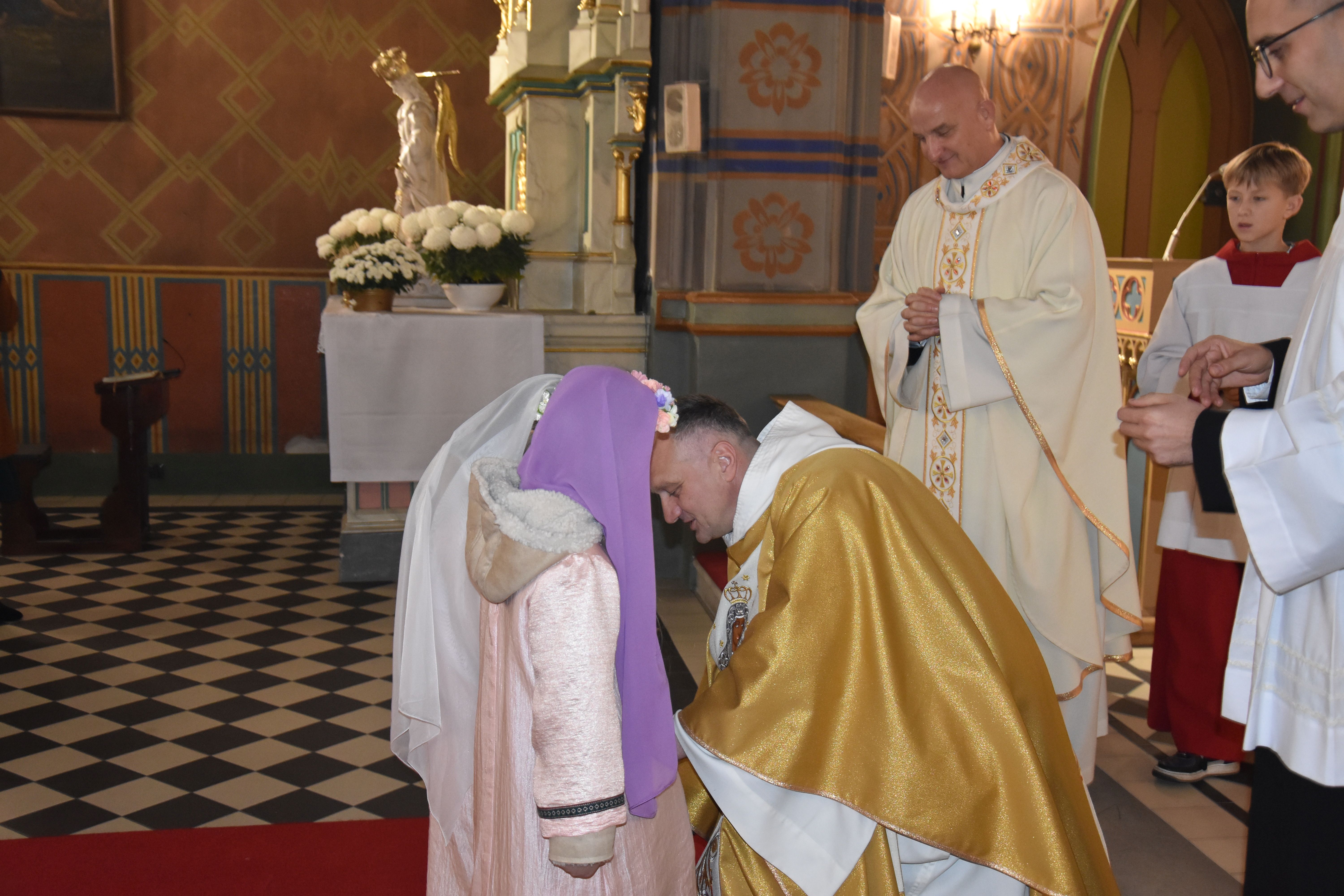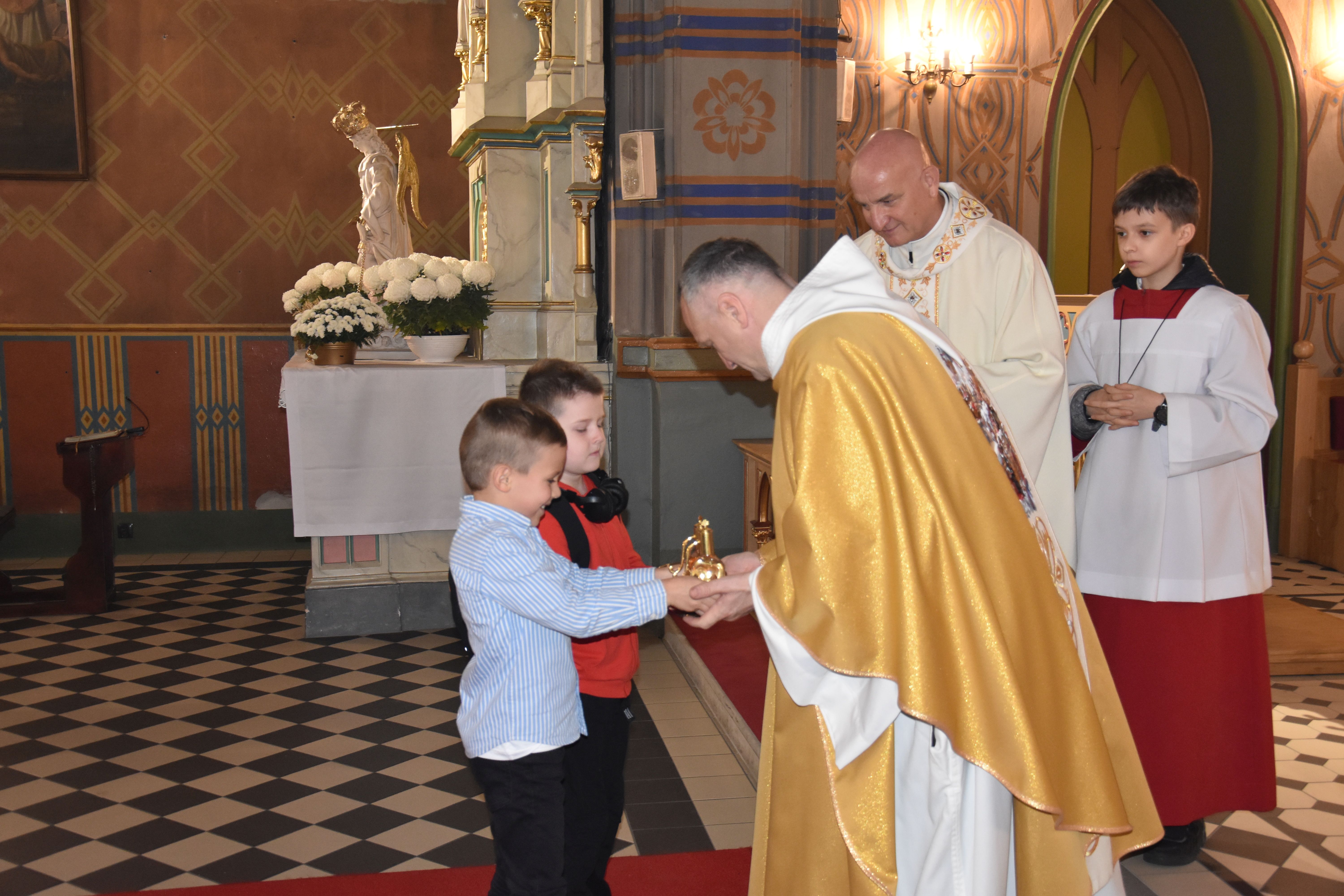 W niedzielę, podczas uroczystej celebracji odpustu ku czci Wszystkich Świętych w Liskowie, odbyła się wyjątkowa procesja z darami, w której szczególną rolę odegrały nasze przedszkolaki. Najmłodsi parafianie, przebrani za świętych, z radością i dumą uczestniczyli w liturgii, niosąc symboliczne dary i przypominając wszystkim o pięknie świętości, do której każdy z nas jest powołany.