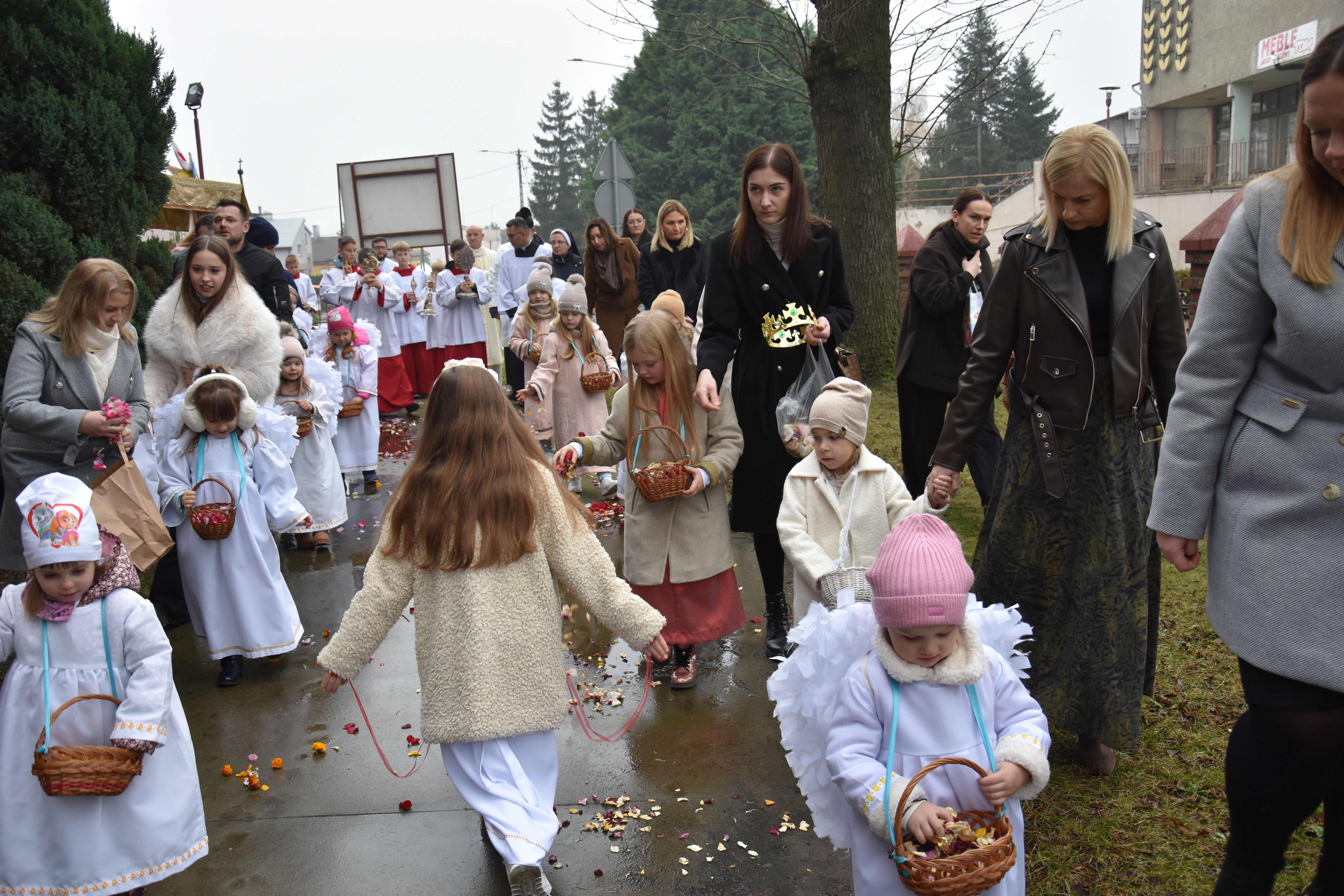 Na zakończenie Mszy Świętej wyruszyła uroczysta procesja eucharystyczna, będąca zwieńczeniem odpustowych obchodów. Nasze przedszkolaki z wielkim zaangażowaniem sypały kwiatki i dzwoniły dzwonkami, tworząc atmosferę modlitwy, radości i wspólnoty.